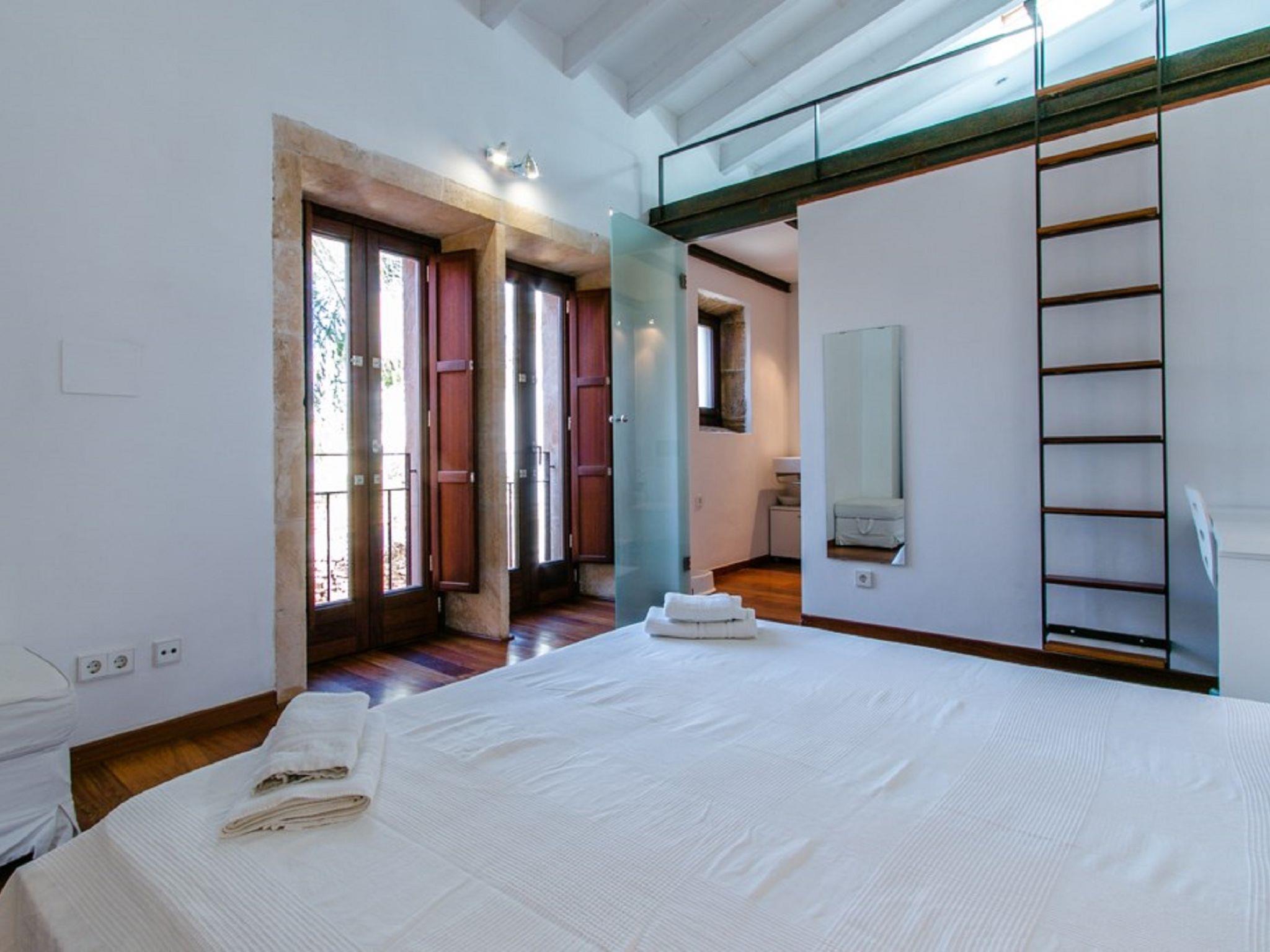 Alcudia: Very beautiful, rustic, historical house "Sa Muralla", 2 storeys. In the resort Alcudia, 700 m from the sea, 700 m from the beach. Private: beautiful, well-kept garden, courtyard, swimming pool angular (4 x 3 m, depth 190 cm, seasonal availability: 01.Apr. - 31.Oct.). Outdoor shower, arbour, terrace, garden furniture, barbecue. In the house: WiFi, central heating system, air conditioning, washing machine, tumble dryer. Bus stop 600 m, sandy beach "Playa del Corral den Bennasar" 1 km pebble beach "Es Morer Vermell" 2.1 km. Sports harbour 1.6 km, marina 1.6 km, golf course (18 hole) 1.9 km. Nearby attractions: Alcudia Old Town 600 m, Alcudia Historical Centre 600 m, Hidropark Puerto Alcudia 1.8 km. Please note: suitable for families, suitable for seniors baby equipment (included). Object suitable for 6 adults groups of teenagers on request only. Loading and unloading of baggage is possible at the holiday house. Airfield 60 km from the property.