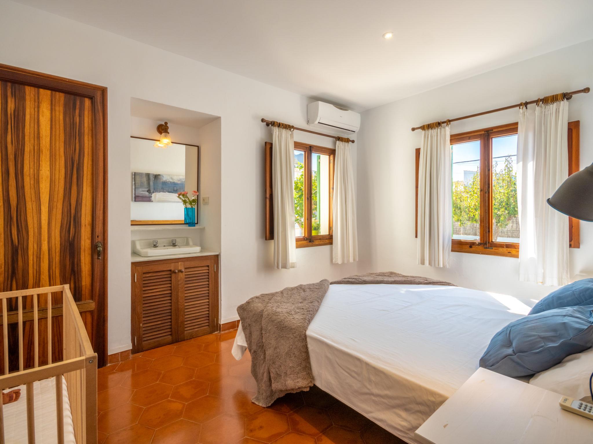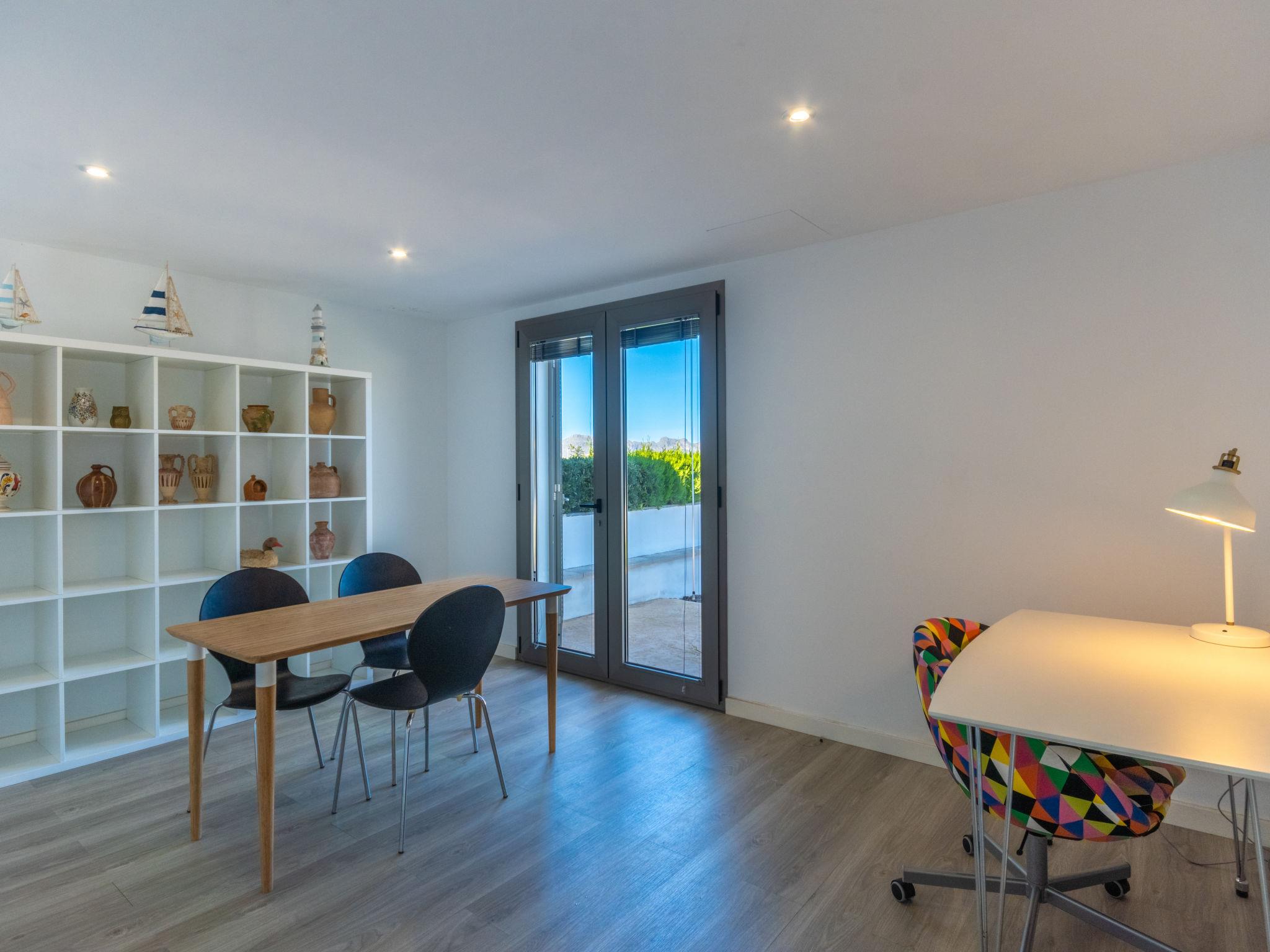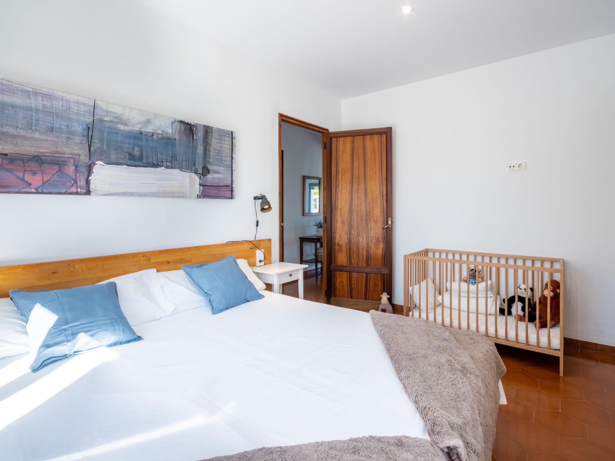 "Can Verd", 9-room villa 300 m2 on 2 levels. Object suitable for 10 adults. Fully renovated in 2016, very comfortable and cosy furnishings: living/dining room with panoramic window with dining table, satellite TV, digital TV, flat screen, air conditioning and forced-air heating. Exit to the terrace. 1 large double bedroom with curtain with 1 french bed (135 cm, length 190 cm). 1 double bedroom with 2 beds (90 cm, length 200 cm), air conditioning and forced-air heating. 1 double bedroom with 2 beds (90 cm, length 200 cm). 1 double bedroom with sliding door curtain panoramic window with 1 sofabed and 1 french bed (150 cm, length 200 cm), bath/shower/WC, TV, satellite TV, air conditioning and forced-air heating. Exit to the terrace. Kitchen 15 m2 (4 hot plates, oven, dishwasher, microwave, freezer, electric coffee machine) with dining table. Exit to the terrace. 2 Baths/showers/WC. On the lower ground floor: lounge with 1 sofabed, dining table and air conditioning. Exit to the patio. Office with panoramic window. Exit to the patio. 1 double bedroom with 1 french bed (150 cm, length 200 cm), bath/shower/WC and air conditioning. Exit to the patio. Bath/shower/WC. Large patio, porch. Terrace furniture, balcony furniture, barbecue, deck chairs, covered balcony, sitting area. Very beautiful panoramic view of the sea, the mountains and the bay. Facilities: washing machine, dryer, safe, iron, children's high chair, baby cot for up to 2 year olds, hair dryer. Internet (WiFi, free). At the house. Please note: suitable for families one double bedroom is outside the apartment. Fire extinguisher. ETV5536 // Reg. Nr.: ESFCTU0000704300008406200000000000000000000ETV/55365