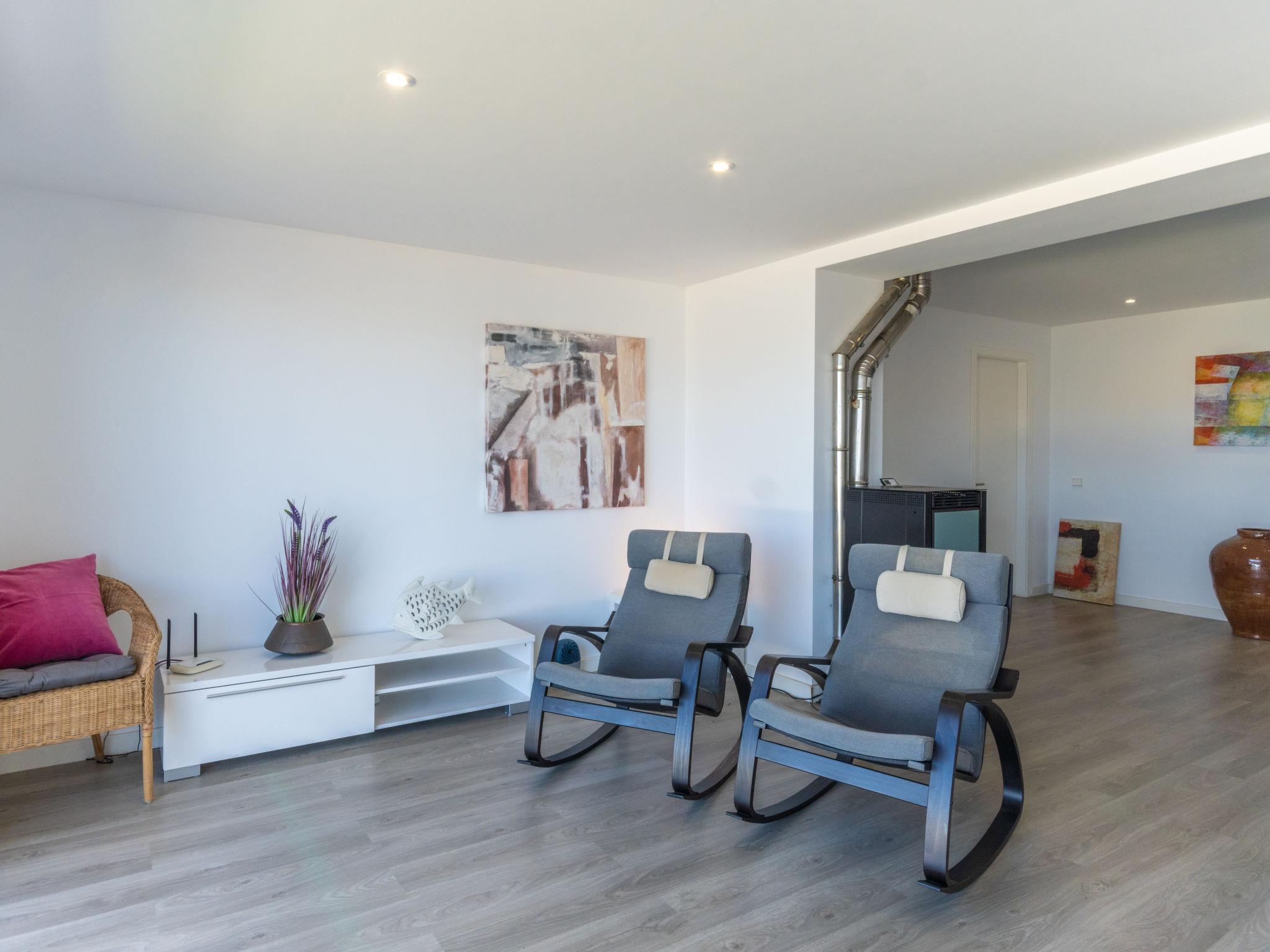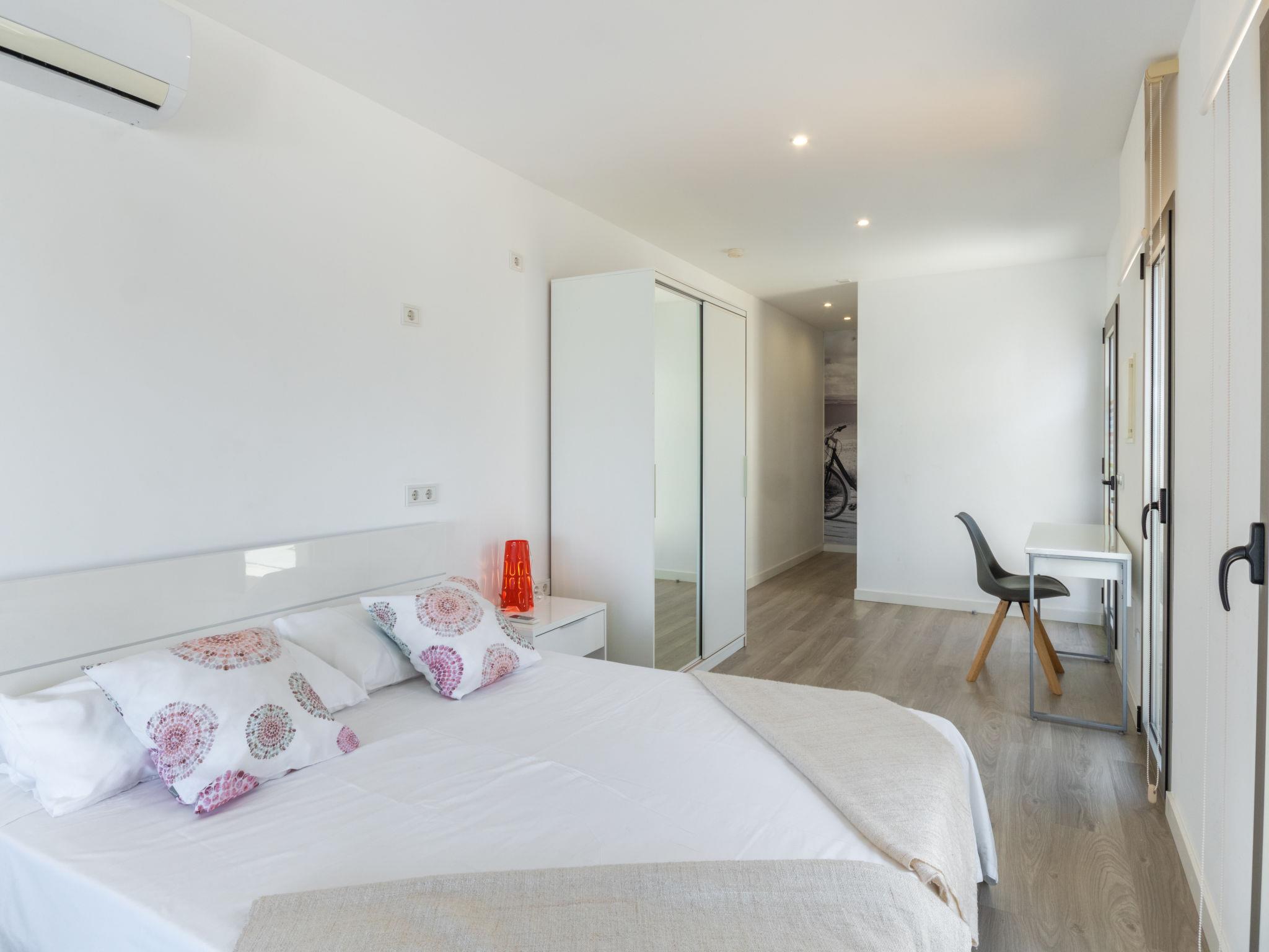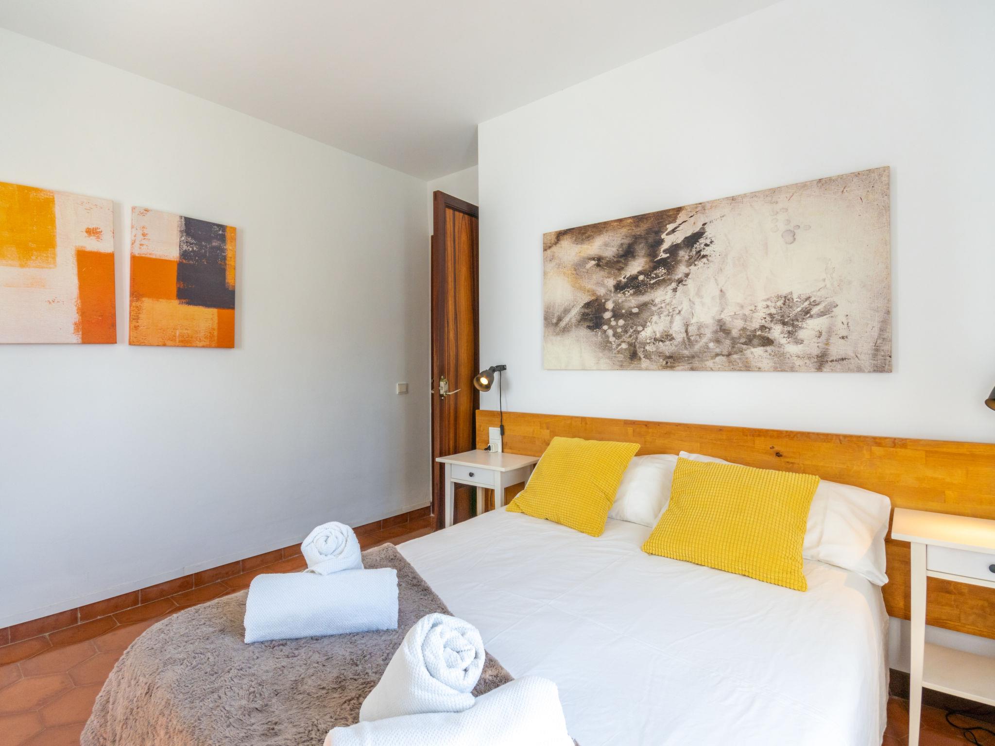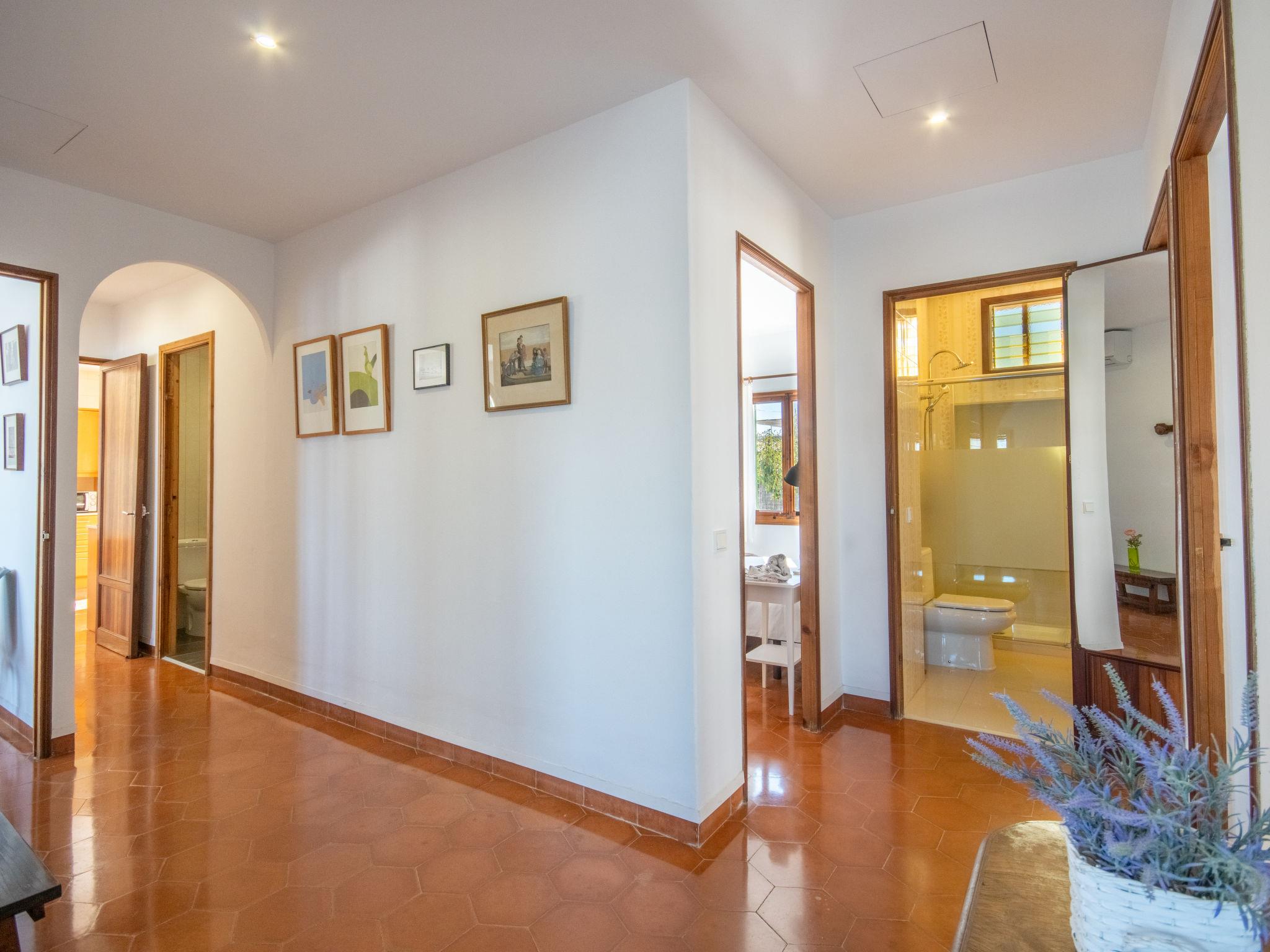 "Can Verd", 9-room villa 300 m2 on 2 levels. Object suitable for 10 adults. Fully renovated in 2016, very comfortable and cosy furnishings: living/dining room with panoramic window with dining table, satellite TV, digital TV, flat screen, air conditioning and forced-air heating. Exit to the terrace. 1 large double bedroom with curtain with 1 french bed (135 cm, length 190 cm). 1 double bedroom with 2 beds (90 cm, length 200 cm), air conditioning and forced-air heating. 1 double bedroom with 2 beds (90 cm, length 200 cm). 1 double bedroom with sliding door curtain panoramic window with 1 sofabed and 1 french bed (150 cm, length 200 cm), bath/shower/WC, TV, satellite TV, air conditioning and forced-air heating. Exit to the terrace. Kitchen 15 m2 (4 hot plates, oven, dishwasher, microwave, freezer, electric coffee machine) with dining table. Exit to the terrace. 2 Baths/showers/WC. On the lower ground floor: lounge with 1 sofabed, dining table and air conditioning. Exit to the patio. Office with panoramic window. Exit to the patio. 1 double bedroom with 1 french bed (150 cm, length 200 cm), bath/shower/WC and air conditioning. Exit to the patio. Bath/shower/WC. Large patio, porch. Terrace furniture, balcony furniture, barbecue, deck chairs, covered balcony, sitting area. Very beautiful panoramic view of the sea, the mountains and the bay. Facilities: washing machine, dryer, safe, iron, children's high chair, baby cot for up to 2 year olds, hair dryer. Internet (WiFi, free). At the house. Please note: suitable for families one double bedroom is outside the apartment. Fire extinguisher. ETV5536 // Reg. Nr.: ESFCTU0000704300008406200000000000000000000ETV/55365