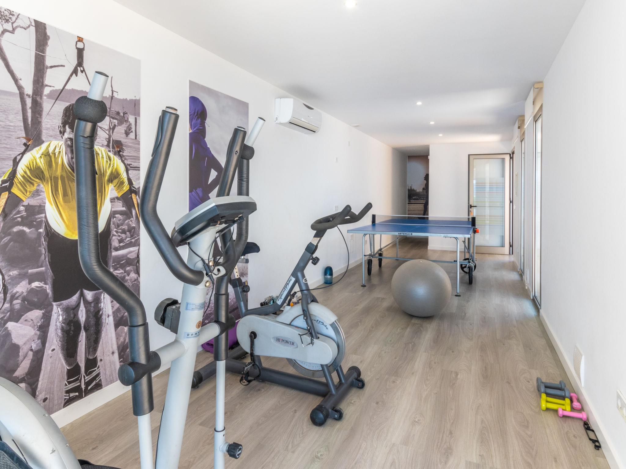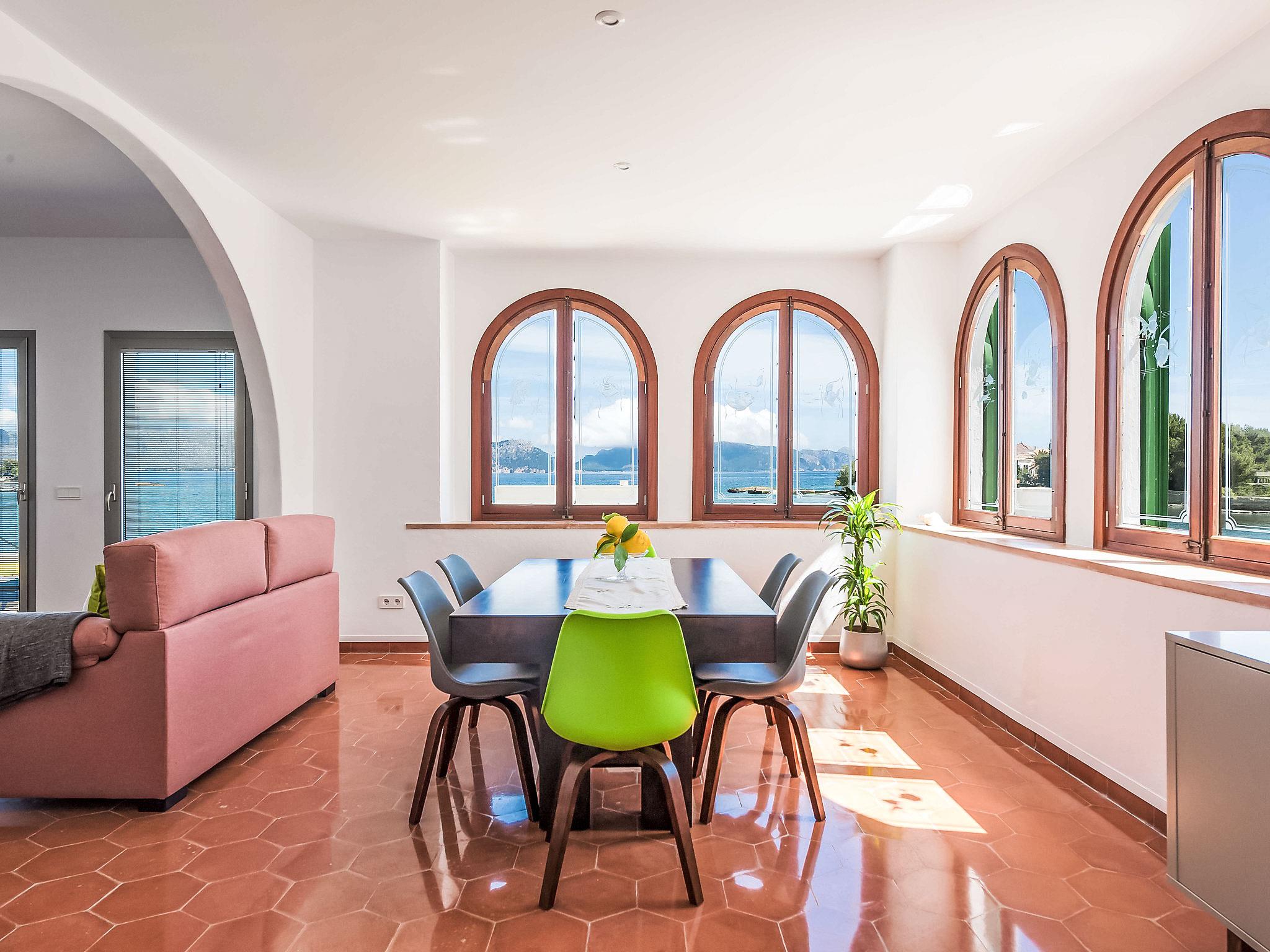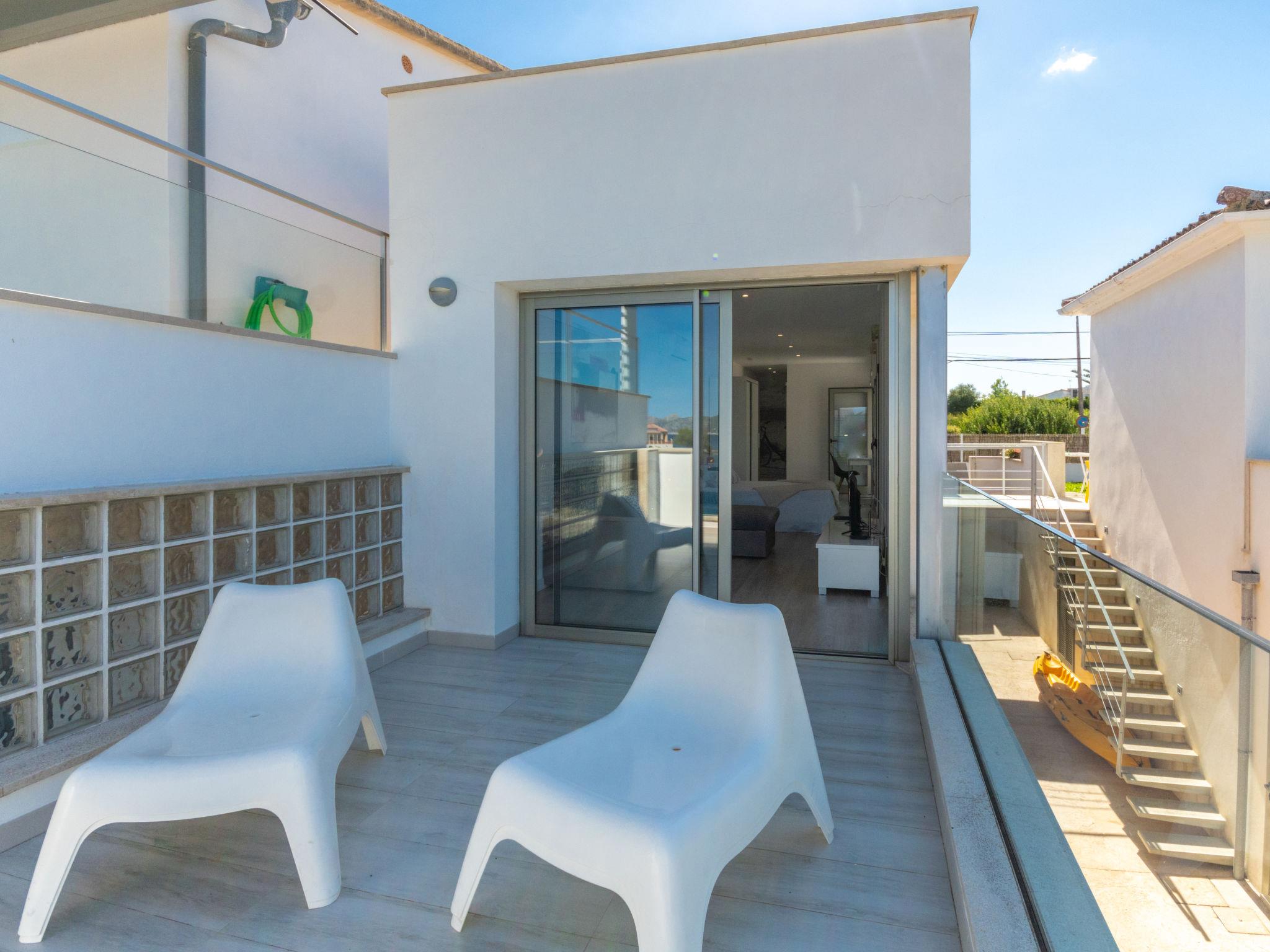 Alcúdia, Es Barcarés: Very child friendly, beautiful villa "Can Verd", 2 storeys. In the district of Es Barcarés, in the resort 4 km from the centre of Alcúdia, in a quiet position residential area (villas), traffic calmed area, 2 km from the edge of the forest, 5 m from the sea, 5 m from the beach, direct access to the beach, in a pedestrian area. Private: beautiful terraced garden with lawn, natural garden. Outdoor shower, table tennis, patio, arbour, pergola, garden furniture, barbecue. In the house: lounge, internet access, WiFi, fitness room, table tennis, playroom, storage room for bicycles, air conditioning, laundry, washing machine, tumble dryer, drying room. Parking, public car park, public parking on the road. Shop 2 km, grocery 700 m, supermarket 2 km, restaurant 50 m, bar, bakery 2 km, café, bicycle rental 2 km, 25 minute walk to the centre, bus stop 700 m, sandy beach 700 m, rocky beach 5 m, diving center 4 km, outdoor swimming pool 6 km, swimming bay 150 m, public bathing area 55 m. Sports harbour 6 km, marina 5 km, golf course (18 hole) 5 km, surf school 4 km, sailing school 6 km, tennis 5 km, riding stable 6 km, sports centre 6 km, children's playground 700 m. Please note: suitable for families, suitable for seniors. Object suitable for 10 adults groups of teenagers on request only. The owner does not accept any youth groups. Neighbourhood highly sensitive to noise. Quietness and good behaviour expected.