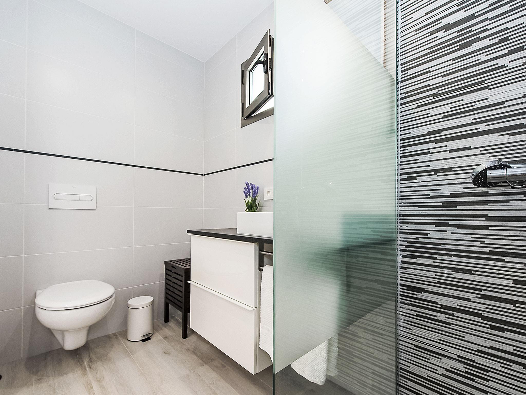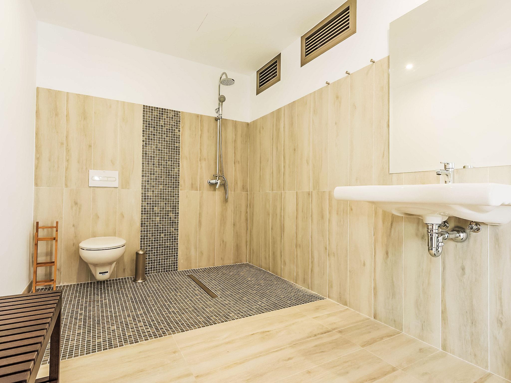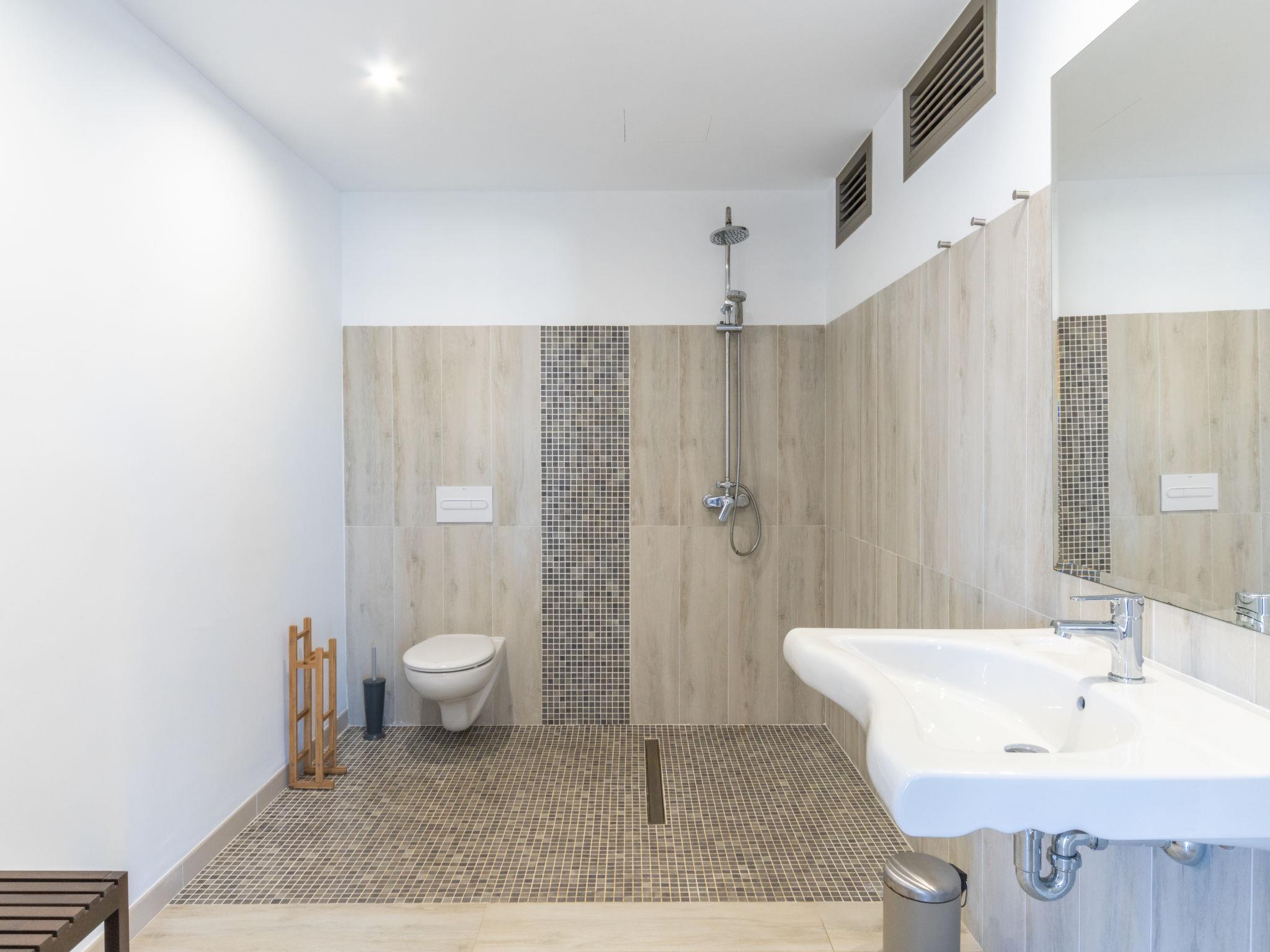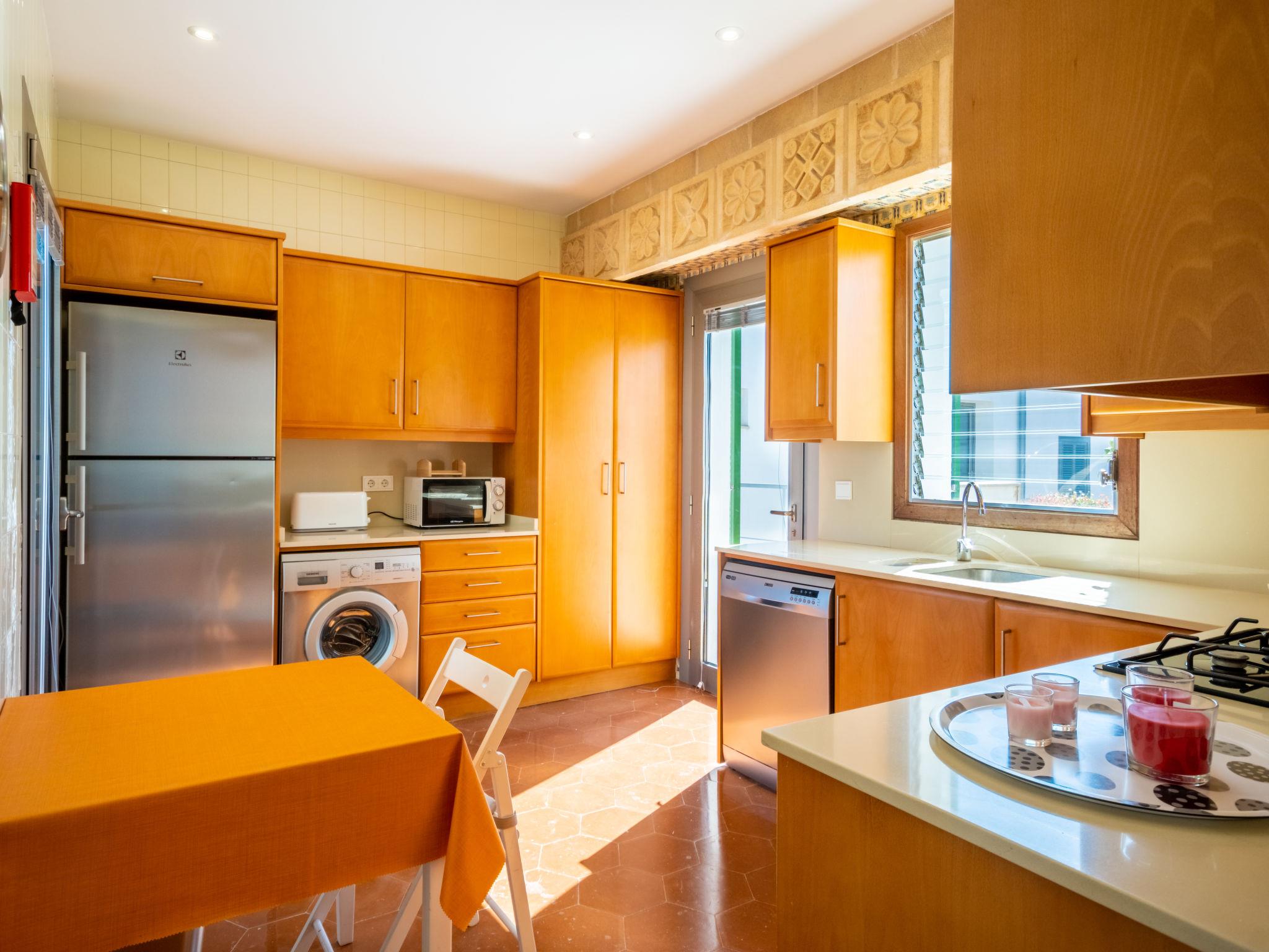 Alcúdia, Es Barcarés: Very child friendly, beautiful villa "Can Verd", 2 storeys. In the district of Es Barcarés, in the resort 4 km from the centre of Alcúdia, in a quiet position residential area (villas), traffic calmed area, 2 km from the edge of the forest, 5 m from the sea, 5 m from the beach, direct access to the beach, in a pedestrian area. Private: beautiful terraced garden with lawn, natural garden. Outdoor shower, table tennis, patio, arbour, pergola, garden furniture, barbecue. In the house: lounge, internet access, WiFi, fitness room, table tennis, playroom, storage room for bicycles, air conditioning, laundry, washing machine, tumble dryer, drying room. Parking, public car park, public parking on the road. Shop 2 km, grocery 700 m, supermarket 2 km, restaurant 50 m, bar, bakery 2 km, café, bicycle rental 2 km, 25 minute walk to the centre, bus stop 700 m, sandy beach 700 m, rocky beach 5 m, diving center 4 km, outdoor swimming pool 6 km, swimming bay 150 m, public bathing area 55 m. Sports harbour 6 km, marina 5 km, golf course (18 hole) 5 km, surf school 4 km, sailing school 6 km, tennis 5 km, riding stable 6 km, sports centre 6 km, children's playground 700 m. Please note: suitable for families, suitable for seniors. Object suitable for 10 adults groups of teenagers on request only. The owner does not accept any youth groups. Neighbourhood highly sensitive to noise. Quietness and good behaviour expected.