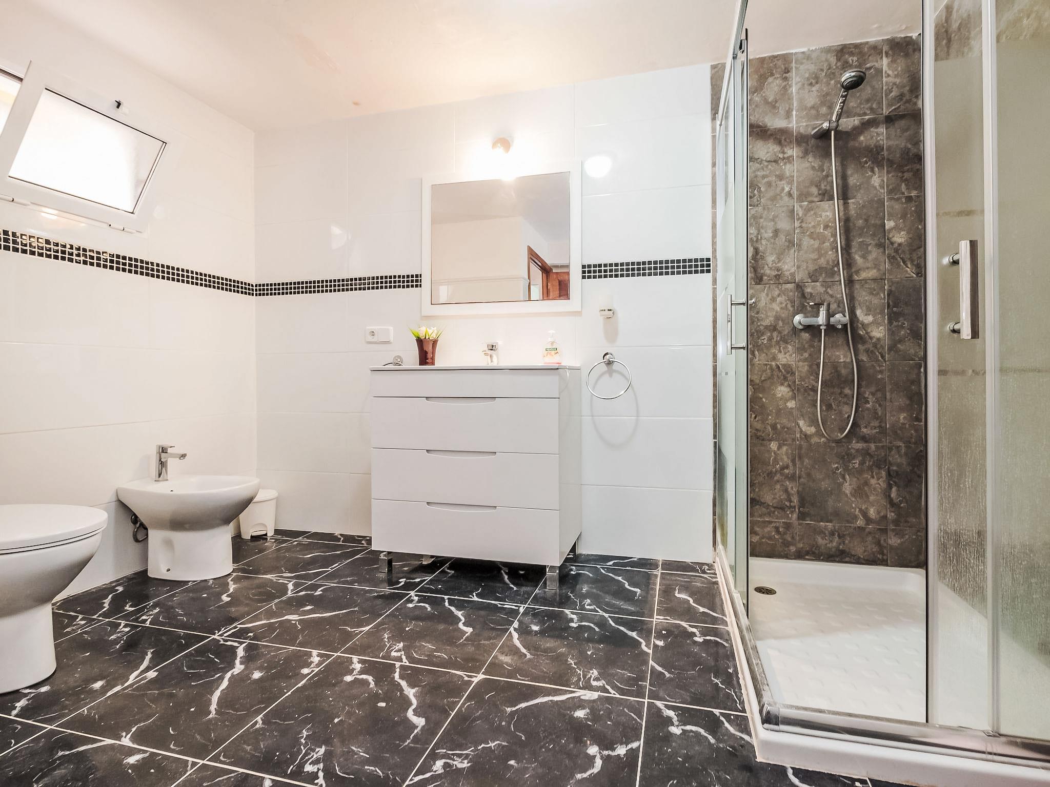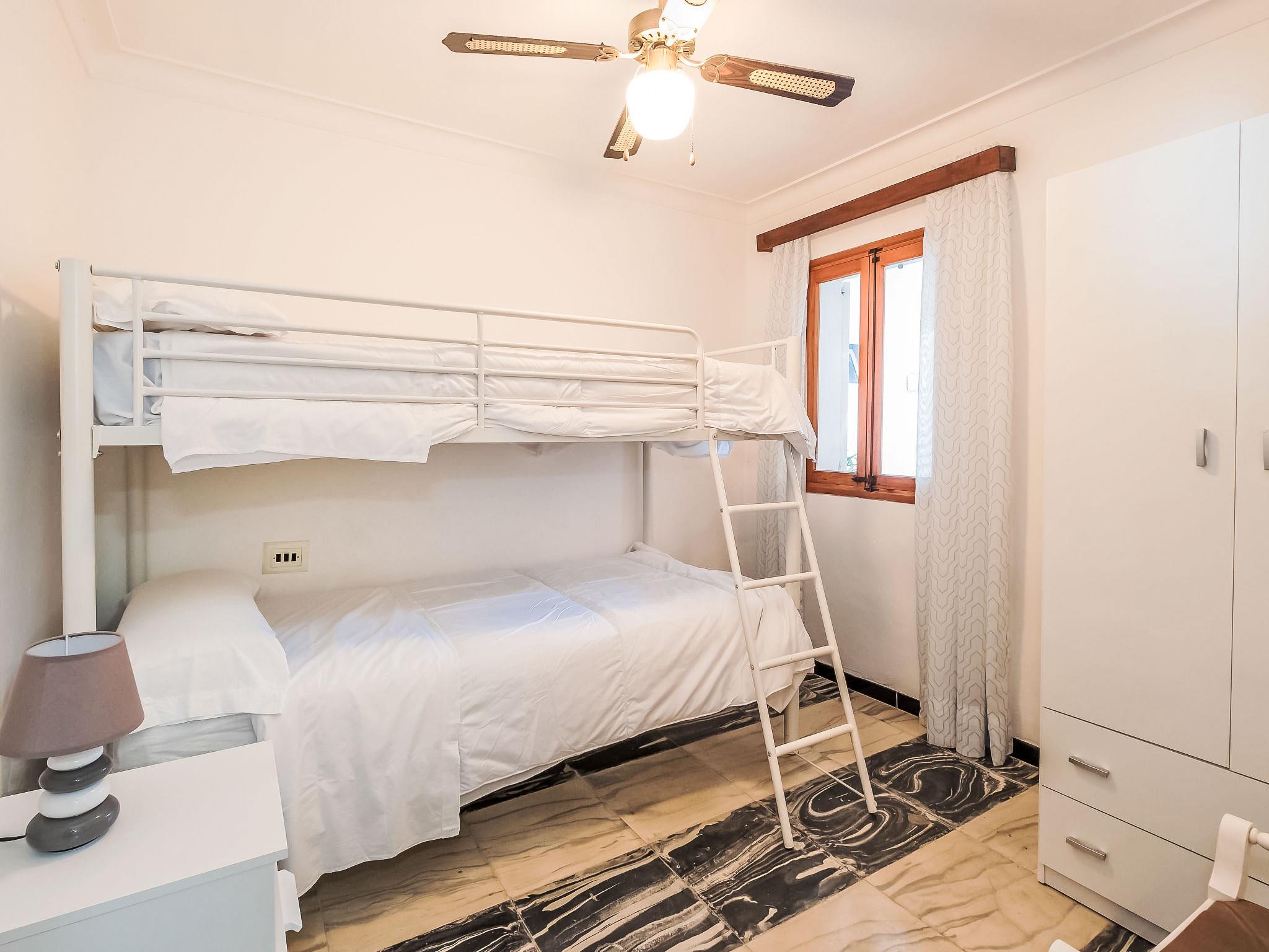 "Voramar", 4-room apartment 110 m2, on the upper ground floor. Object suitable for 6 adults. Very practical and cosy furnishings: living/dining room with panoramic window with dining table, TV, flat screen, air conditioning and forced-air heating. Exit to the terrace. 1 large double bedroom with panoramic window with 1 french bed and fan. 1 double bedroom with 1 french bed. Exit to the terrace. 1 double bedroom with 1 x 2 bunk beds (90 cm). Kitchen-/living room (oven, dishwasher, 3 ceramic glass hob hotplates, toaster, kettle, microwave, freezer, electric coffee machine) with dining table. 2 Baths/showers/WC. Large terrace, small terrace, porch. Terrace furniture, balcony furniture, covered balcony. Marvellous view of the sea, the mountains and the bay. Facilities: washing machine, iron, hair dryer. Internet (WiFi, free). Suitable for families. ETVPL12736 // Reg. Nr.: ESFCTU0000070430001067190000000000000000ETVPL/127361