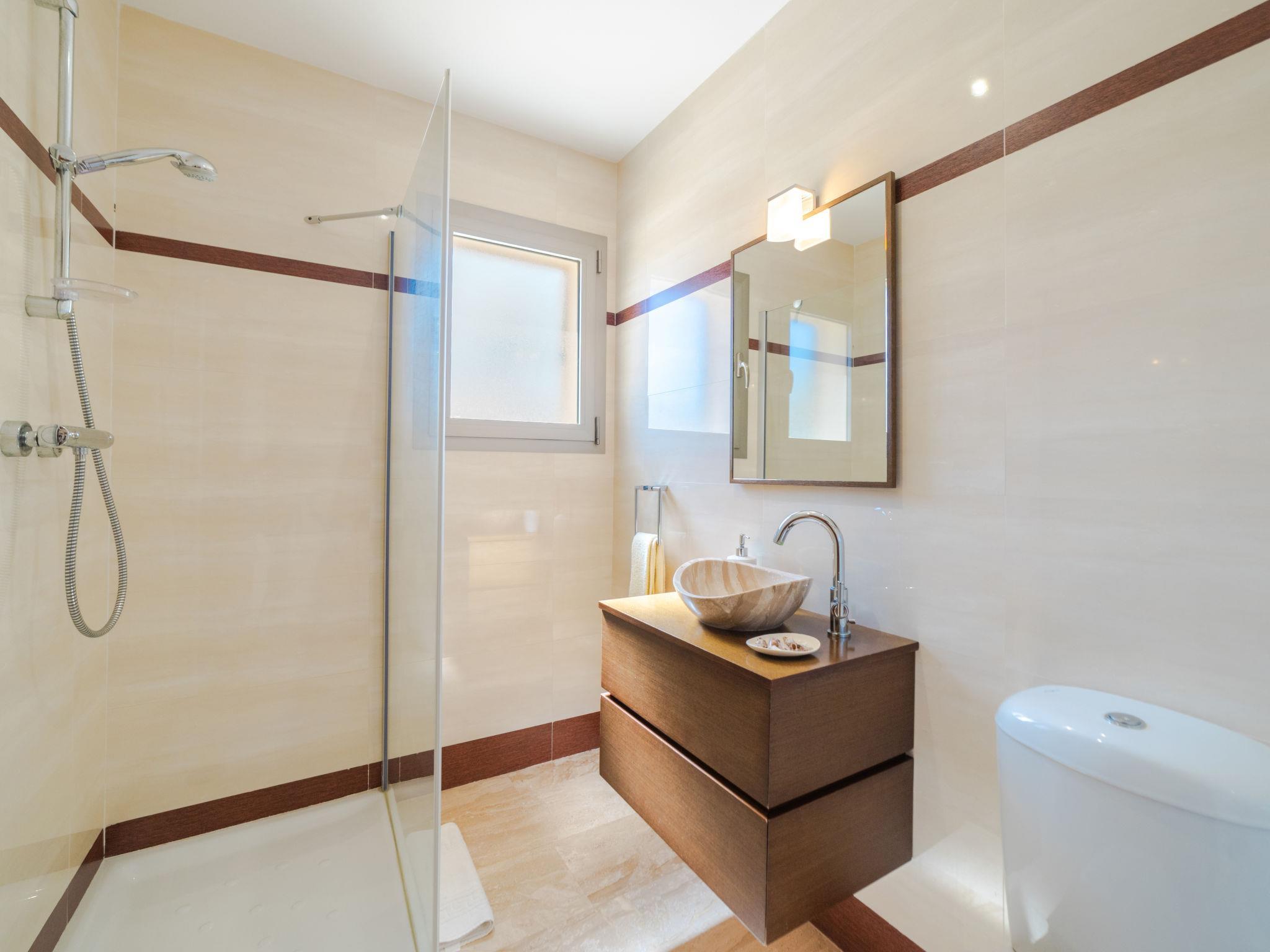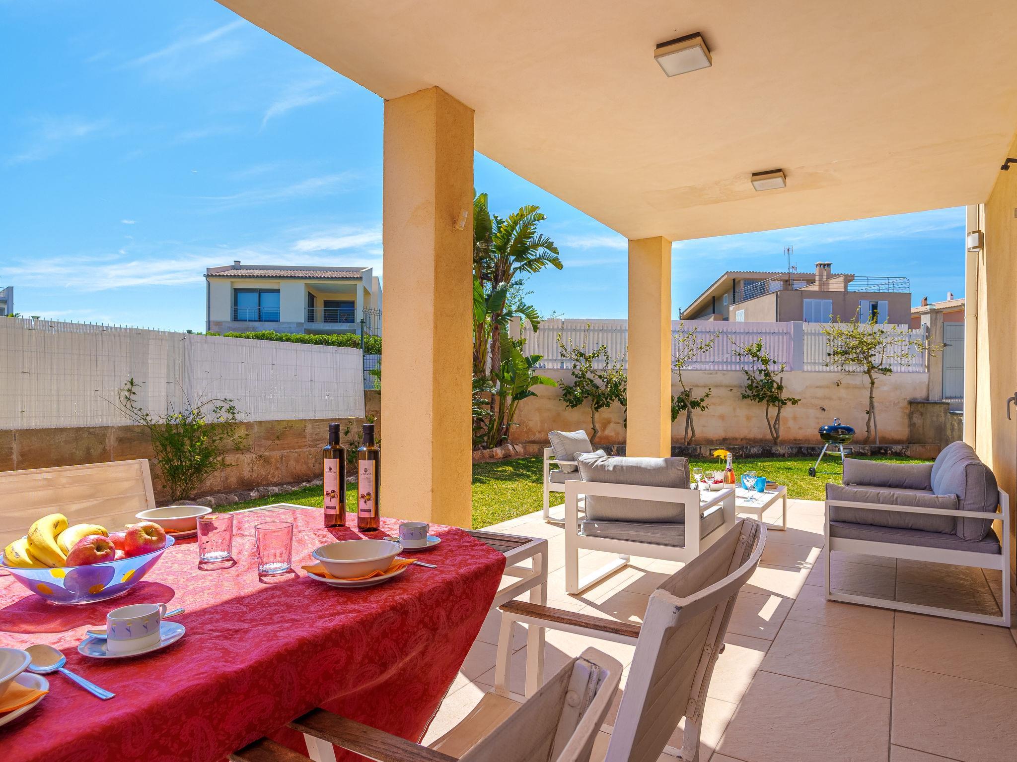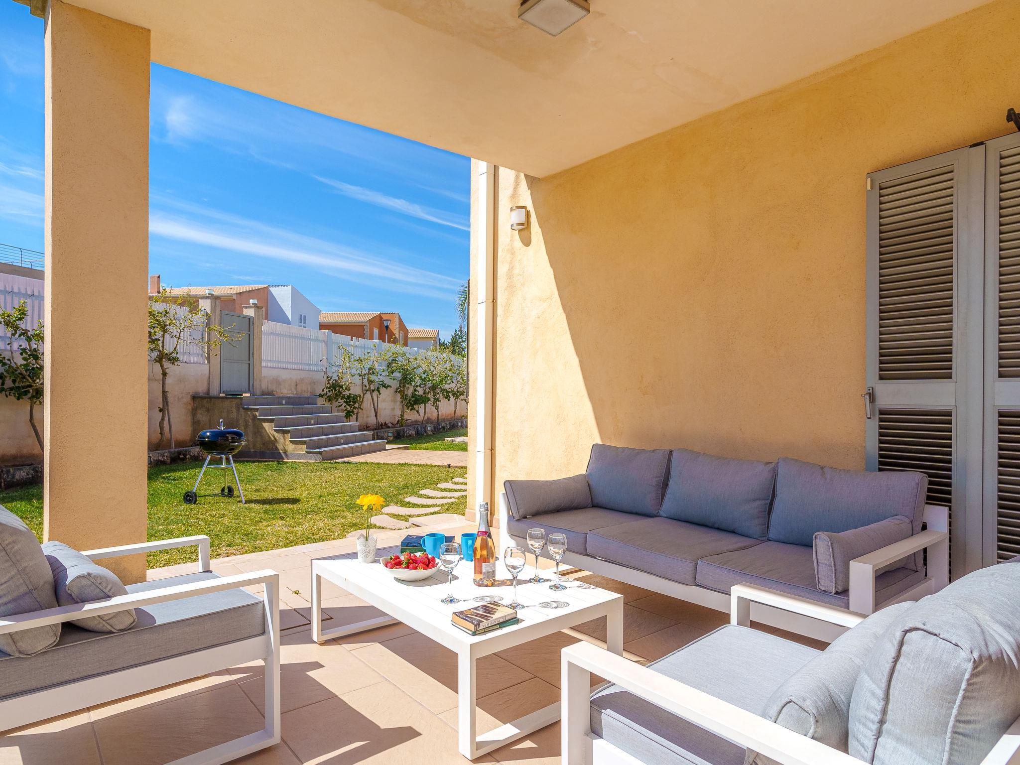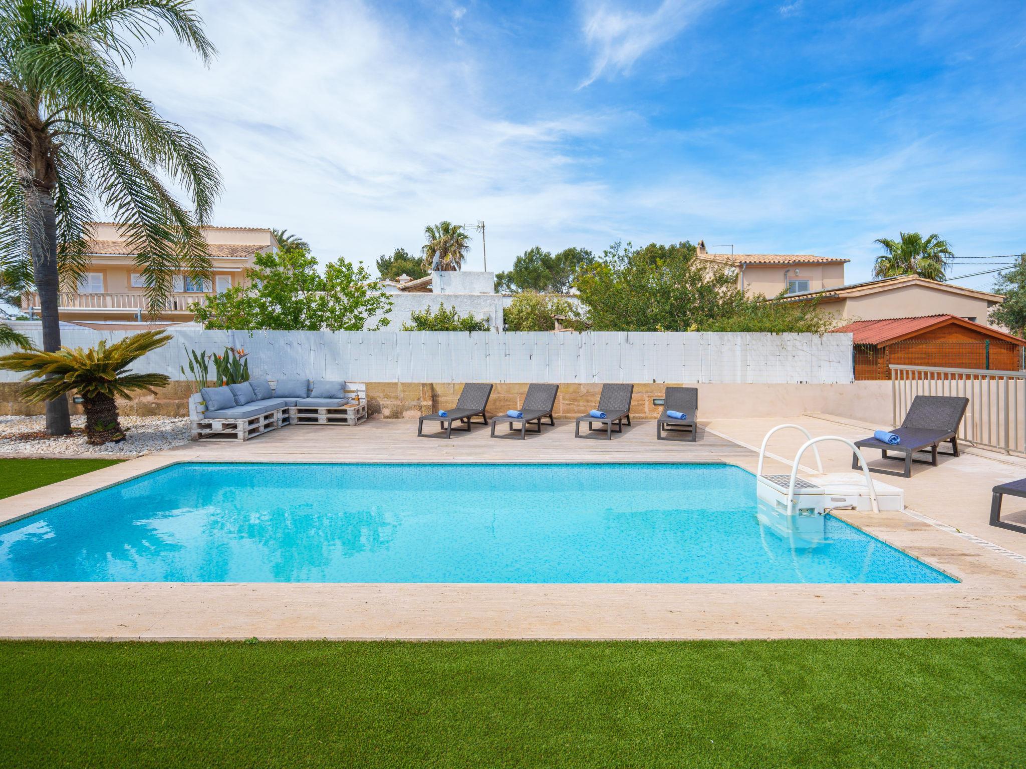 Barcarés 1 km from Alcúdia: Very large, very modern villa "Son Jil", 2 storeys, detached, built in 2005. In a quiet, sunny position residential area (villas), 2 km from the edge of the forest, 60 m from the sea, road to cross. Private: large, well-kept garden with lawn and wildlife garden, swimming pool angular (8 x 4 m, depth 150 - 150 cm, seasonal availability: 01.Jan. - 31.Dec.) with salt-electrolysis pool-cleaning system. Outdoor shower, patio, arbour, pergola, garden furniture, barbecue. In the house: internet access, WiFi, central heating system, air conditioning, washing machine. Public car park, public parking on the road. Shop 1 km, supermarket 1.2 km, shopping centre 45 km, restaurant 160 m, bar, pedestrian zone 50 m, 15 minute walk to the centre, bus stop 1.5 km, ferry 3 km, sandy beach "Platja Es Morer Vermell" 550 m, rocky beach "Platja Es Barcarés" 60 m. Sports harbour 250 m, marina 3 km, golf course (18 hole) 6 km, tennis 2.5 km, riding stable 2.5 km, sports centre 2.5 km, walking paths from the house 1 km, cycle lane 700 m, children's playground 500 m. Nearby attractions: Ermita de la Victoria, Barcarés, Manresa, Sa Marina, Es Malpas. Ciutat Romana de Pollentia, Alcudia. Port d'Alcúdia, Port de Pollença - Pollença, North Beaches. Hiking paths: Sa Talaia, Es Puig de Sant Martí, Serra Tramuntana Pollença. Please note: suitable for families, suitable for seniors. Object suitable for 8 adults groups of teenagers on request only. Airfield 60 km from the property.