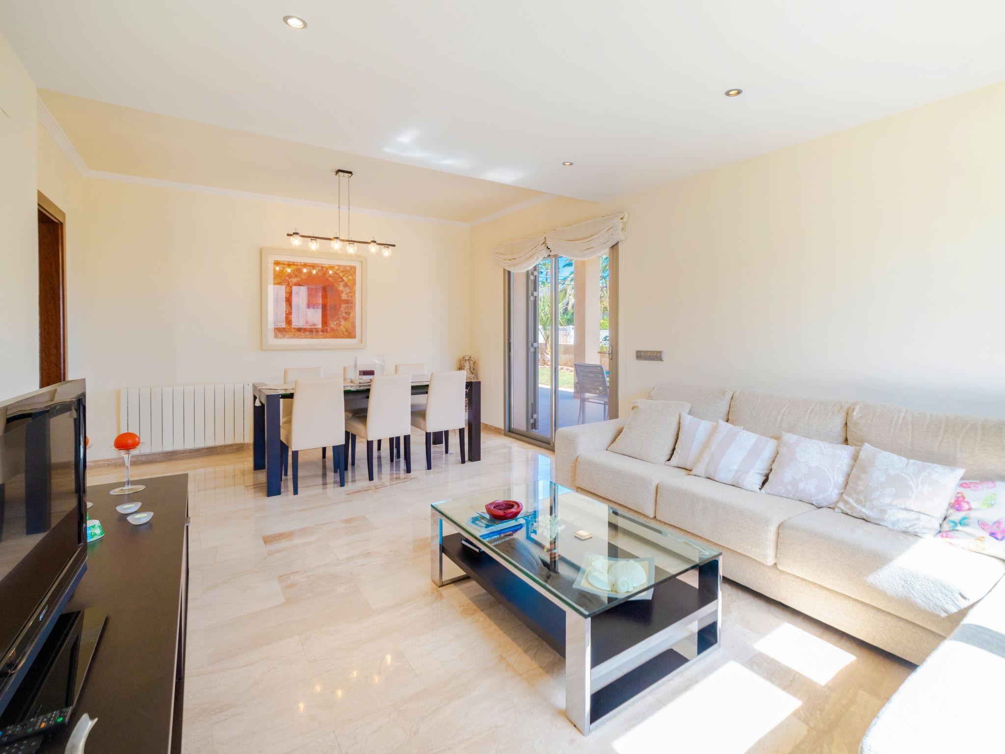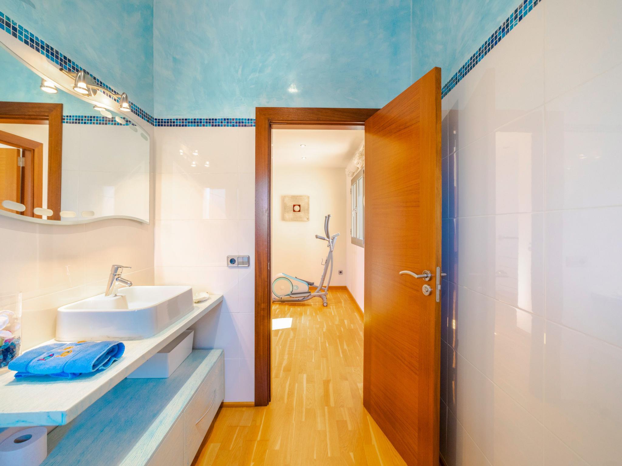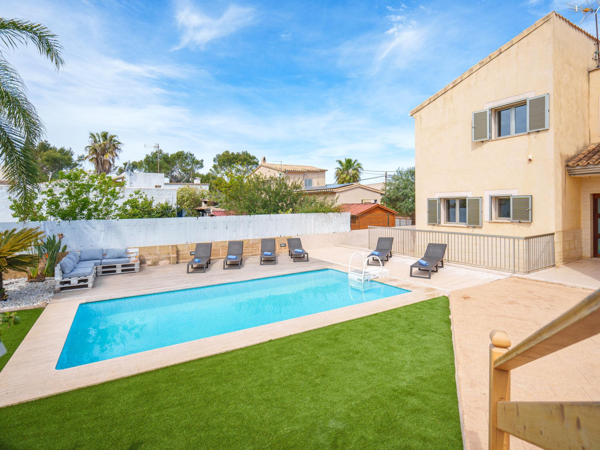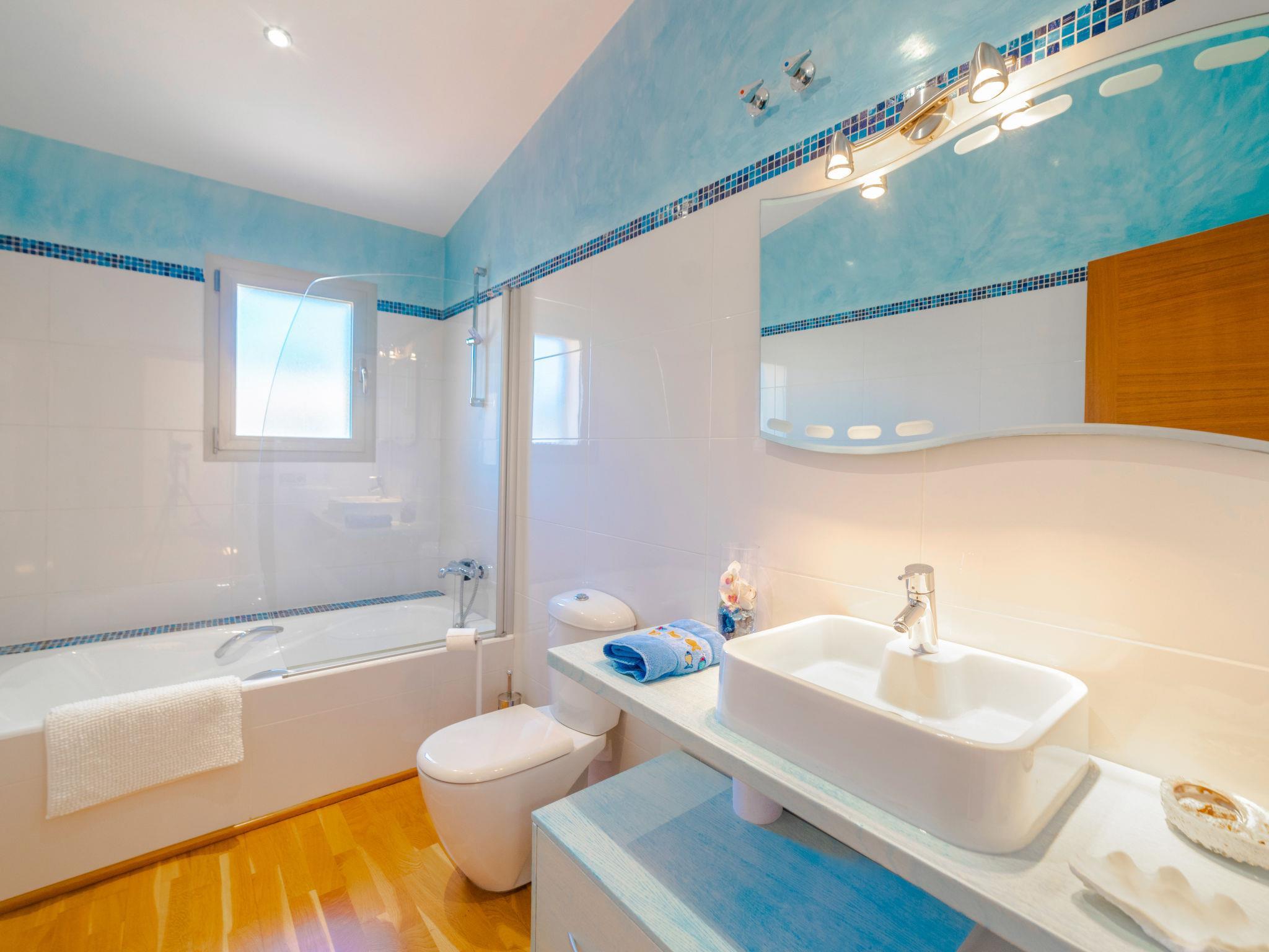 Barcarés 1 km from Alcúdia: Very large, very modern villa "Son Jil", 2 storeys, detached, built in 2005. In a quiet, sunny position residential area (villas), 2 km from the edge of the forest, 60 m from the sea, road to cross. Private: large, well-kept garden with lawn and wildlife garden, swimming pool angular (8 x 4 m, depth 150 - 150 cm, seasonal availability: 01.Jan. - 31.Dec.) with salt-electrolysis pool-cleaning system. Outdoor shower, patio, arbour, pergola, garden furniture, barbecue. In the house: internet access, WiFi, central heating system, air conditioning, washing machine. Public car park, public parking on the road. Shop 1 km, supermarket 1.2 km, shopping centre 45 km, restaurant 160 m, bar, pedestrian zone 50 m, 15 minute walk to the centre, bus stop 1.5 km, ferry 3 km, sandy beach "Platja Es Morer Vermell" 550 m, rocky beach "Platja Es Barcarés" 60 m. Sports harbour 250 m, marina 3 km, golf course (18 hole) 6 km, tennis 2.5 km, riding stable 2.5 km, sports centre 2.5 km, walking paths from the house 1 km, cycle lane 700 m, children's playground 500 m. Nearby attractions: Ermita de la Victoria, Barcarés, Manresa, Sa Marina, Es Malpas. Ciutat Romana de Pollentia, Alcudia. Port d'Alcúdia, Port de Pollença - Pollença, North Beaches. Hiking paths: Sa Talaia, Es Puig de Sant Martí, Serra Tramuntana Pollença. Please note: suitable for families, suitable for seniors. Object suitable for 8 adults groups of teenagers on request only. Airfield 60 km from the property.