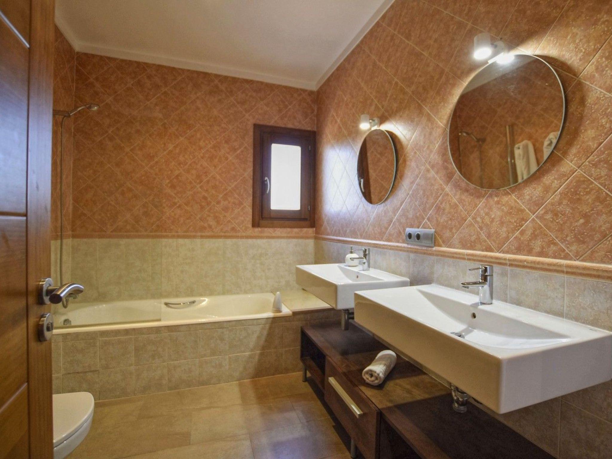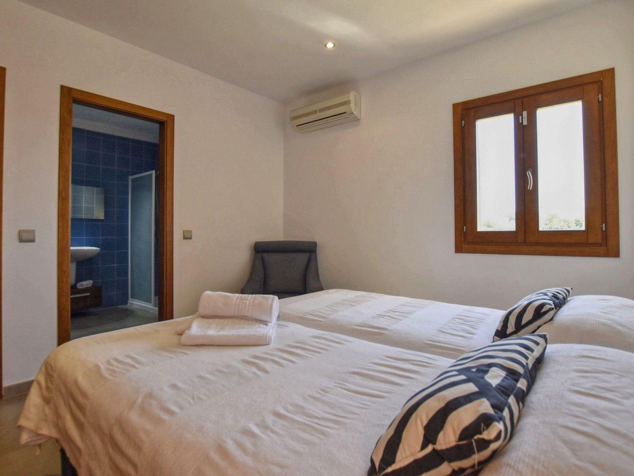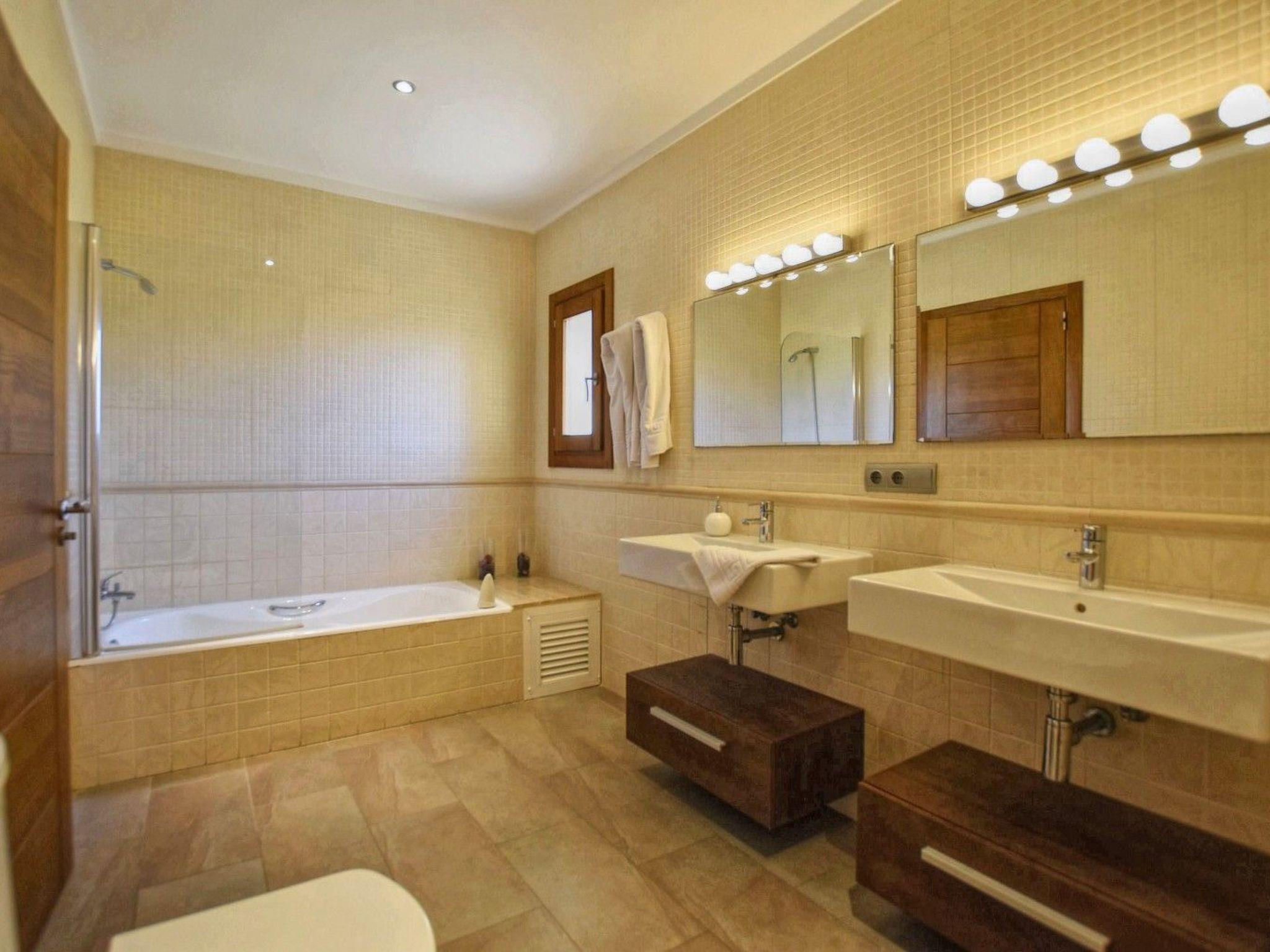 Modern country house lined in stone with a wonderful private swimming pool, very close to the town of Alcudia in the north of the island, with beautiful panoramic views to the countryside and the mountains and only a few kilometres away from its beautiful beaches. Built on 2 floors, with excellent finishings and well cared for interiors. The house is fully air-conditioned for winter and summer and is suitable for small children. It has 4 bedrooms (3 double and 1 twin), 4 complete bathrooms (all of them en suite and one with hydromassage bathtub). The kitchen is fully equipped and independent from the living-dining room with access to the porch and the swimming pool. It has several terraces and a furnished porch, as well as a wonderful solarium area with wooden decking around the swimming pool and terrace furniture and sun loungers. Situated in a quiet area but close to the village and all amenities, it is the ideal property to enjoy a great holiday with total privacy and all the comforts.