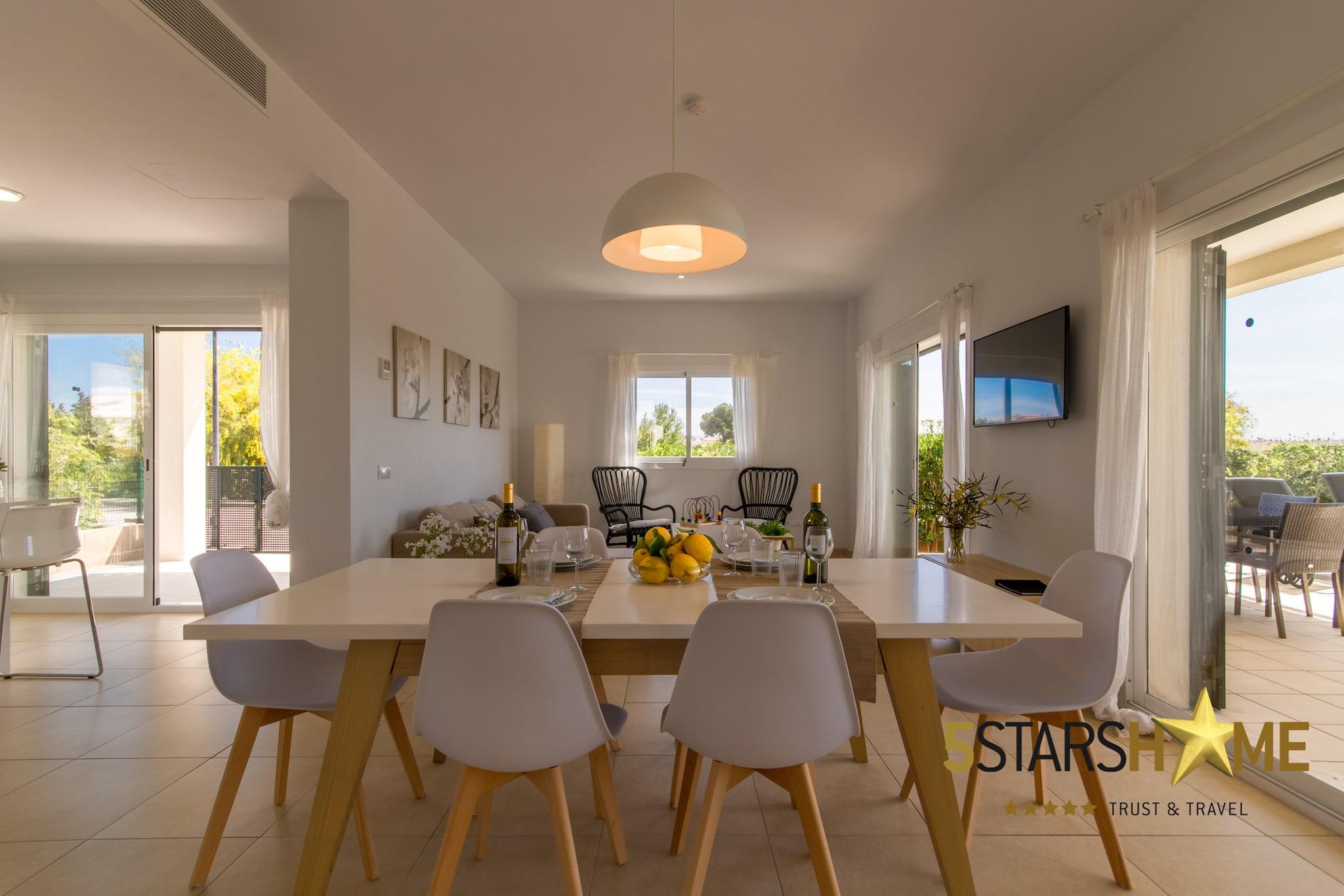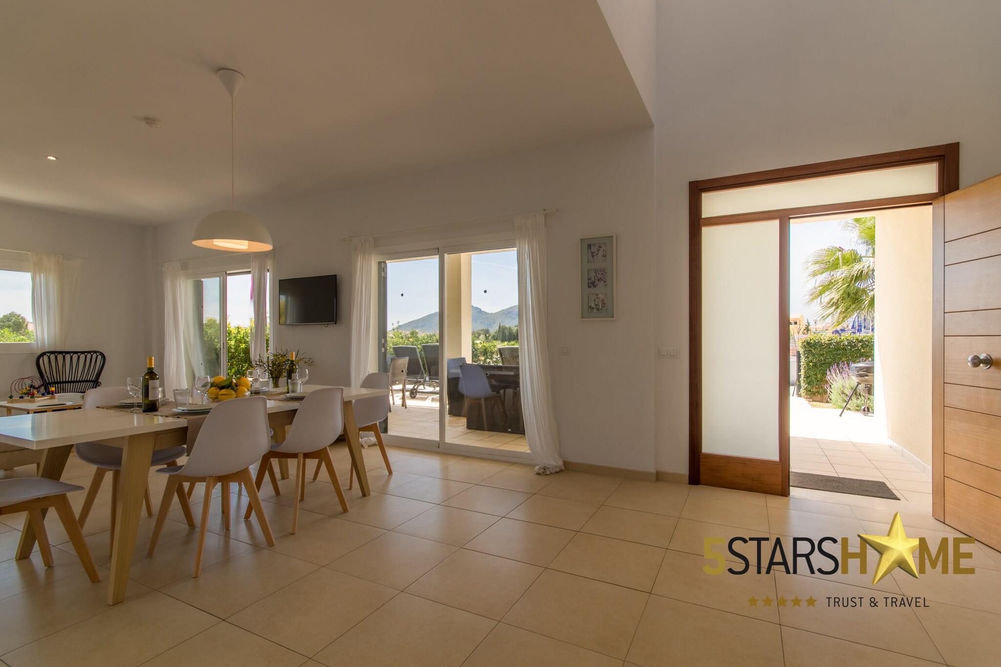 Stueetage: (Køkken(elkedel, brødrister, kaffemaskine, ovn, mikrobølgeovn, opvaskemaskine , køle-fryseskab, Saftpresser, elektriske kogeplader, , ), stue / spisestue(enkeltseng, enkeltseng, Fjernsyn(parabol), spisebord, sofahjørne, DVD-afspiller, radio), soveværelse(enkeltseng, enkeltseng), soveværelse(enkeltseng, enkeltseng), badeværelse(badekar med bruser), Internetadgang) På 1. etage: (Soveværelse med badeværelse(dobbeltseng, Fjernsyn, bruser), Soveværelse med badeværelse(dobbeltseng, Fjernsyn, bruser)) Havemøbler, solarium, vaskemaskine, balkon, varme, klimaanlæg, terrasse, have, solstole, grill, parkering, swimmingpool(privat, udendørs), strygejern