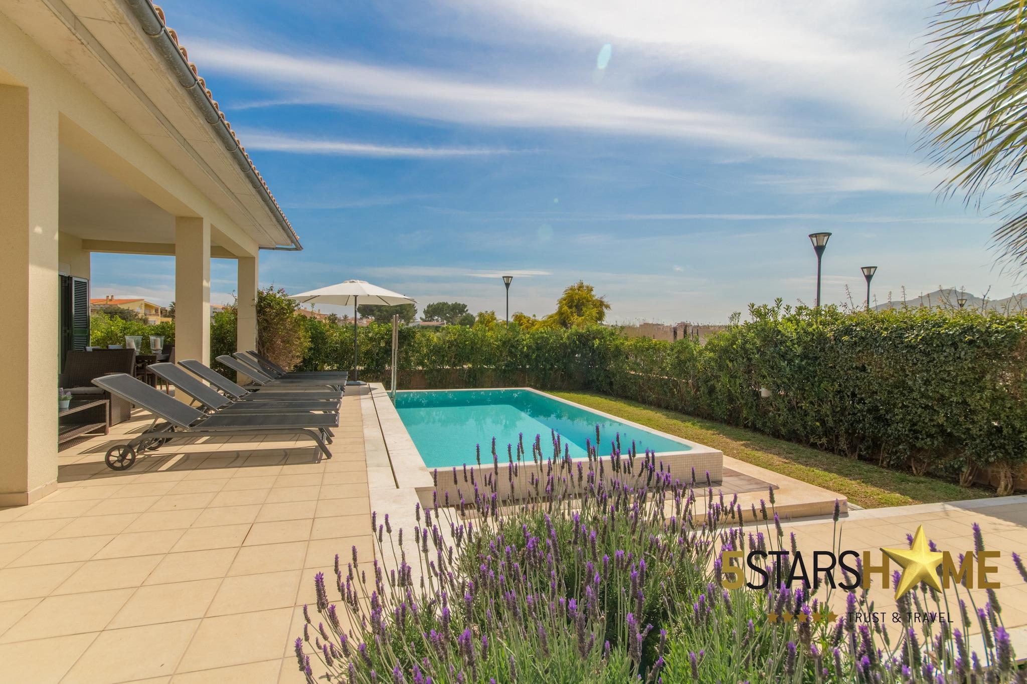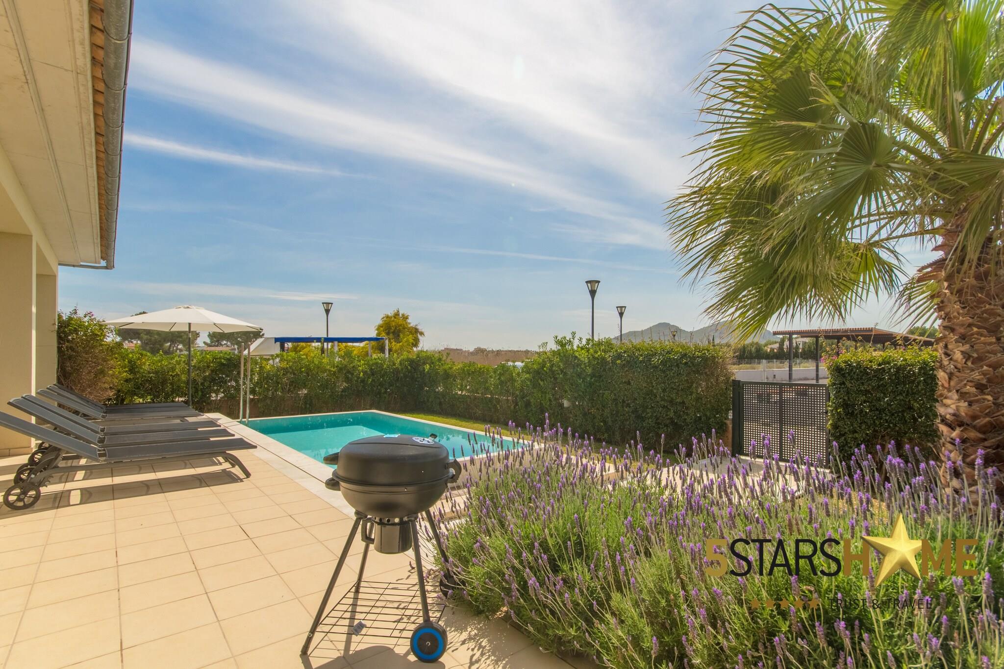 Denne rummelige og moderne villa i Brisa de Mar 1 i det fredelige Barcares-område i Alcudia er perfekt til familier eller grupper på op til 8 personer. Med 4 soveværelser med dobbeltsenge og 3 badeværelser byder hjemmet på komfort og privatliv for alle. Gæsterne vil nyde aircondition, gratis Wi-Fi og en privat pool omgivet af en velholdt have med grill og flere terrasser - ideel til at slappe af, solbade eller nyde måltider udendørs i Mallorcas behagelige klima. Beliggende kun 200 meter fra stranden, er villaen fantastisk til familier med børn, takket være det rolige, lave vand. Vandsportsentusiaster vil finde masser af nærliggende aktiviteter, herunder kitesurfing og snorkling. Den charmerende gamle bydel i Alcudia ligger tæt på og byder på brostensbelagte gader, tapasbarer og unikke butikker. Den nærliggende marina byder også på et bredt udvalg af restauranter, caféer og underholdningsmuligheder. Villaens interiør på 212 m² er fordelt på to etager og byder på et lyst opholdsrum i åbent plan med komfortable siddepladser og en stor spiseplads. Det stilfulde køkken er fuldt udstyret og inkluderer en morgenmadsbar, perfekt til afslappede måltider. Store glasskydedøre åbner direkte ud til haven og poolområdet, hvilket skaber en problemfri indendørs-udendørs oplevelse. Babyudstyr såsom barnesenge og høje stole er tilgængelige efter anmodning, hvilket gør dette hjem ideelt for familier i alle aldre. Lejelicensnummeret er ETV/3799