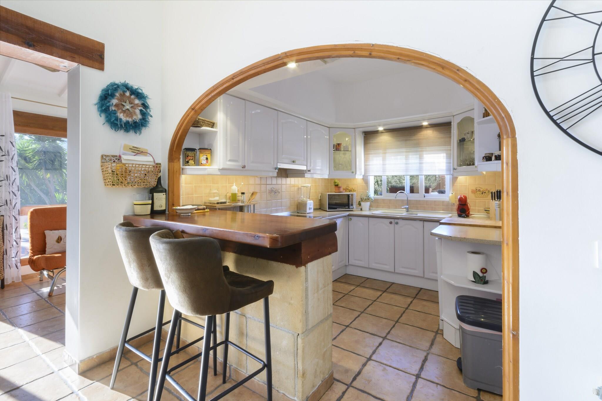 Nyd roen og en fantastisk udsigt over bjergene i dette smukke hus i Alcalalí. Start din morgen med morgenmad på den solrige terrasse, slap af på to liggestole, tag en forfriskende dukkert i klorpoolen (7 x 3 m, 1,2-1,7 m dybde), eller nyd en lækker grill. Indvendigt har den rummelige stue/spisestue med AC et fuldt udstyret køkken med keramisk kogeplade, perfekt til at lave dine yndlingsmåltider. Brændeovnen er ikke i brug. Huset byder på 3 soveværelser, hver med et skab og AC: et soveværelse med dobbeltseng med en-suite brusebadeværelse, et soveværelse med 2 enkeltsenge og et enkelt soveværelse. En barneseng og høj stol er til rådighed for babyer. Et andet badeværelse med badekar betjener resten af ??huset. Vasketøj (vaskemaskine, strygejern, strygebræt) er placeret på terrassen. Alcalalí, der ligger i Alicantes Popdal nær den naturskønne Gorgos-flod, er ideel for naturelskere, der søger fred. Den nærmeste strand (La Galera) og golfbane (Club de Golf Ifach) er omkring 20 km væk. Kæledyr er velkomne. Arrangementer er forbudt. Udvendig parkering til 1 bil.