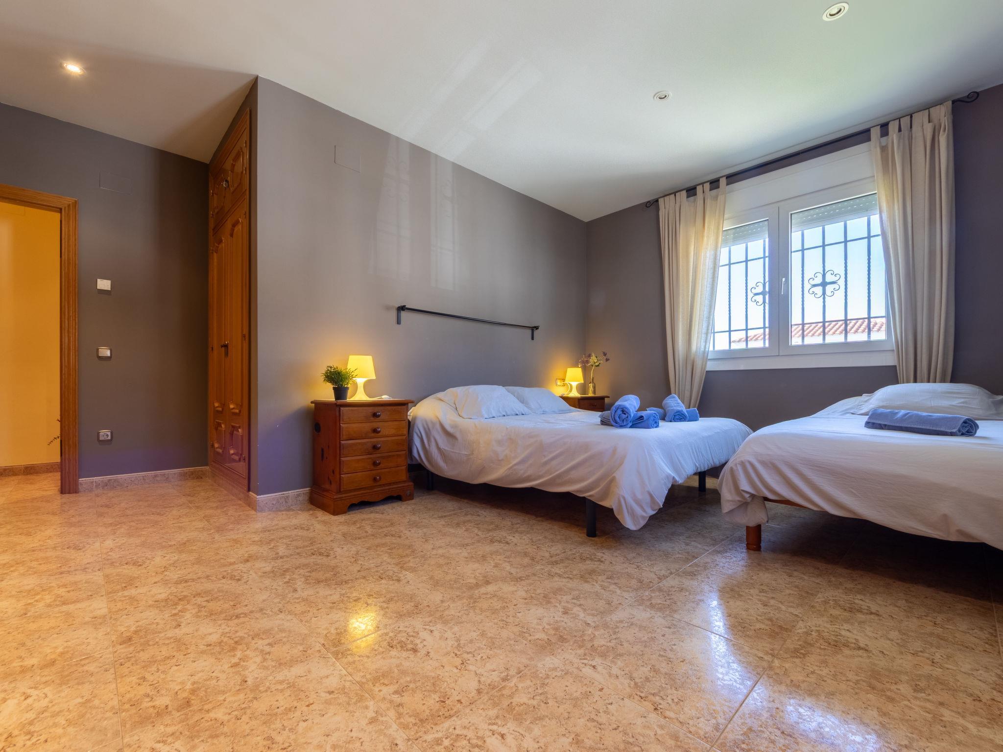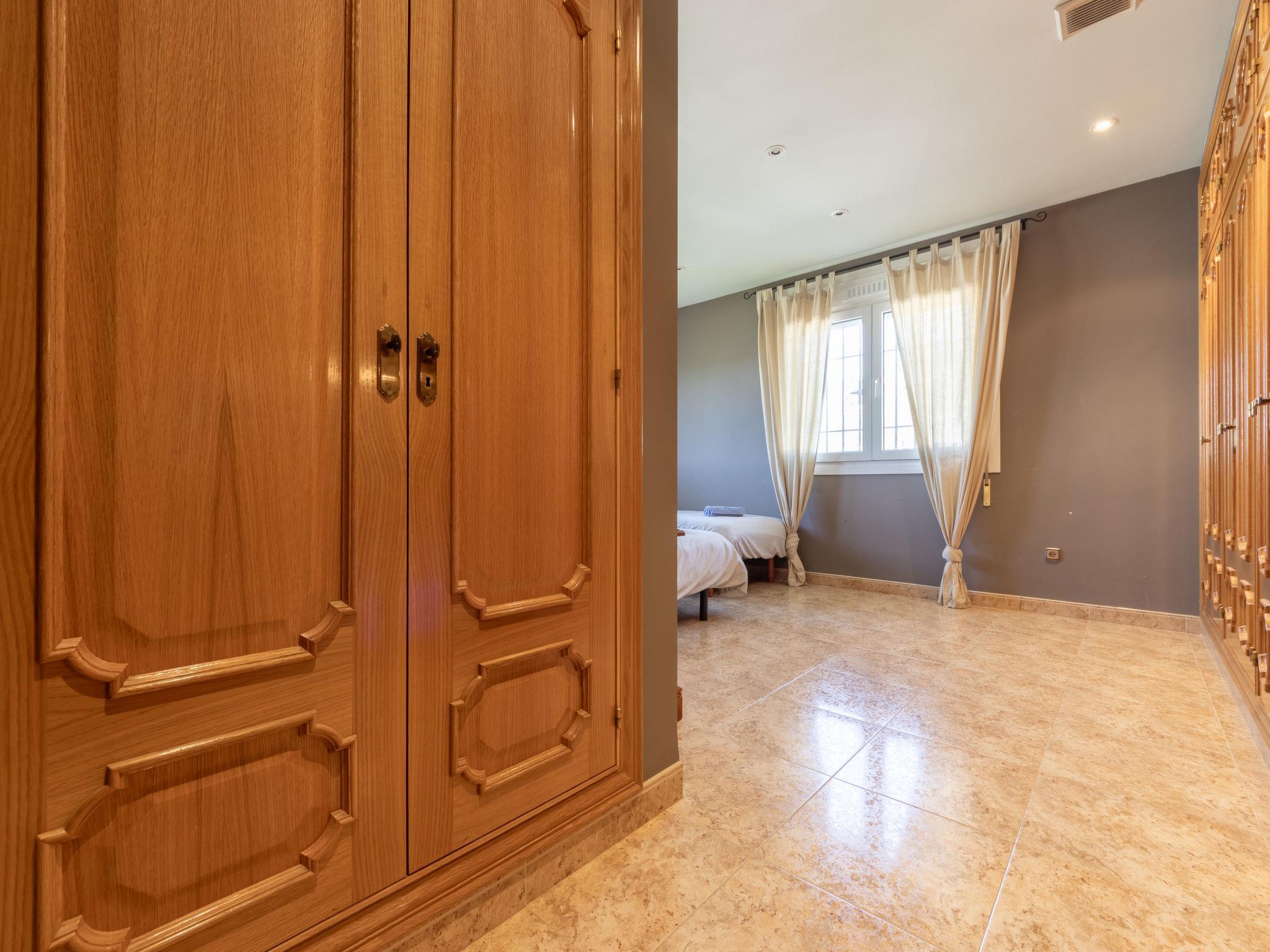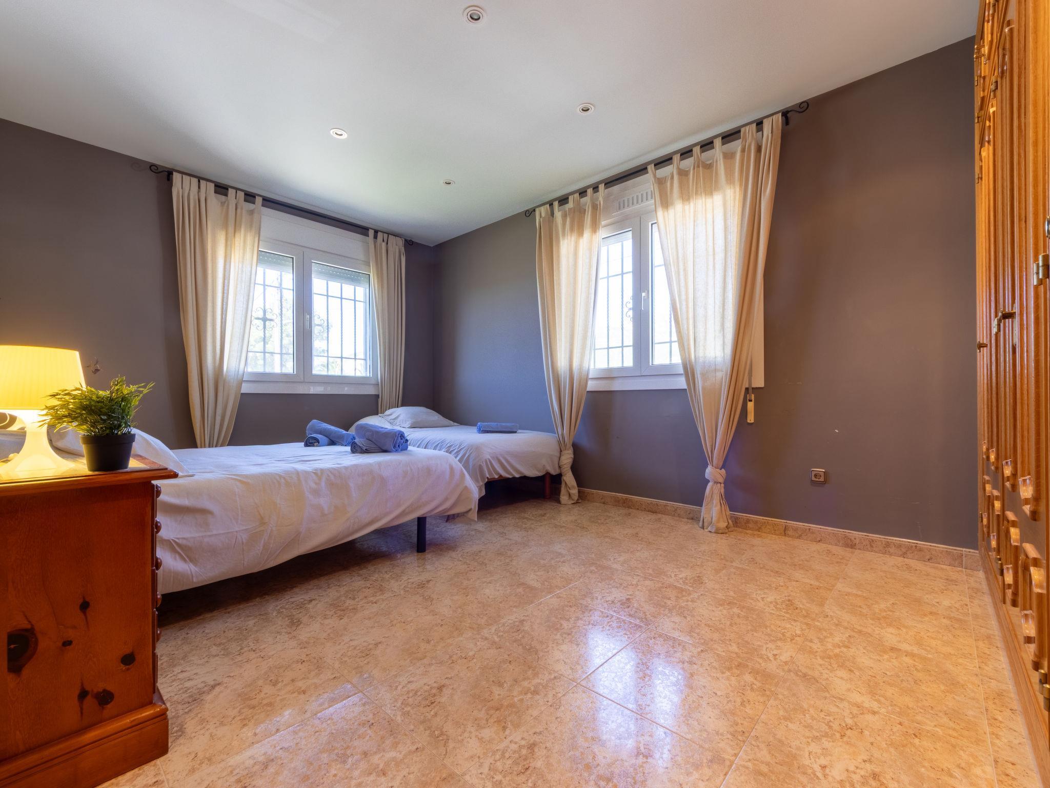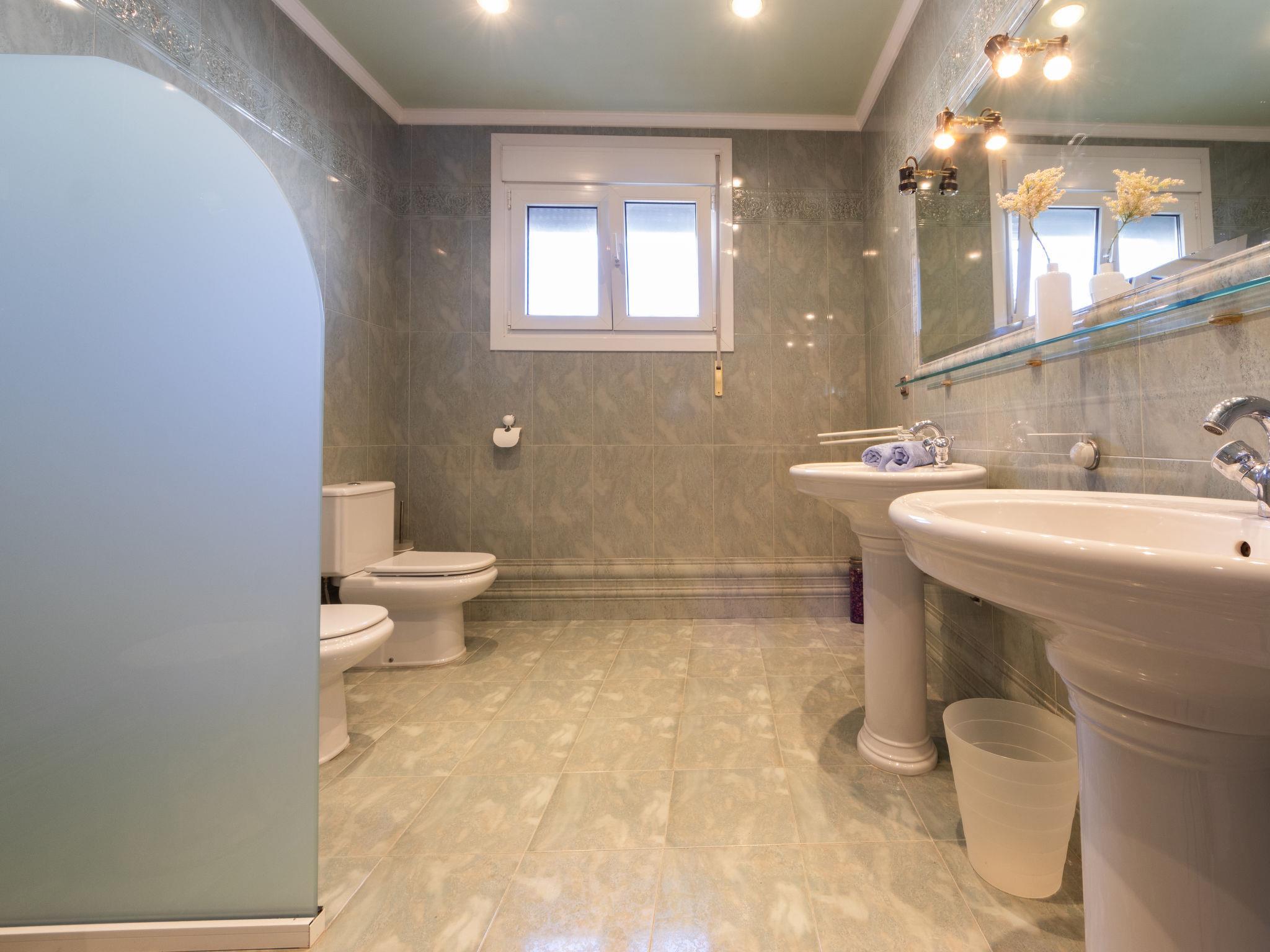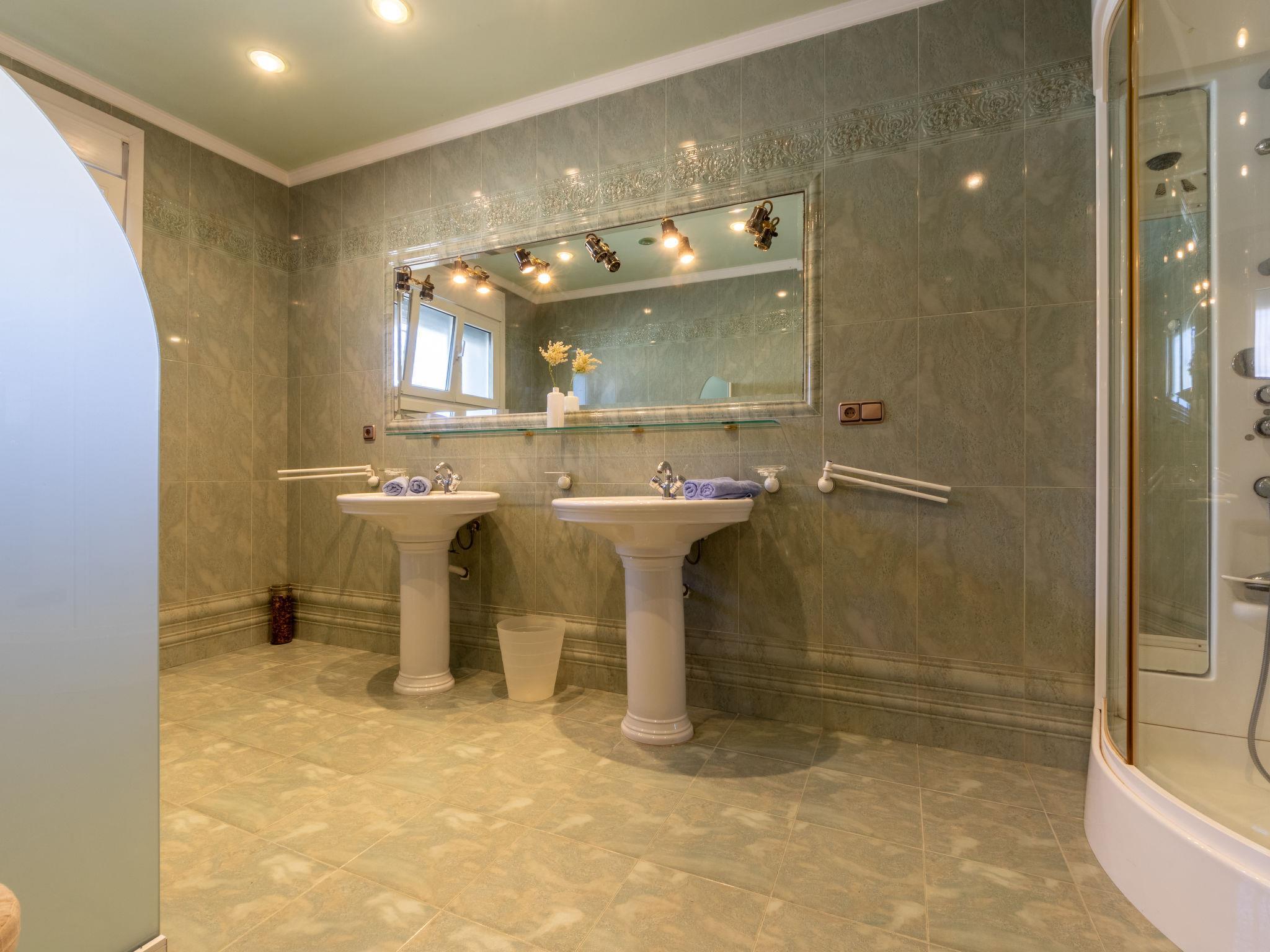 "Gladiols", 6-room house 168 m2. Comfortable furnishings: living/dining room with digital TV and air conditioning. 1 room with 1 french bed (1 x 150 cm, length 190 cm), shower/WC and forced-air heating. 1 room with 1 bed (90 cm, length 190 cm), 1 french bed (1 x 150 cm, length 190 cm), air conditioning and forced-air heating. 1 room with 1 bed (90 cm, length 190 cm), 1 french bed (1 x 150 cm, length 190 cm), air conditioning and forced-air heating. 1 room with 1 bed (90 cm, length 190 cm), 1 french bed (1 x 150 cm, length 190 cm), air conditioning and forced-air heating. 1 room with 1 bed (90 cm, length 190 cm), 1 french bed (1 x 150 cm, length 190 cm), air conditioning and forced-air heating. Large kitchen (dishwasher, 4 ceramic glass hob hotplates, toaster, kettle, microwave, freezer, electric coffee machine) with open-hearth fireplace (only for decoration). Bath/shower/bidet/WC. On the lower ground floor: shower/WC. View of the sea. Facilities: washing machine, iron, hair dryer. Internet (WiFi, free). HUTTE-001381 // Reg. Nr.: ESFCTU0000430110001099020000000000000000HUTTE-0013812