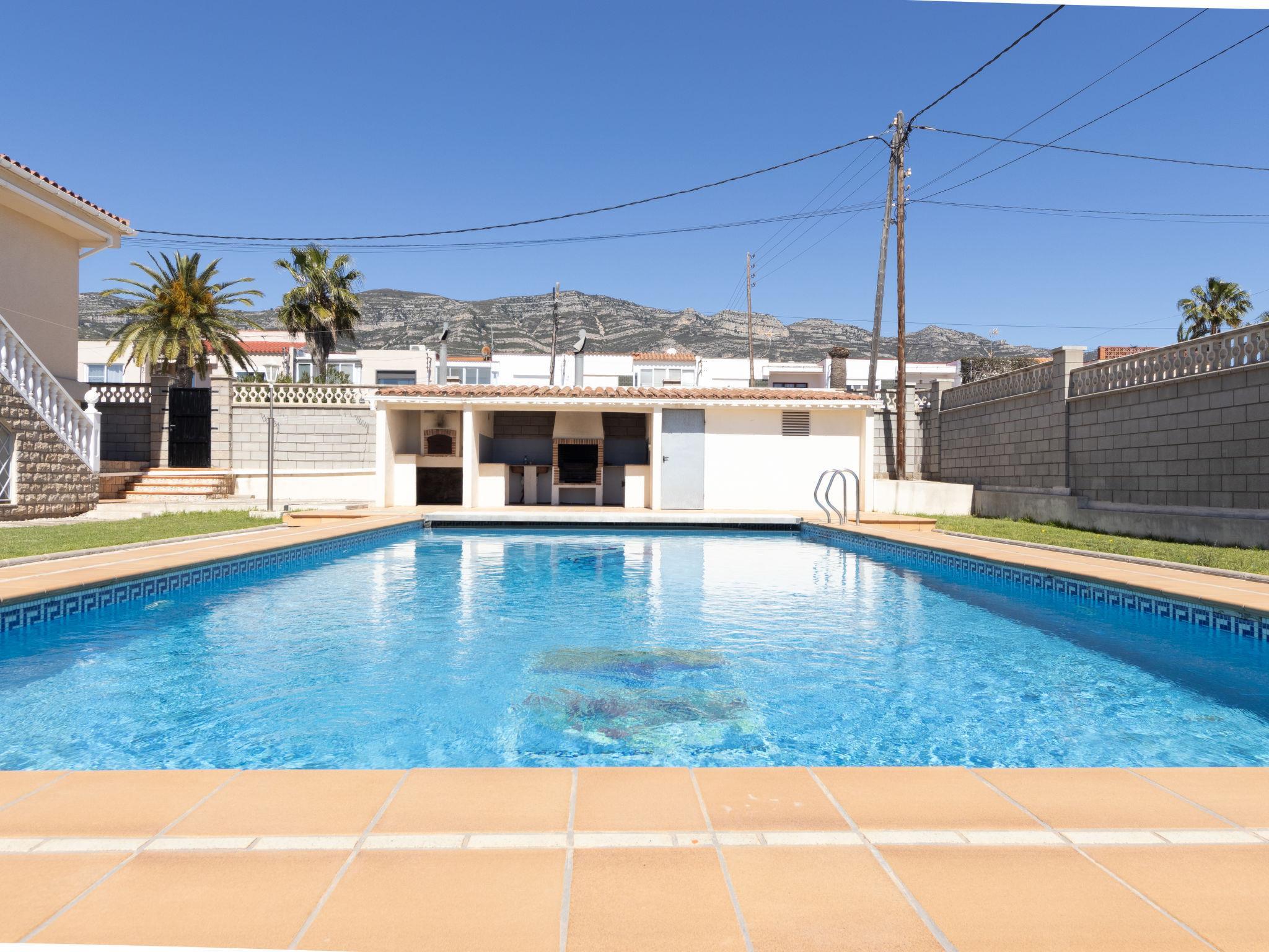 Alcanar Playa: Cosy house "Gladiols". Above Alcanar Playa, outside the resort, 2 km from the centre of Sant Carles de la Rapita, 600 m from the sea, 600 m from the beach, road to cross. Private: beautiful, well-kept garden, swimming pool (12 x 6 m, depth 125 - 170 cm, seasonal availability: 01.Apr. - 30.Sep.). Outdoor shower, terrace, barbecue, pool maintenance by the owner/gardener. In the house: air conditioning. Single garage at the house. Shop 500 m, supermarket 3 km, shopping centre 3 km, restaurant 500 m, bus stop "Hife" 500 m, railway station "l'Aldea" 20 km, sandy beach "Delicies" 2 km, shingle beach 650 m (small). Sports harbour 3 km, marina 3 km, golf course (18 hole) 30 km, surf school 3 km, sailing school 3 km, tennis 3 km. Nearby attractions: Port Aventura Salou 90 km, Vinaroz 30 km, Parque Natural del Delta 25 km, Isla de Buda Amposta 25 km, La Casa de Fusta Encanyissada 25 km. Hiking paths: La Foradada Sant Carlos de la Rapita 5 km. Groups of teenagers on request only. Neighbourhood highly sensitive to noise. Quietness and good behaviour expected.