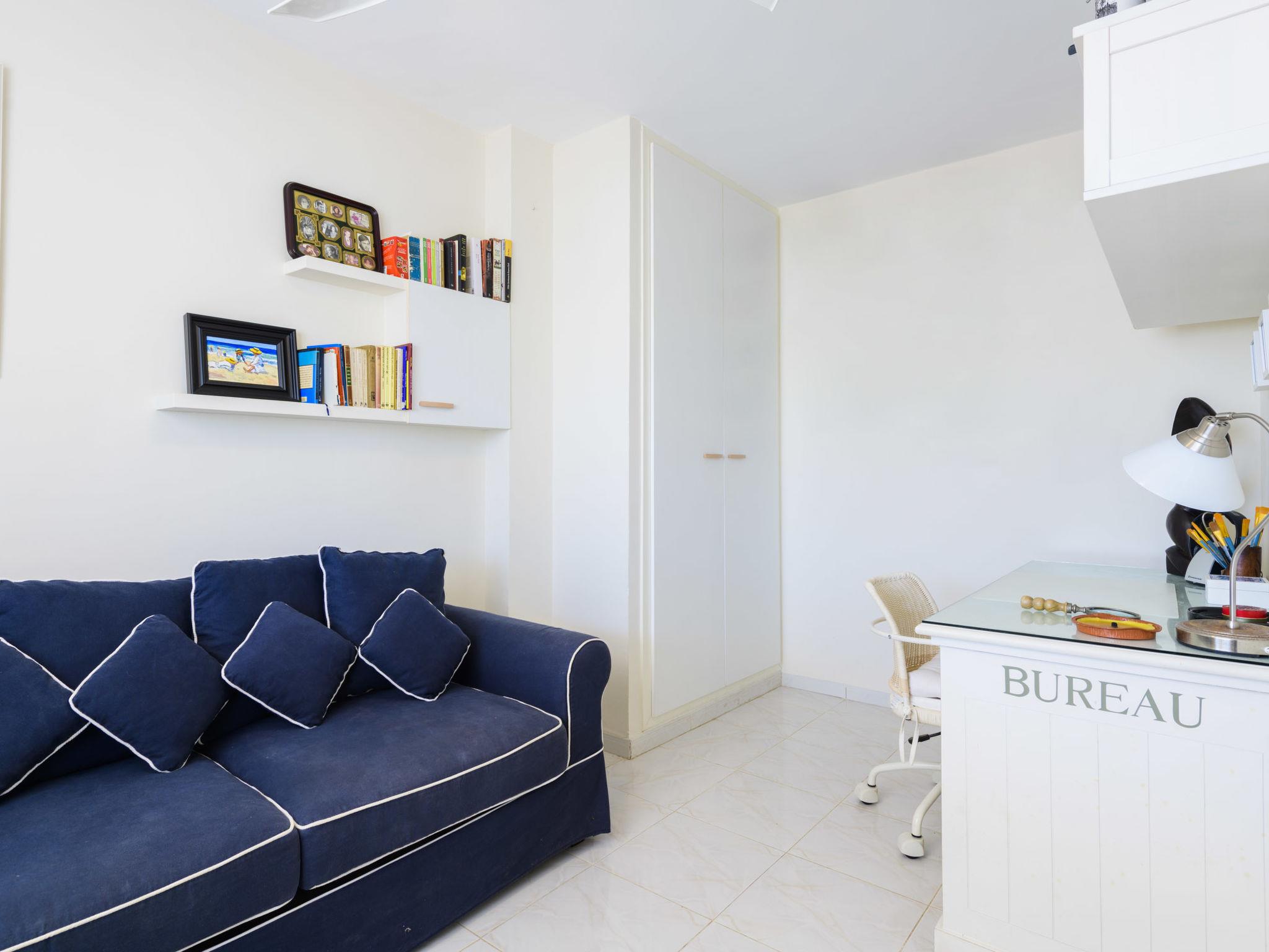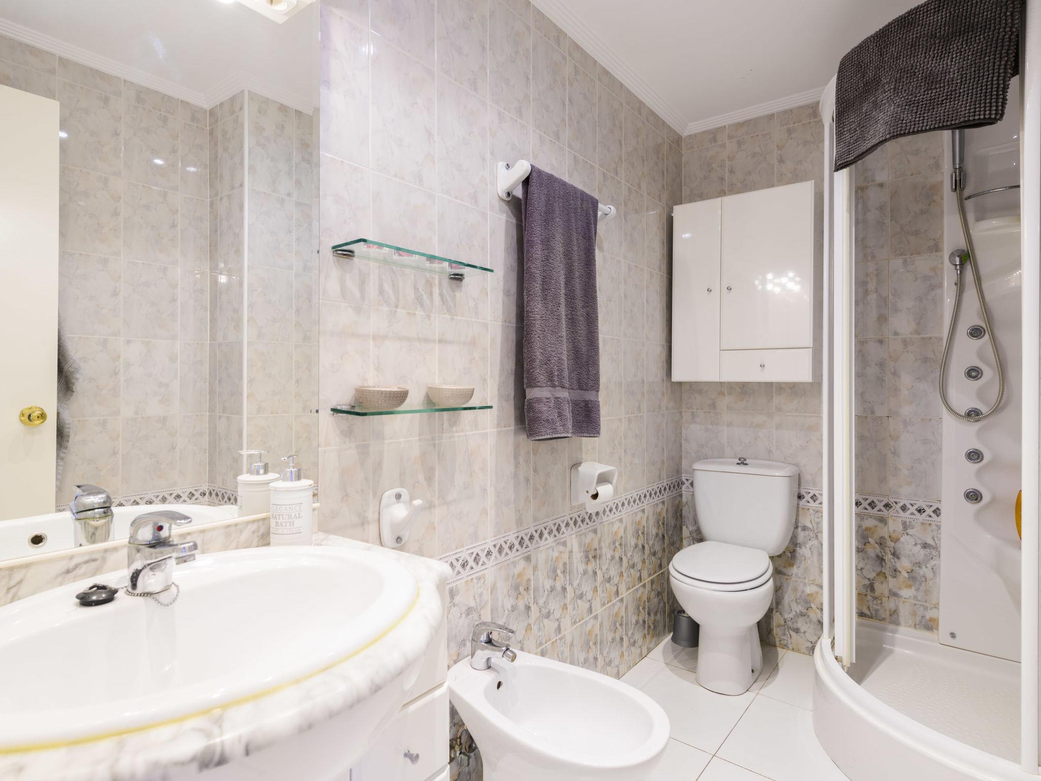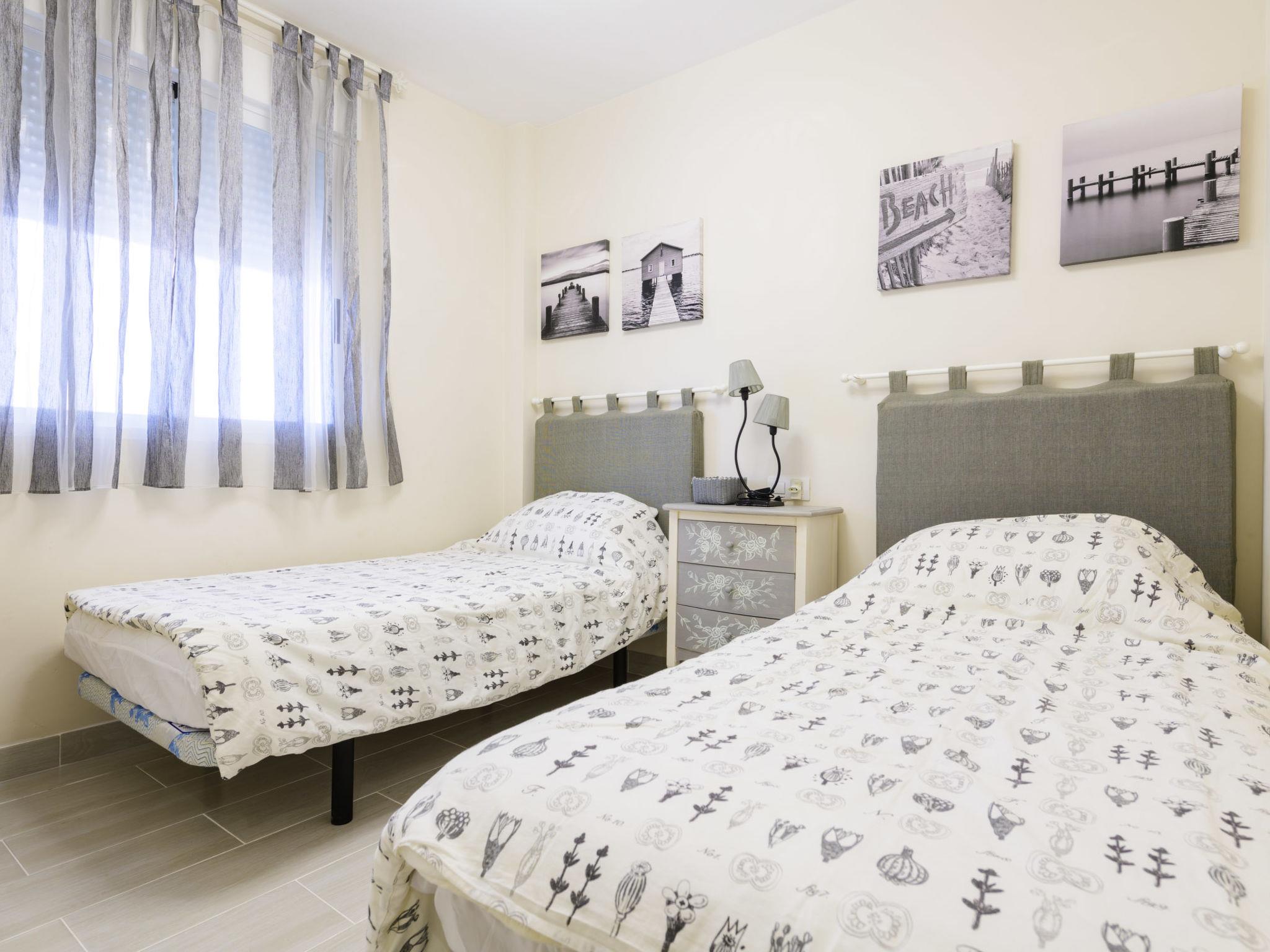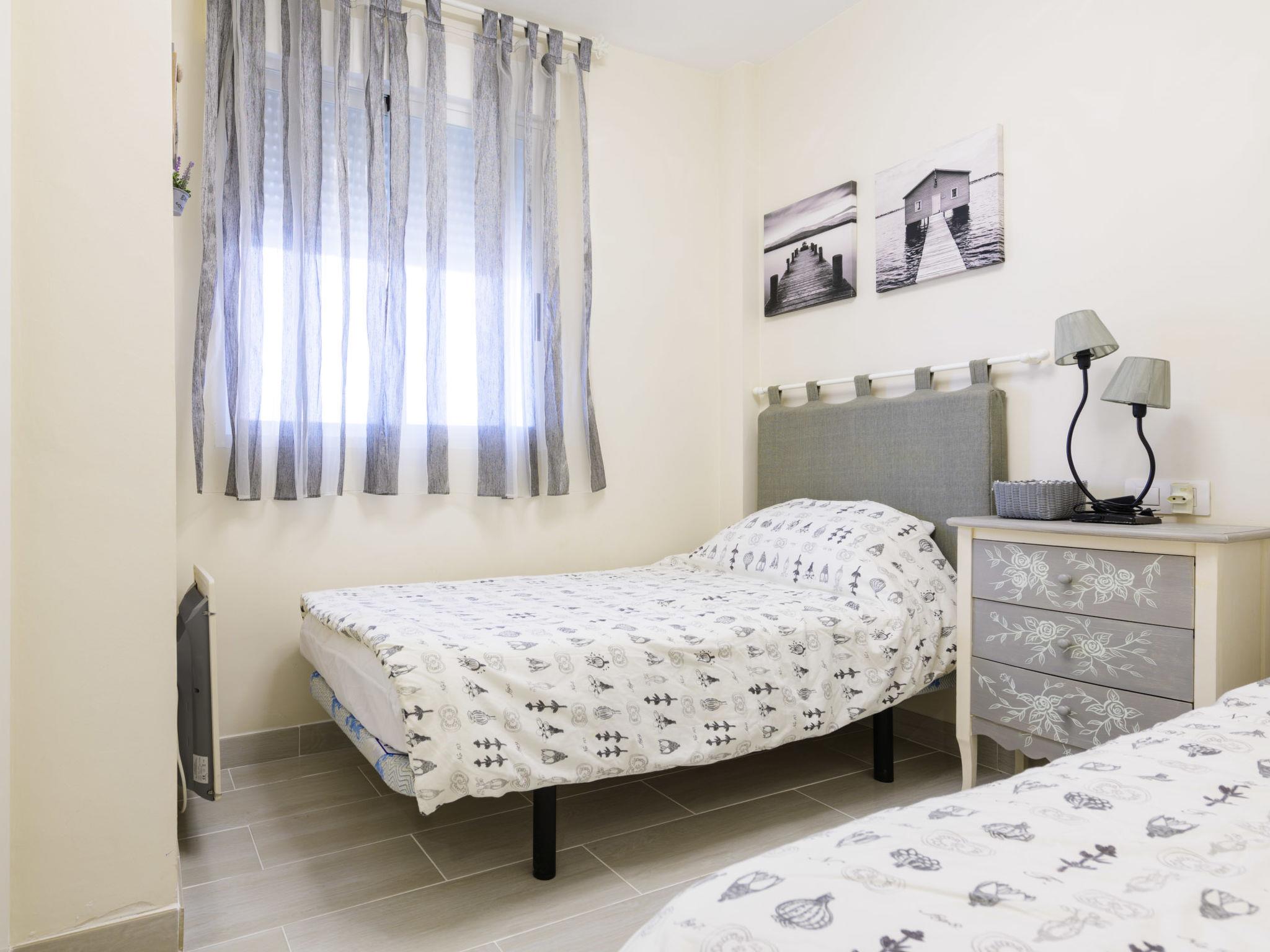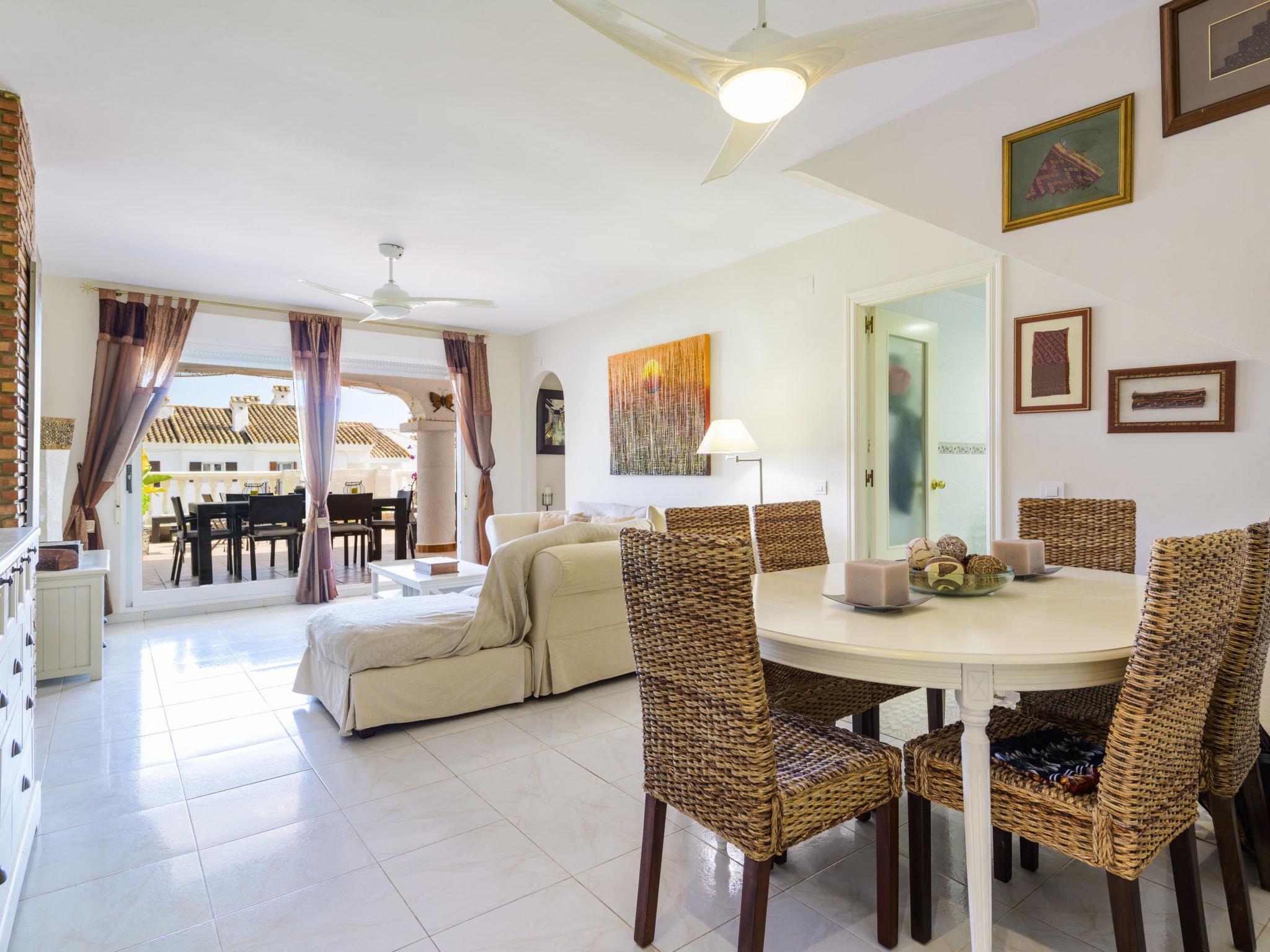 "Dúplex Seaview", 4-room apartment 80 m2 on 2 levels, on the upper floor. Spacious and bright, very comfortable furnishings: large living/dining room with dining table, digital TV, flat screen, radio, hi-fi system and fan. Exit to the terrace. 1 room with 1 double sofabed (135 cm, length 190 cm), fan. Kitchen (oven, dishwasher, 4 ceramic glass hob hotplates, toaster, microwave, freezer, electric coffee machine). Shower/bidet/WC. No heating option. Upper floor: 1 double bedroom with 1 french bed (160 cm, length 200 cm), fan. Exit to the terrace. 1 double bedroom with 2 beds (90 cm, length 190 cm), fan. Bath/bidet/WC. Large terrace 140 m2, small terrace 12 m2. Terrace furniture, deck chairs (4). View of the sea and the resort. Facilities: washing machine, iron, hair dryer. Parking (roofed). Please note: suitable for families. Non-smokers only. VT-46059-CS // Reg. Nr.: ESFCTU00001200600032054900000000000000000VT-46059-CS8