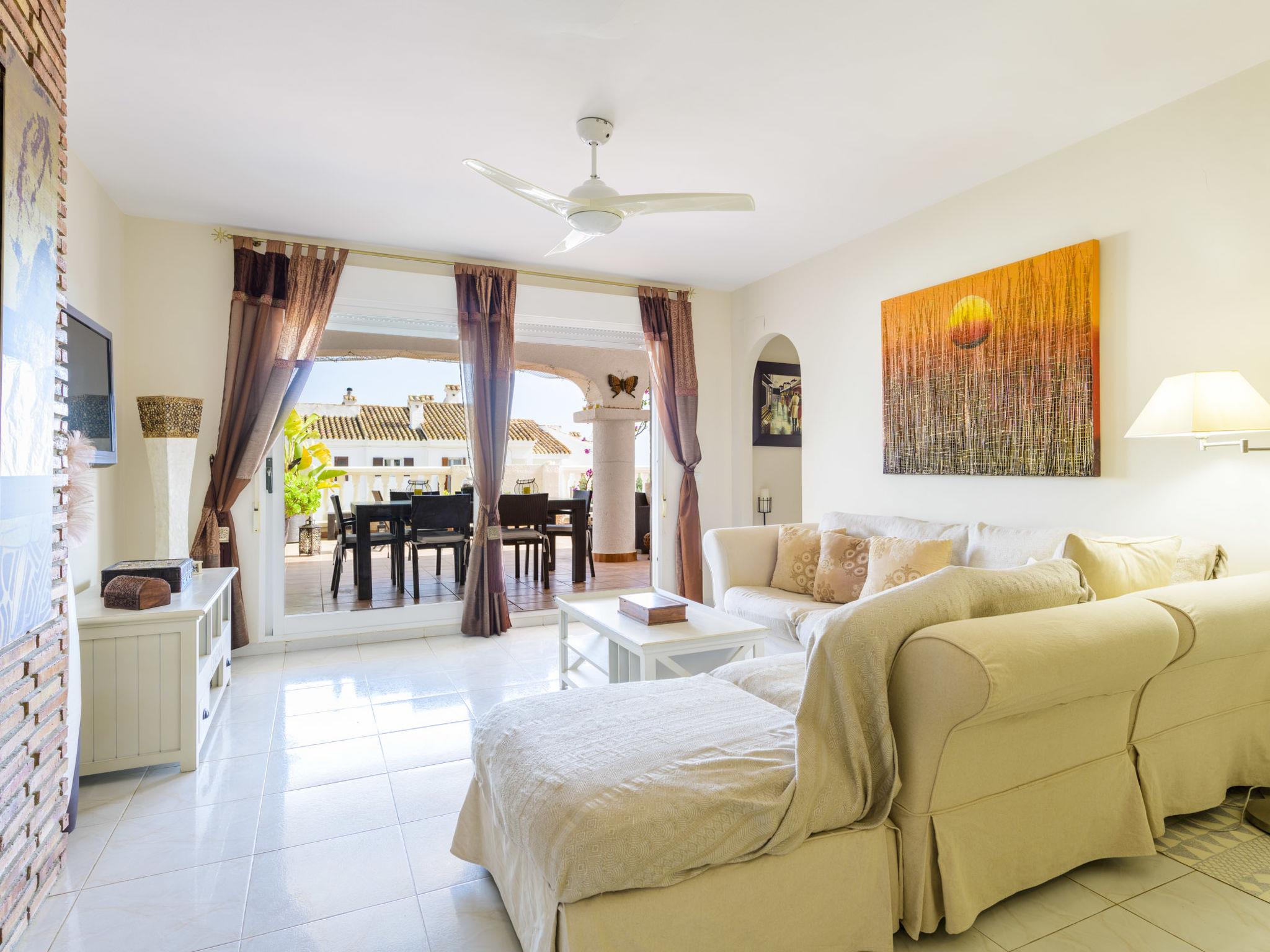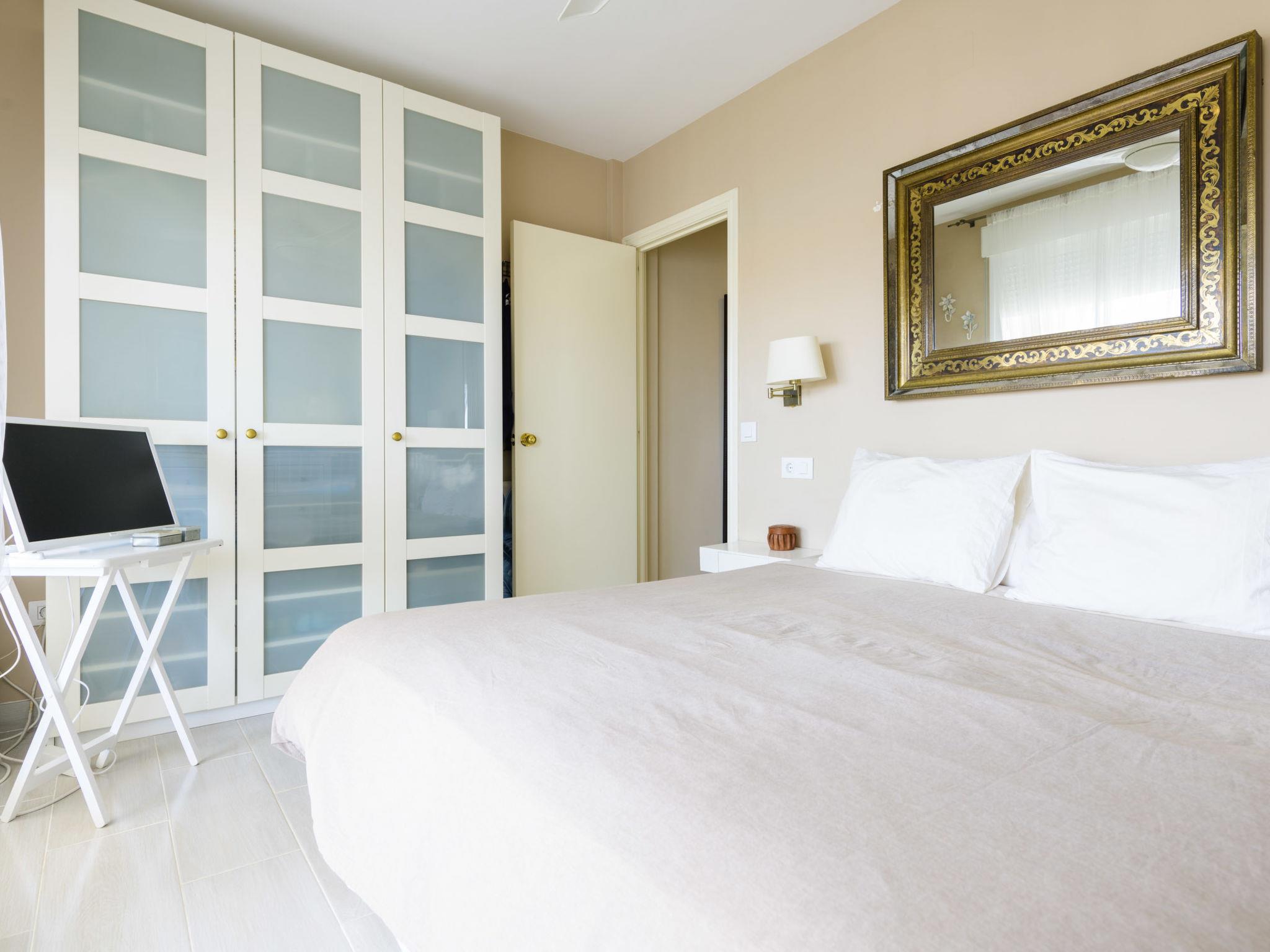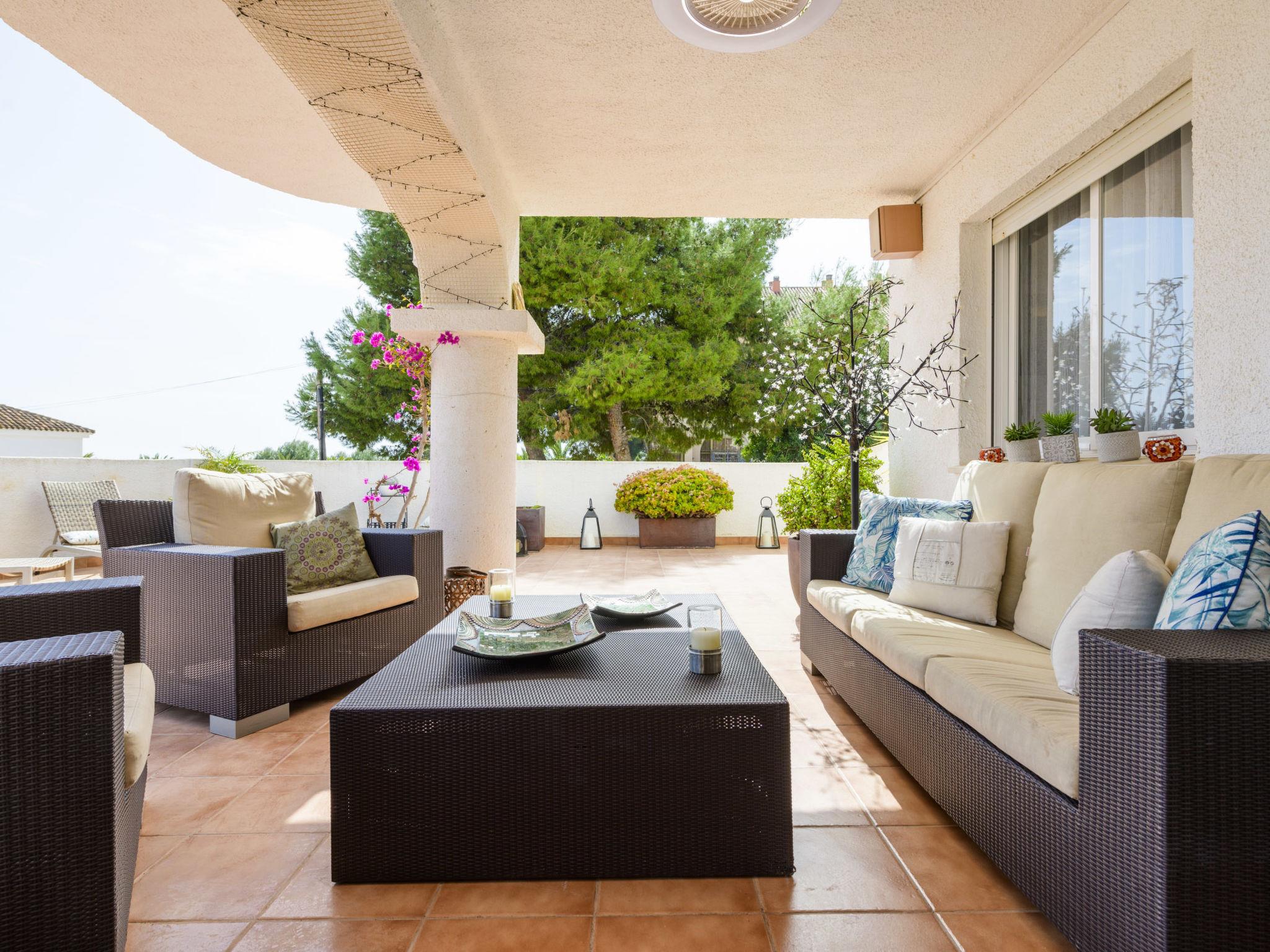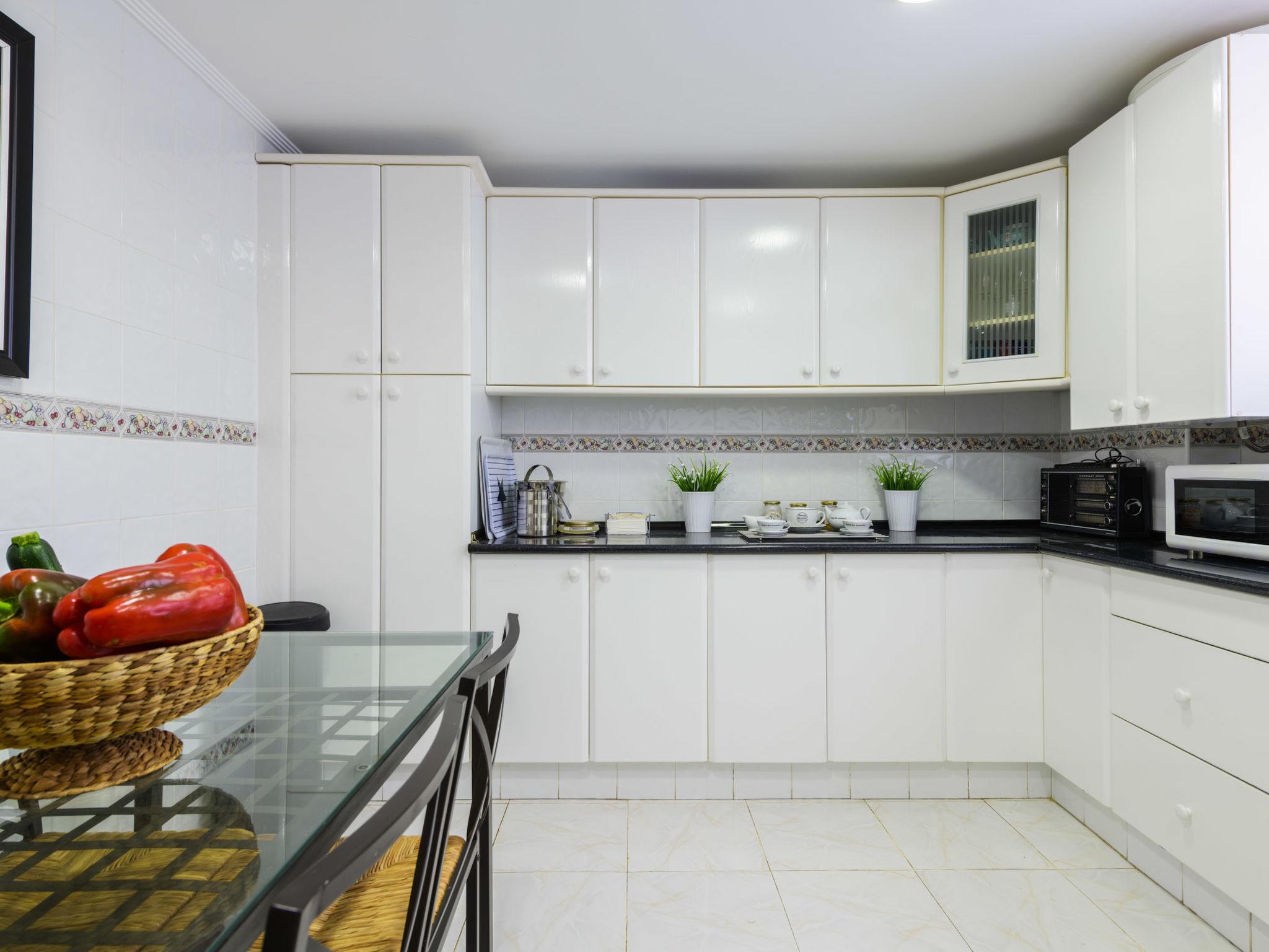 "Dúplex Seaview", 4-room apartment 80 m2 on 2 levels, on the upper floor. Spacious and bright, very comfortable furnishings: large living/dining room with dining table, digital TV, flat screen, radio, hi-fi system and fan. Exit to the terrace. 1 room with 1 double sofabed (135 cm, length 190 cm), fan. Kitchen (oven, dishwasher, 4 ceramic glass hob hotplates, toaster, microwave, freezer, electric coffee machine). Shower/bidet/WC. No heating option. Upper floor: 1 double bedroom with 1 french bed (160 cm, length 200 cm), fan. Exit to the terrace. 1 double bedroom with 2 beds (90 cm, length 190 cm), fan. Bath/bidet/WC. Large terrace 140 m2, small terrace 12 m2. Terrace furniture, deck chairs (4). View of the sea and the resort. Facilities: washing machine, iron, hair dryer. Parking (roofed). Please note: suitable for families. Non-smokers only. VT-46059-CS // Reg. Nr.: ESFCTU00001200600032054900000000000000000VT-46059-CS8