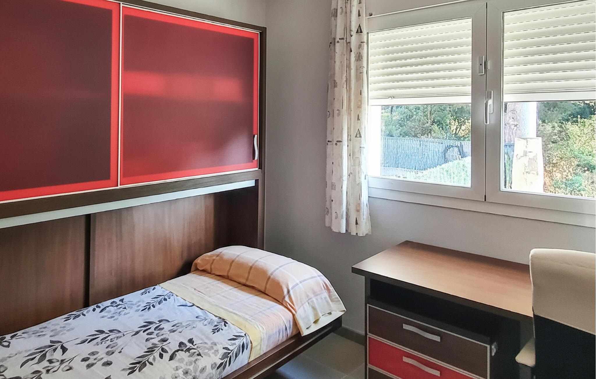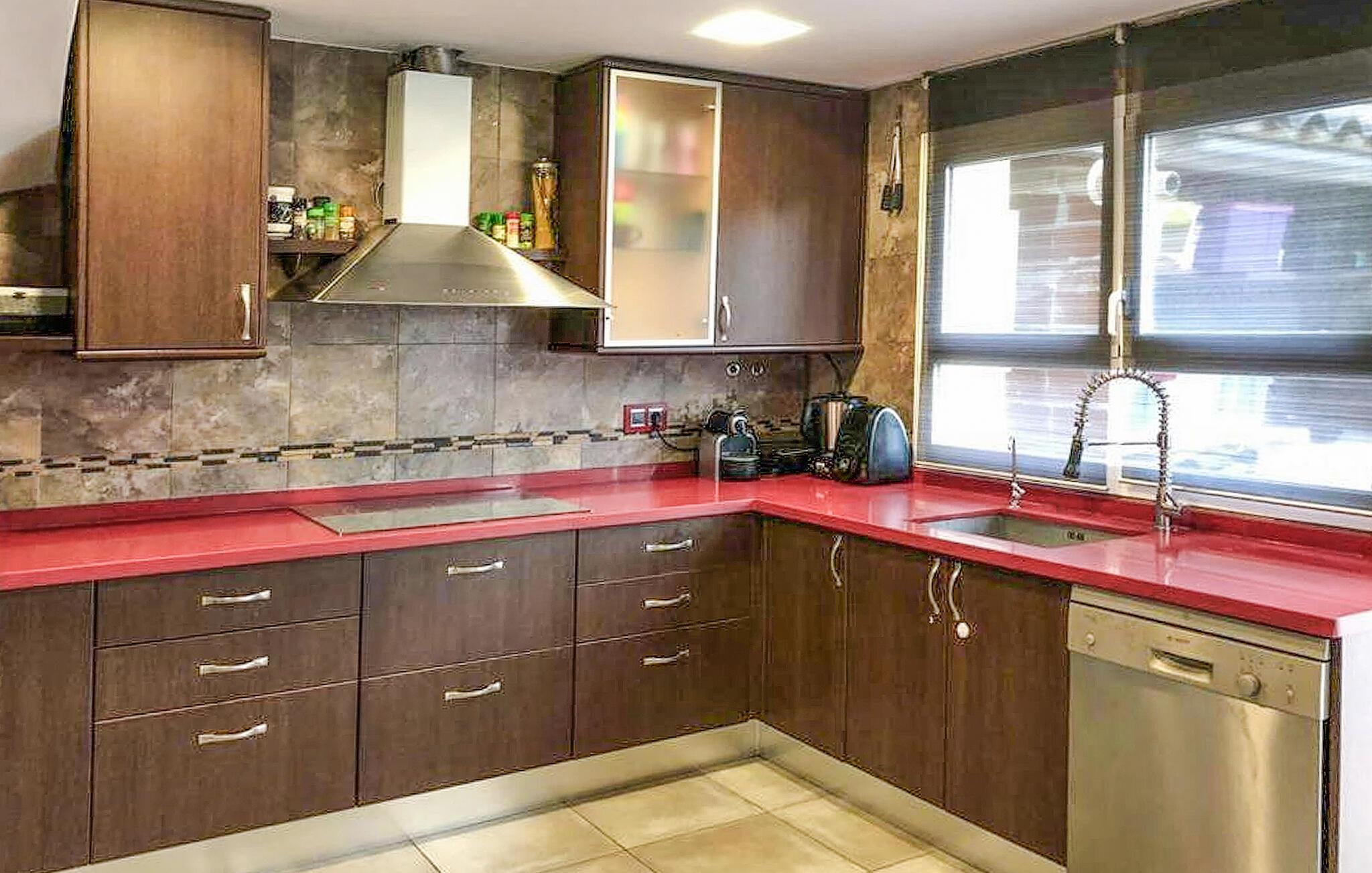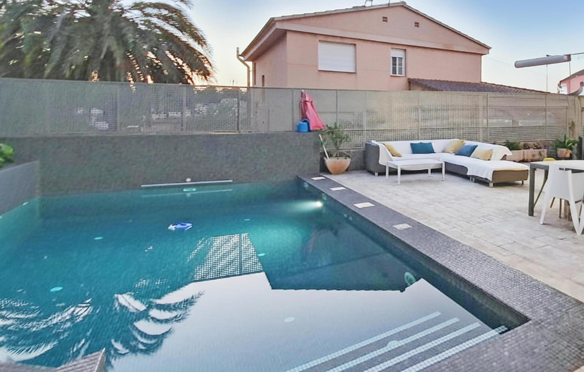 Forkæl jer selv med en afslappende ferie i dette komfortable feriehus med pool og spabad. Dette rummelige feriehus byder jer velkommen med et moderne interiør, hvor I kan tilbringe afslappende timer med familien eller venner på alle årstider. Planlæg jeres aktiviteter over harmoniske måltider, lyt til den bløde knitren fra pejsen under rolige læsestunder eller sjove spilleaftener, eller stream en film. Jeres store terrasse er perfekt til at nyde det vidunderlige klima fuldt ud. Forfrisk jer selv i poolen, nyd et glas vin på komfortable loungemøbler og fejr tiden sammen med stemningsfulde grillfester. Efter lange vandreture i naturen giver spabadet en ekstra dosis afslapning. Beundr den traditionelle keramikkunst i Alcora og slentr gennem den charmerende gamle bydel. Vandr gennem duftende fyrreskove i naturparken Sierra de Espadán og udforsk middelalderbyen Villafamés. Solbad på strandene i Benicàssim og nyd en autentisk paella.