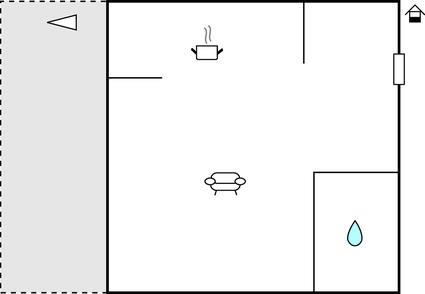 Opholdsstue 25m2 - 1 Soveplads. (Enkeltseng(e)). 2 Sovepladser. (Dobbeltseng(e)).