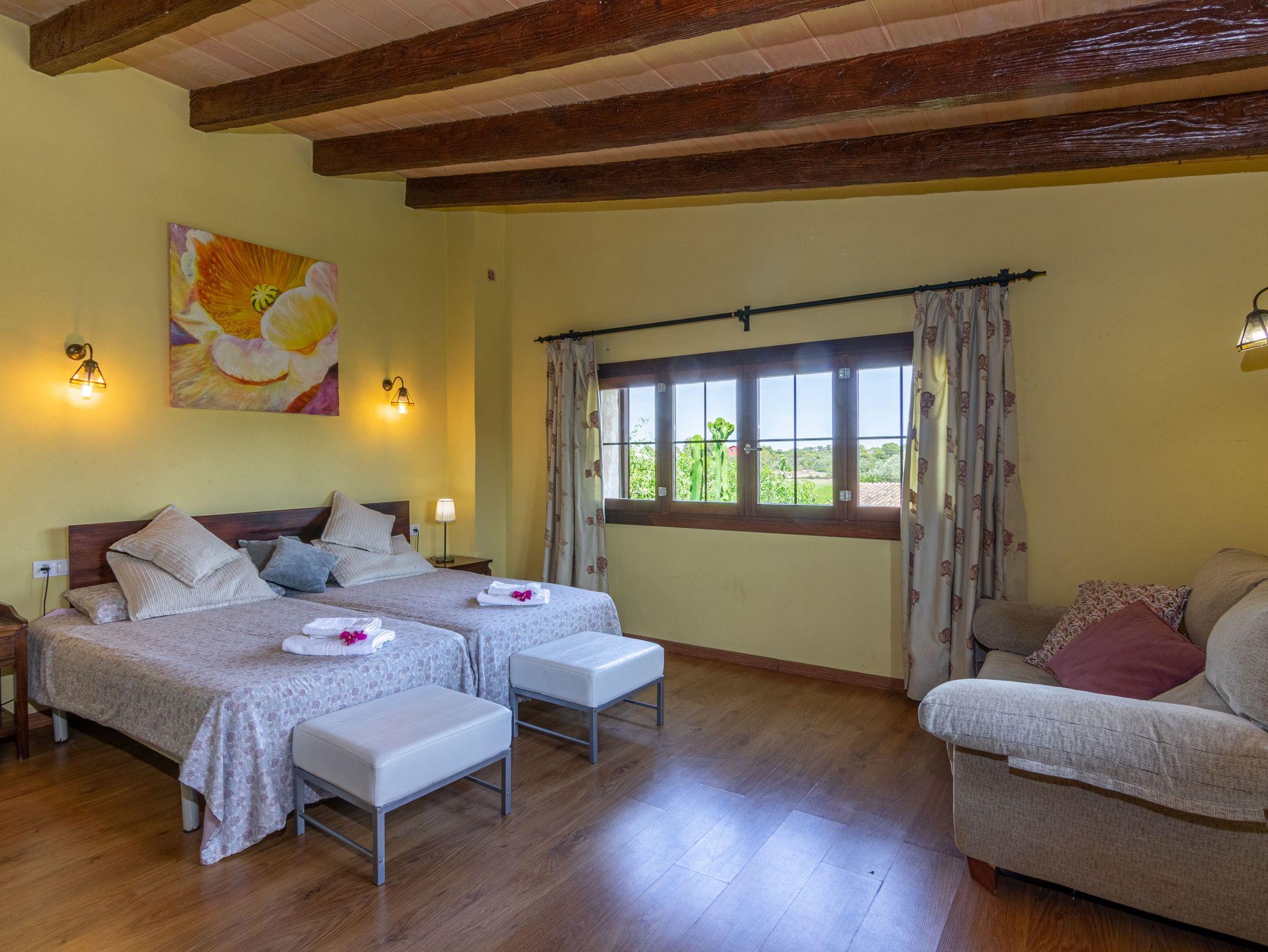 Mit sichtbaren Holzbalken und mediterraner Dekoration spiegelt das Haus den Stil traditioneller mallorquinischer Fincas wider. Geeignet für bis zu 6 Personen.