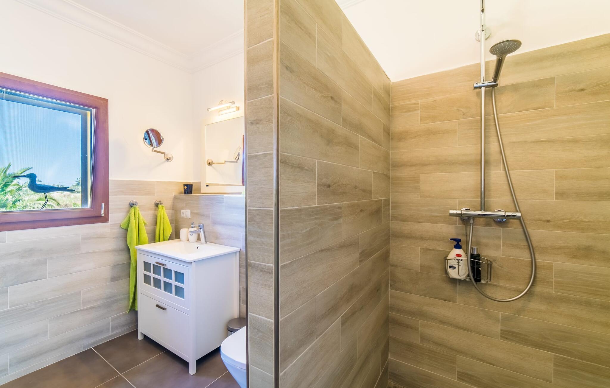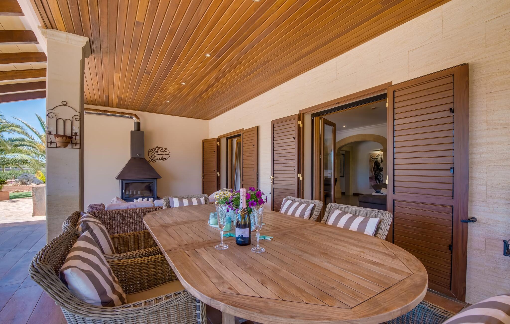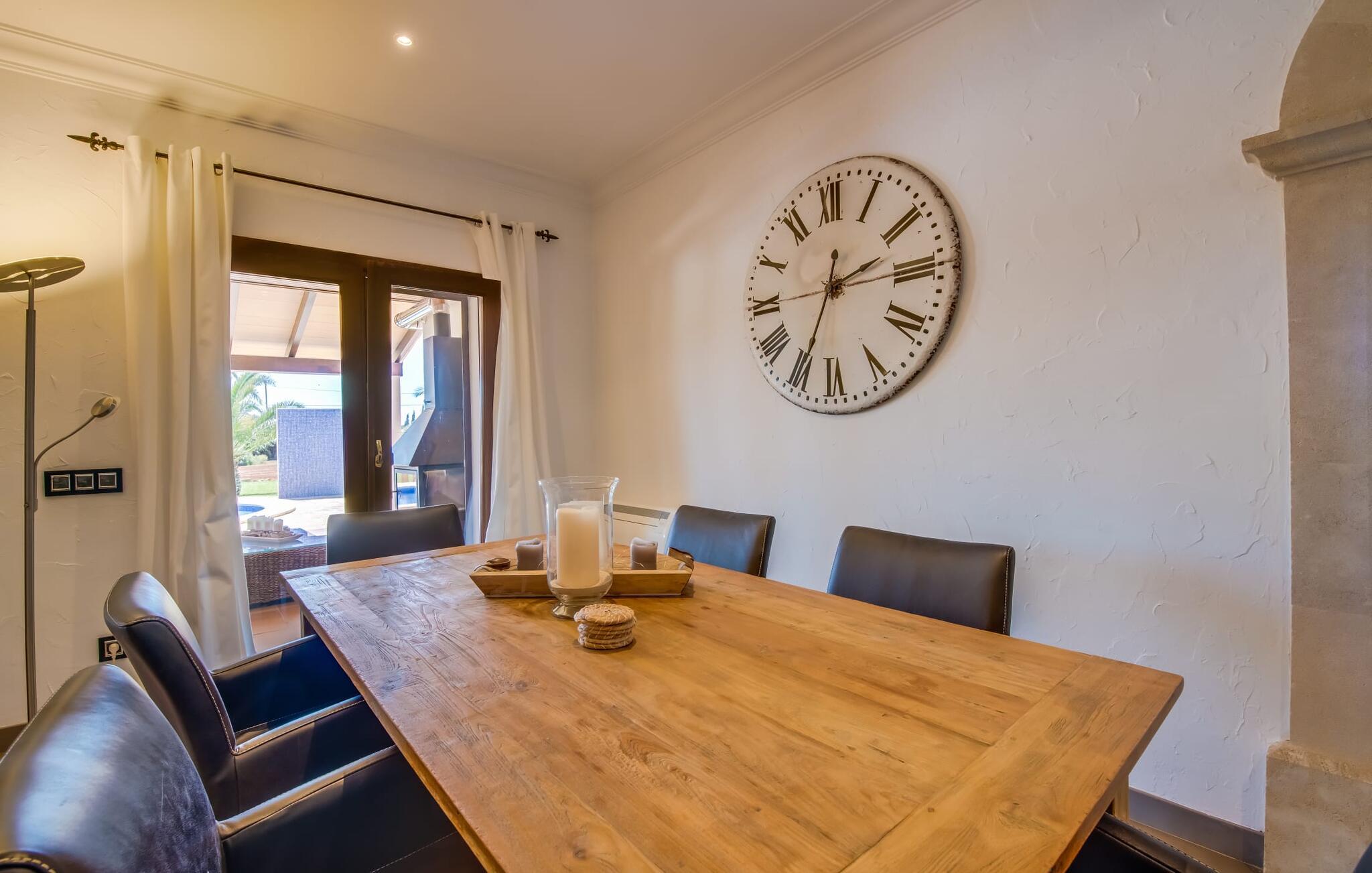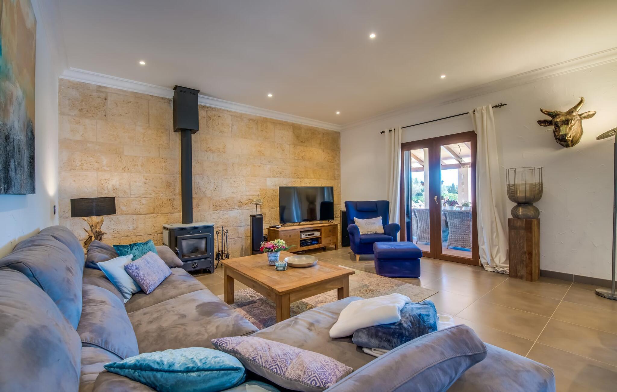 Efter en behagelig køretur på de fuldstændig asfalterede veje når I den gæstfri villa "Sa Rapita". Ejendommen blev udviklet i 2012 (renoveret i 2017!) og bygget i en lav bungalow-stil. Huset og haven, inklusive saltvandsbassinet, vender mod syd. En rummelig græsplæne omgiver den solrige bygning og giver plads nok til, at børn kan lege. Den forfriskende swimmingpool har en bred og behagelig trappe for enden. Unge træer og talrige palmer er spredt ud over det velholdte udendørsområde. Den rummelige L-formede terrasse med udsigt over swimmingpoolen og smukke haver er fuldt overdækket og byder på kølige kurvemøbler af høj kvalitet, der matcher spisepladserne designet i en lignende stil - et ideelt sted at nyde en drink eller selvfølgelig til en afslappet grill tilberedt sammen. Her kan I samtidig slappe af og holde øje med jeres børn, som frit kan færdes i haven. Om aftenen skaber den udendørs pejs en masse hygge. Den hyggelige veranda har adskillige indgange i stueplan til det indre af den trendy villa, hvilket sikrer et lysfyldt interiør. Dette giver jer mulighed for at få en problemfri overgang mellem indendørs og udendørs ophold. Lige bag den rummelige terrasse ligger den enorme opholds- og spisestue med en yderst indbydende sofa foran den gennemsigtige pejs, som skaber en særlig rustik stemning foran den rustikke stenmur. Derudover er de nænsomt strukturerede vægge holdt i lys hvid, og der er indbyggede spots i loftet, som danner en særlig æstetisk kontrast til de store grå gulvfliser. Spisepladsen med træbord og komfortable polstrede stole matcher den stilfulde indretning. Men den mallorcanske byggetradition er også hædret, for dørbuerne, der fører til de øvrige rum, er beklædt med sandsten. Det separate køkken er fuldt udstyret og behageligt stort, der er endda plads til endnu en attraktiv spiseplads. Da en ydervæg blev erstattet af et stort vindue, kommer der ekstra lys ind i rummet præcis dér, og rummet har også direkte adgang til det fri. Eksklusivt indrettet med hvide og vanilje monterede køkkenelementer sat op mod en elegant stenmur, køkkenet er imponerende og komfortabelt udstyret, hvilket er præcis, hvad I forestiller jer, når I vælger selvforplejning, og kvaliteten kunne næsten ikke være bedre. Tre rummelige, individuelt designede soveværelser, hver med en standard king-size seng til en afslappende nats søvn; En barneseng er tilgængelig til en baby. Der er tre absolut smarte badeværelser, designet med elegante fliser og armaturer. De har alle et brusekabine, og der er også et badeværelse med et stort badekar og et bidet. Den sydlige del af Mallorca er kendetegnet på den ene side af en behagelig og afslappende rustik atmosfære, og på den anden side af dens nærhed til kysten, hvilket gør klimaet i denne region særligt behageligt. Navnet på det charmerende landsted "Sa Rapita" er en hyldest til landsbyen af samme navn. På grund af nærheden til den hørbare vej, der fører fra Campos til SaRapita, er det muligt at nå kystbyen og dens fantastiske restauranter på få minutter. I kan også nå Campos lige så hurtigt, hvor shopping er fremragende. Den centrale beliggenhed giver mulighed for hurtige ture til de populære strande på sydkysten, herunder den 300 m lange Ses Covetes strand med dens upåklagelige infrastruktur. Den naturlige bugt "Es Trenc" med sine omfattende klitter, azurblå vand, store bølger og smukke, brede sandstrand kaldes med rette for den baleariske øs Caribien - i øvrigt er det også et ideelt rejsemål for nudistfans. Afslut dagen med en afslappet grillmad og et glas vin lagret under den mallorcanske sol i den charmerende villa "Sa Rapita" - personalet på Fincallorca ønsker jer og jeres familie og venner en afslappende tid i dette stærkt anbefalede feriehus. "Sa Rapita" er en ny og meget indbydende villa i det smukke landskab tæt på byen, som ligger kun en kort køretur væk. Der kan I handle på markedet eller i supermarkederne om onsdagen. For længere shoppingture er den berømte lædermetropol Campos kun 10 minutter væk. De smukke naturlige strande i syd som Ses Covetes eller Es Trenc er kun ca. 1.400 meter væk fra fincaen. Bemærk venligst, at denne ejendom ikke accepterer ungdomsgrupper eller polterabender. En ungdomsgruppe på denne ejendom består af personer på 25 år eller derunder. Book ikke denne ejendom, hvis I er en ungdomsgruppe eller en polterabendgruppe, da jeres reservation vil blive afvist, når den er booket, hvilket også kan være tilfældet ved ankomst til ejendommen eller under jeres ophold, og I vil ikke modtage en refusion.
