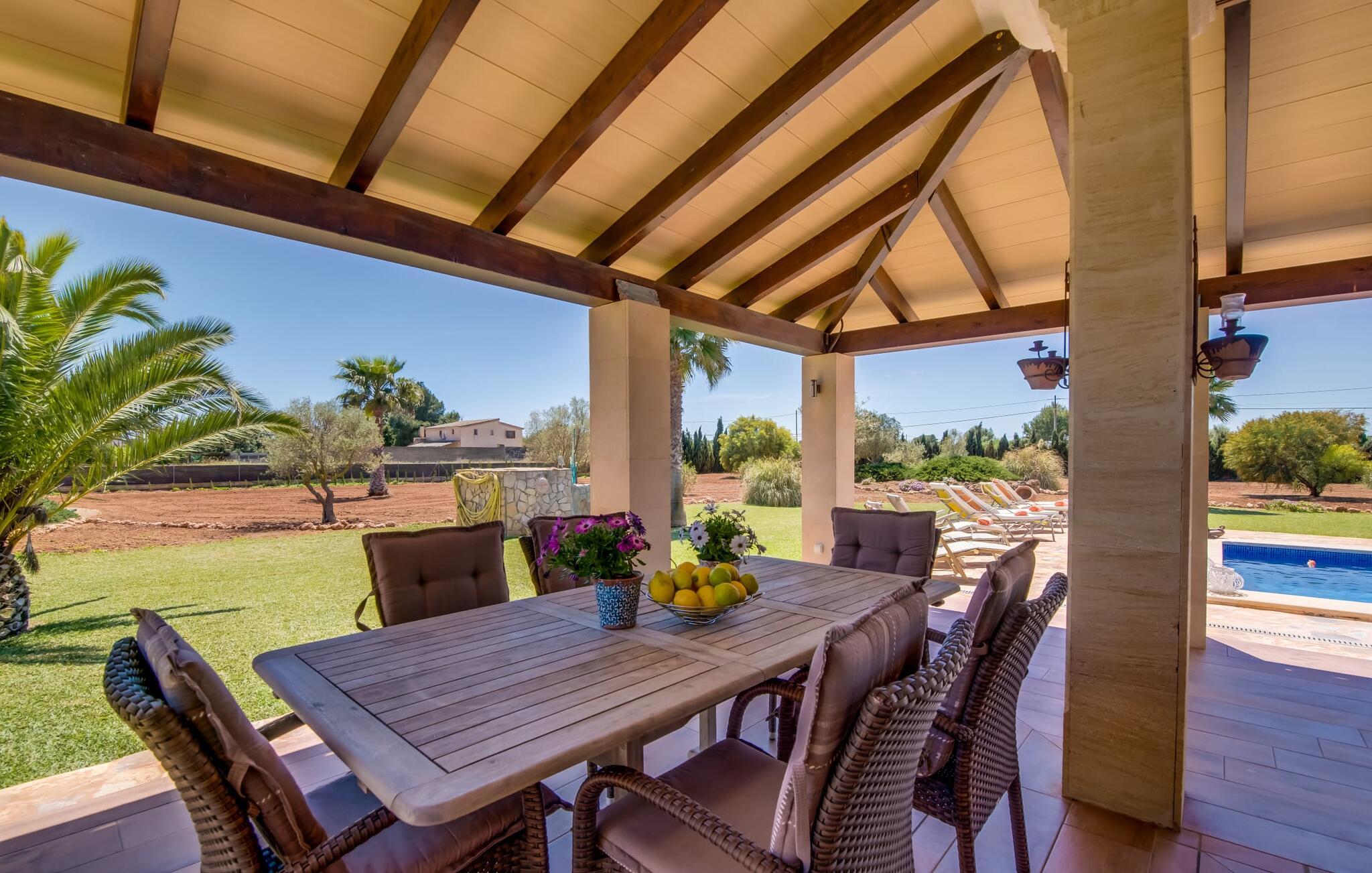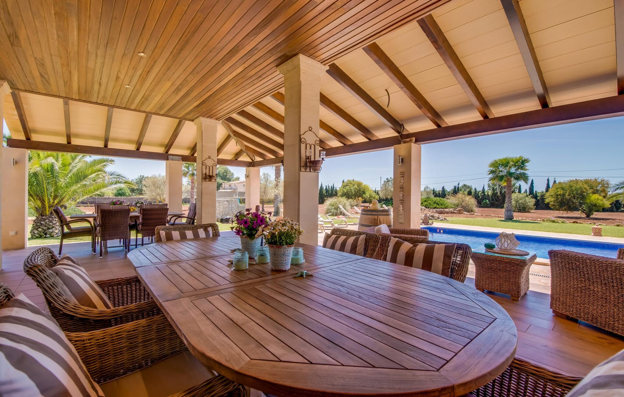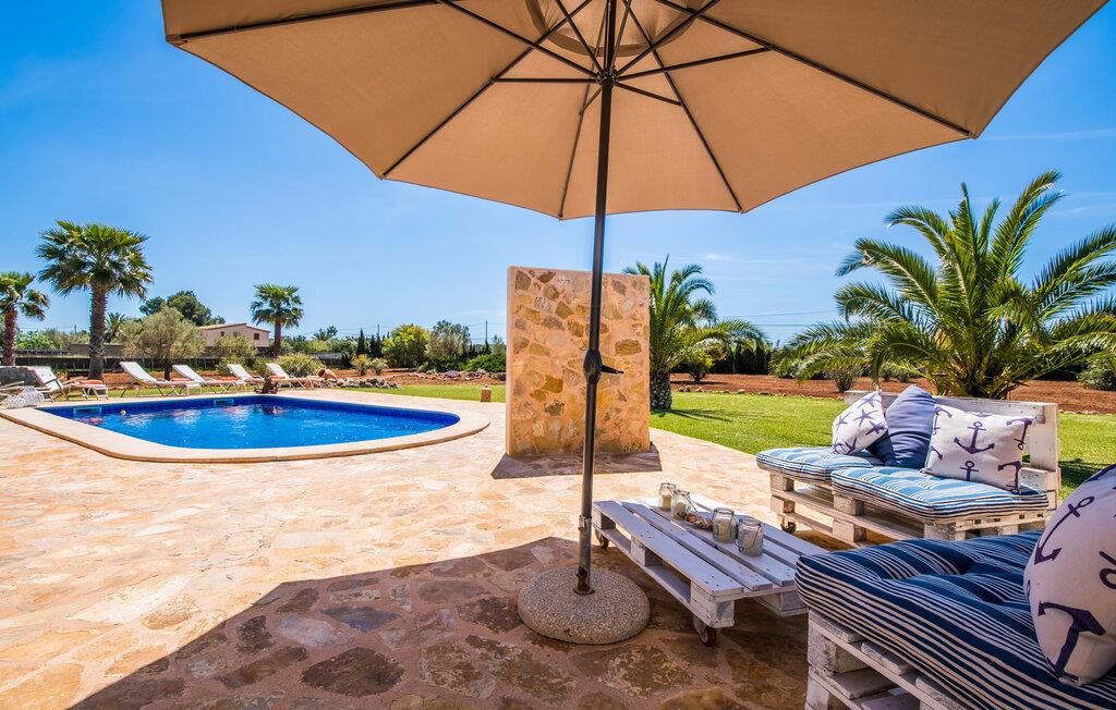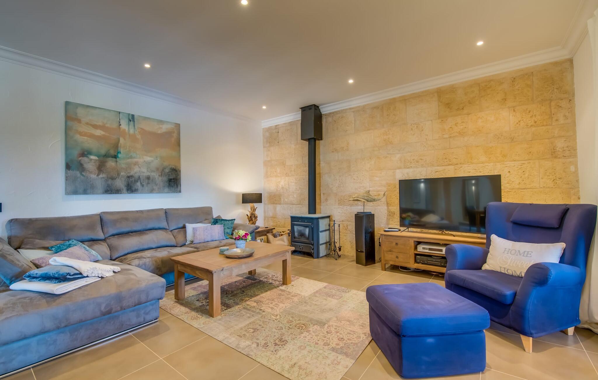 Efter en behagelig køretur på de fuldstændig asfalterede veje når I den gæstfri villa "Sa Rapita". Ejendommen blev udviklet i 2012 (renoveret i 2017!) og bygget i en lav bungalow-stil. Huset og haven, inklusive saltvandsbassinet, vender mod syd. En rummelig græsplæne omgiver den solrige bygning og giver plads nok til, at børn kan lege. Den forfriskende swimmingpool har en bred og behagelig trappe for enden. Unge træer og talrige palmer er spredt ud over det velholdte udendørsområde. Den rummelige L-formede terrasse med udsigt over swimmingpoolen og smukke haver er fuldt overdækket og byder på kølige kurvemøbler af høj kvalitet, der matcher spisepladserne designet i en lignende stil - et ideelt sted at nyde en drink eller selvfølgelig til en afslappet grill tilberedt sammen. Her kan I samtidig slappe af og holde øje med jeres børn, som frit kan færdes i haven. Om aftenen skaber den udendørs pejs en masse hygge. Den hyggelige veranda har adskillige indgange i stueplan til det indre af den trendy villa, hvilket sikrer et lysfyldt interiør. Dette giver jer mulighed for at få en problemfri overgang mellem indendørs og udendørs ophold. Lige bag den rummelige terrasse ligger den enorme opholds- og spisestue med en yderst indbydende sofa foran den gennemsigtige pejs, som skaber en særlig rustik stemning foran den rustikke stenmur. Derudover er de nænsomt strukturerede vægge holdt i lys hvid, og der er indbyggede spots i loftet, som danner en særlig æstetisk kontrast til de store grå gulvfliser. Spisepladsen med træbord og komfortable polstrede stole matcher den stilfulde indretning. Men den mallorcanske byggetradition er også hædret, for dørbuerne, der fører til de øvrige rum, er beklædt med sandsten. Det separate køkken er fuldt udstyret og behageligt stort, der er endda plads til endnu en attraktiv spiseplads. Da en ydervæg blev erstattet af et stort vindue, kommer der ekstra lys ind i rummet præcis dér, og rummet har også direkte adgang til det fri. Eksklusivt indrettet med hvide og vanilje monterede køkkenelementer sat op mod en elegant stenmur, køkkenet er imponerende og komfortabelt udstyret, hvilket er præcis, hvad I forestiller jer, når I vælger selvforplejning, og kvaliteten kunne næsten ikke være bedre. Tre rummelige, individuelt designede soveværelser, hver med en standard king-size seng til en afslappende nats søvn; En barneseng er tilgængelig til en baby. Der er tre absolut smarte badeværelser, designet med elegante fliser og armaturer. De har alle et brusekabine, og der er også et badeværelse med et stort badekar og et bidet. Den sydlige del af Mallorca er kendetegnet på den ene side af en behagelig og afslappende rustik atmosfære, og på den anden side af dens nærhed til kysten, hvilket gør klimaet i denne region særligt behageligt. Navnet på det charmerende landsted "Sa Rapita" er en hyldest til landsbyen af samme navn. På grund af nærheden til den hørbare vej, der fører fra Campos til SaRapita, er det muligt at nå kystbyen og dens fantastiske restauranter på få minutter. I kan også nå Campos lige så hurtigt, hvor shopping er fremragende. Den centrale beliggenhed giver mulighed for hurtige ture til de populære strande på sydkysten, herunder den 300 m lange Ses Covetes strand med dens upåklagelige infrastruktur. Den naturlige bugt "Es Trenc" med sine omfattende klitter, azurblå vand, store bølger og smukke, brede sandstrand kaldes med rette for den baleariske øs Caribien - i øvrigt er det også et ideelt rejsemål for nudistfans. Afslut dagen med en afslappet grillmad og et glas vin lagret under den mallorcanske sol i den charmerende villa "Sa Rapita" - personalet på Fincallorca ønsker jer og jeres familie og venner en afslappende tid i dette stærkt anbefalede feriehus. "Sa Rapita" er en ny og meget indbydende villa i det smukke landskab tæt på byen, som ligger kun en kort køretur væk. Der kan I handle på markedet eller i supermarkederne om onsdagen. For længere shoppingture er den berømte lædermetropol Campos kun 10 minutter væk. De smukke naturlige strande i syd som Ses Covetes eller Es Trenc er kun ca. 1.400 meter væk fra fincaen. Bemærk venligst, at denne ejendom ikke accepterer ungdomsgrupper eller polterabender. En ungdomsgruppe på denne ejendom består af personer på 25 år eller derunder. Book ikke denne ejendom, hvis I er en ungdomsgruppe eller en polterabendgruppe, da jeres reservation vil blive afvist, når den er booket, hvilket også kan være tilfældet ved ankomst til ejendommen eller under jeres ophold, og I vil ikke modtage en refusion.