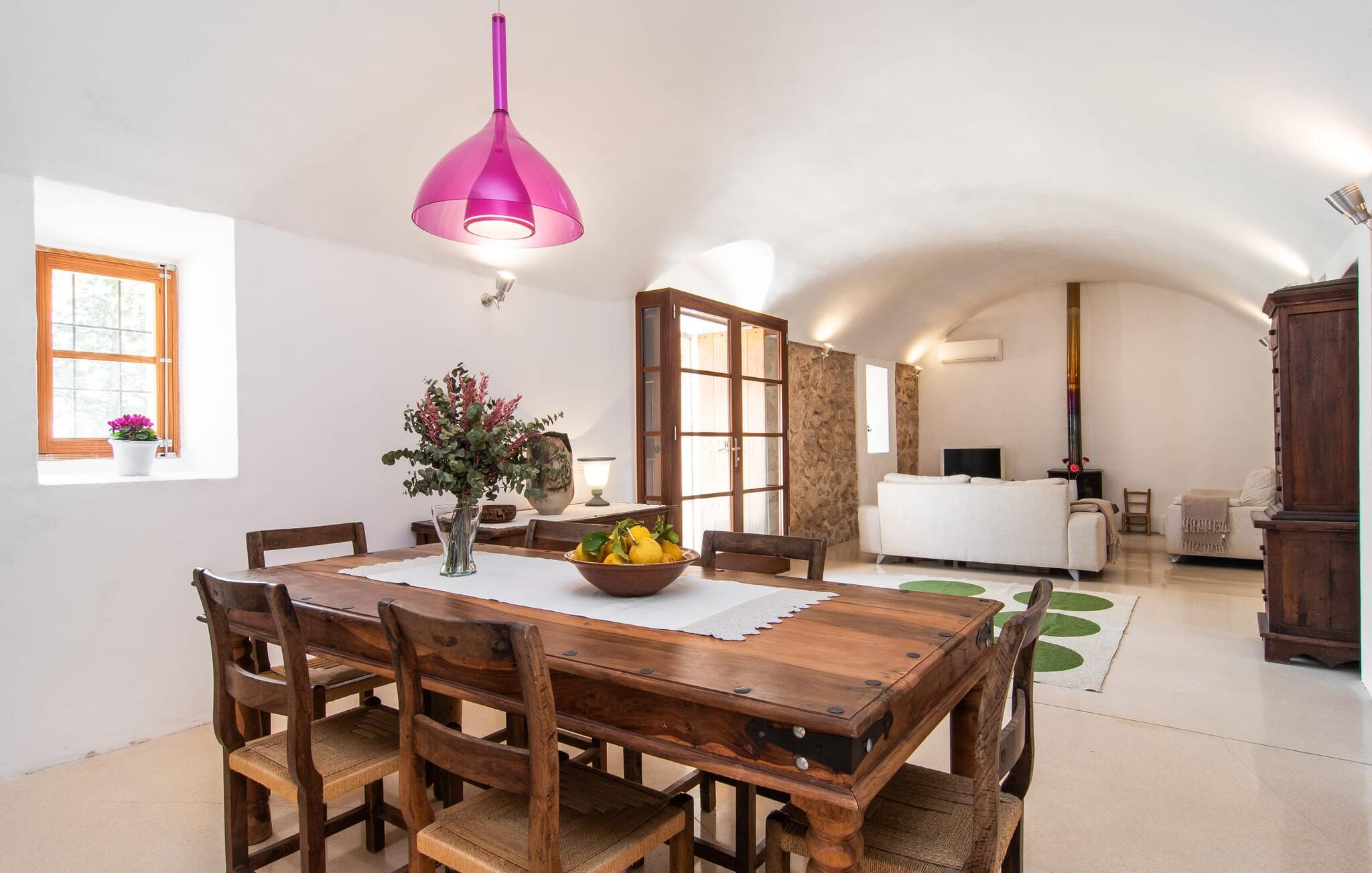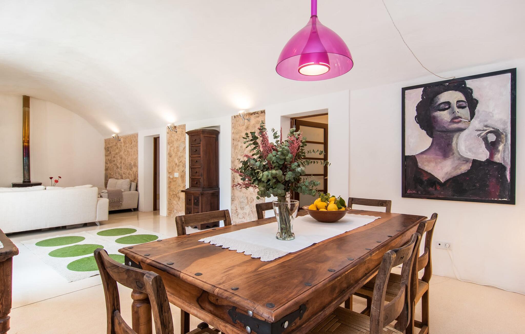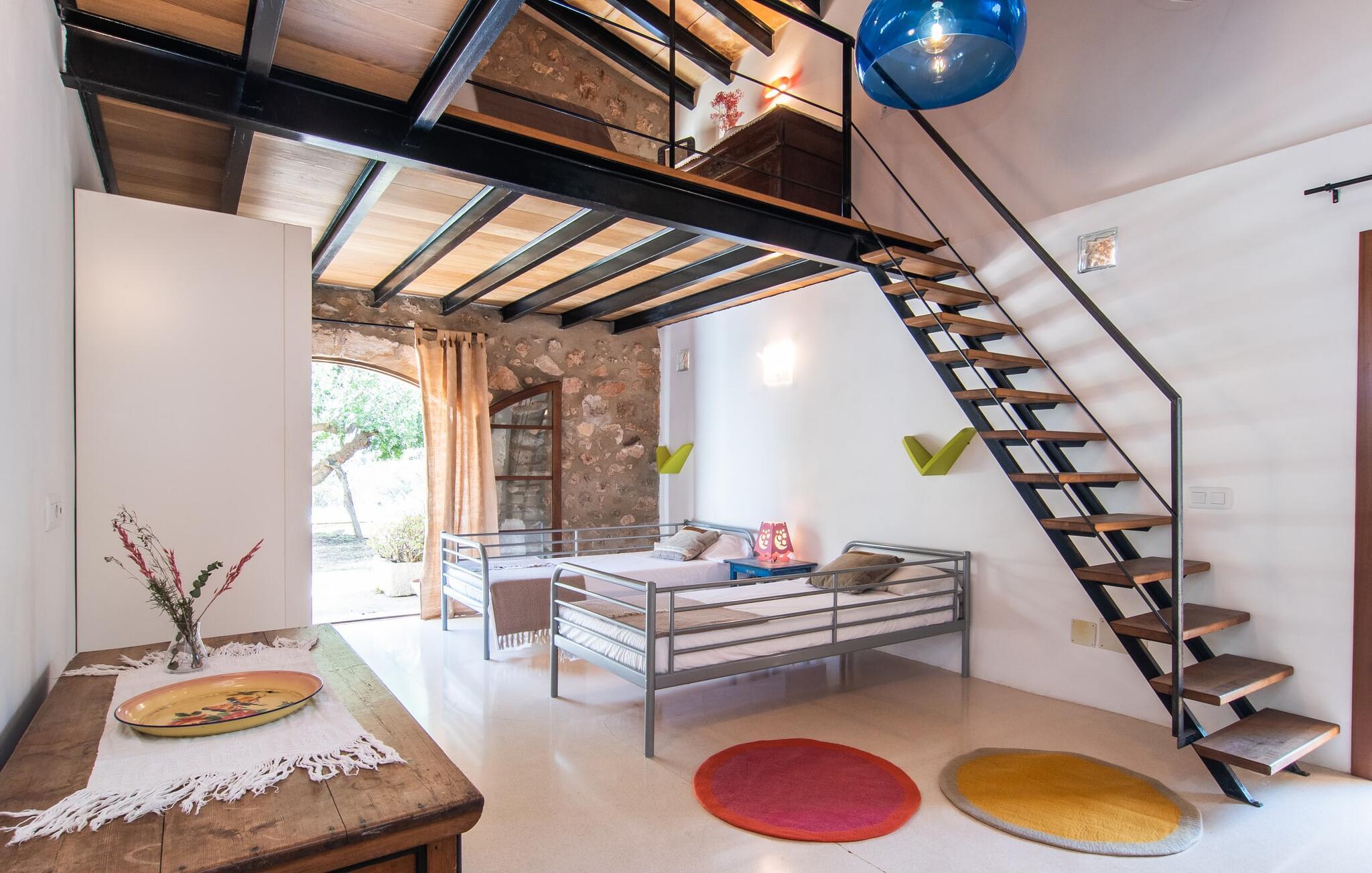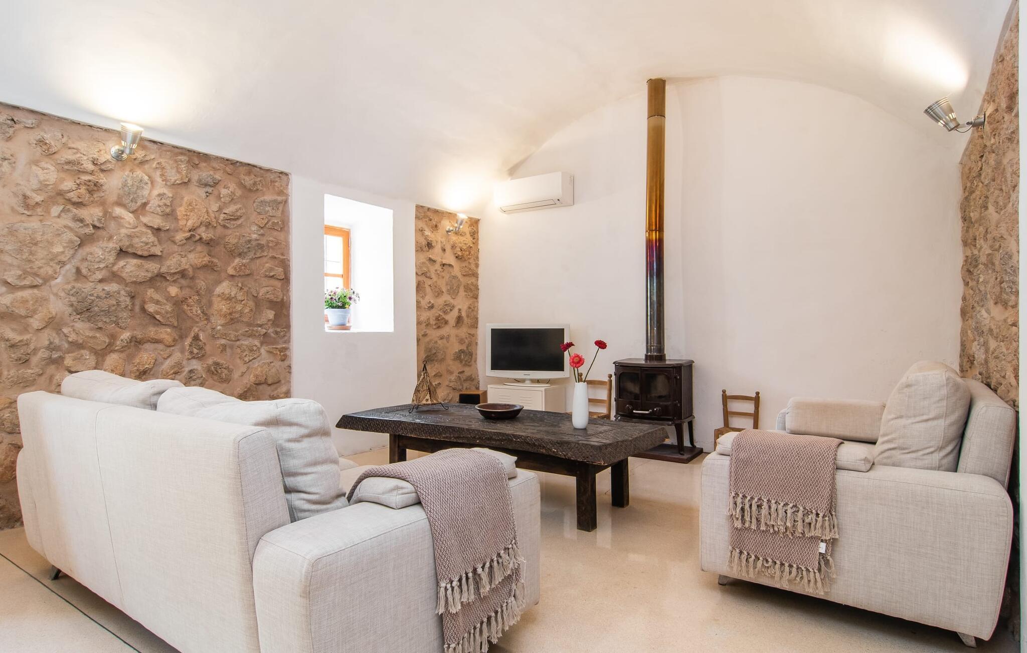 Hvordan forestiller I jer jeres ideelle ferie? Fred og ro? Natur og behageligt klima? Maksimal frihed og individuel rejse? Sport og kultur? Ingen masseturisme, men typisk autenticitet? Romantisk idyl og alligevel tæt på byen? Hvis ja, så vil vi med glæde byde jer og jeres familie velkommen til den ideelle villa "Alfaber". Den gamle, rustikke bygning blev omhyggeligt renoveret af ejerne, med ydermure lavet af stenbrud nænsomt bevaret. Her bor I i et dobbelthus, bevarer jeres privatliv og nyder jeres egen have og pool. Beskyttet af talrige værdige oliventræer og palmer snor sig frodige blomstrende planter rundt om muren. I dette smukke landskab finder I mange attraktive siddepladser med delikate jernborde og stole i træernes naturlige skygge. Følg solen, når den bevæger sig hen over himlen, og find et solrigt eller skyggefuldt sted, der passer bedst til tidspunktet på dagen. Mens I allerede forvarmer grillen, kan børnene stadig svømme i jeres ret store 14 meter store swimmingpool. Når maden er klar, hopper børnene hurtigt ud i udendørsbruseren, og aftensmaden kan serveres. Når I er færdig, er det måske det rigtige tidspunkt for en fodboldturnering sammen. Når de yngre gæster allerede er i seng, kan I nyde den dyrebare tid for to i landlig fred og ro med et glas god mallorcansk rødvin. Og når jeres aften langsomt slutter, så træd ind i det overraskende moderne interiør i den smukke villa. Et smukt åbent område med hvælvet loft og det fritlagte murværk afslører alderen på det totalrenoverede hus. Hvælvingen er malet lys hvid, og det funktionelle område forbinder opholds- og spiseafdelingen. Opholdsstuen har pejs, moderne fladskærms-tv og lyse sofaer. På den anden side af rummet er en spisestue med møbler i vintage-stil. En typisk spansk gyngestol og en topmoderne designerlampe understreger det overordnede vellykkede samspil mellem modernitet og tradition, som kan mærkes i hvert hjørne af huset. For eksempel i det fuldt udstyrede køkken, som samtidig er reduceret til det væsentlige. Dette hjem kræver ikke et køkken af høj kvalitet for at give jer den funktionalitet, I har brug for til en afslappende ferie. Det enkelt indrettede køkken byder på opvaskemaskine, stort køle-fryseskab, gaskomfur, kaffemaskine og meget mere. En lille passage fører til det store soveværelse i maisonette-stil. I det uformelle nederste område er der to enkeltsenge til børn. En metaltrappe med trætrin fører til galleriet, hvor der er et mastersoveområde med en king-size seng og et smukt skriveområde. Også her vil I blive overrasket over den spændende kombination af moderne og antikke elementer med et lidt alternativt præg. Takket være den åbne sovefløj er huset ideelt til en familie på fire, men også attraktivt for et par, der ikke ønsker at blive begrænset af pladsen. Apropos tiltrækningskraft: Det er essensen af denne region omkring den charmerende lille by Sant Llorenc - idylliske landskaber og meget god infrastruktur er karakteristiske træk ved den nordøstlige del af øen. I en by kun 1 km væk kan I gøre jeres daglige indkøb i supermarkederne, købe friskbagt varer fra bageriet og afslutte denne morgenudflugt med en "hurtig" Café Cortado i en af de caféer, der er populære blandt de lokale. Denne lille by ligger cirka halvvejs mellem Manacor og Artà - begge landsbyer er omkring 10 km væk. I den maleriske by Artà er der et smukt marked om tirsdagen, hvor I kan købe mallorcanske specialiteter og friske produkter til jeres grillaften eller bare nyde senere i det hyggelige opholdsområde efter jeres individuelle valg i denne smukke villa. Udover familievenlige bademuligheder byder de smukke lokale strande også på talrige vandsportsaktiviteter, som udover muligheden for cykel- og vandreture også kunne appellere til jer som sportsentusiast eller par. Valget er op til jer - og I træffer et godt valg, fordi I har booket villaen "Alfaber". Den fortryllende villa "Alfaber" er den perfekte destination for en familie med to børn, der drømmer om en afslappende ferie i et typisk mallorcansk landsted med en meget stor pool og en uberørt have. Denne moderne villa har en rolig beliggenhed nær boligområdet Sant Llorenc, hvor I finder forskellige indkøbsmuligheder samt caféer og restauranter. Der er smukke sandstrande, herunder Cala Bona eller Costa de los Pinos, omkring 10 km væk.