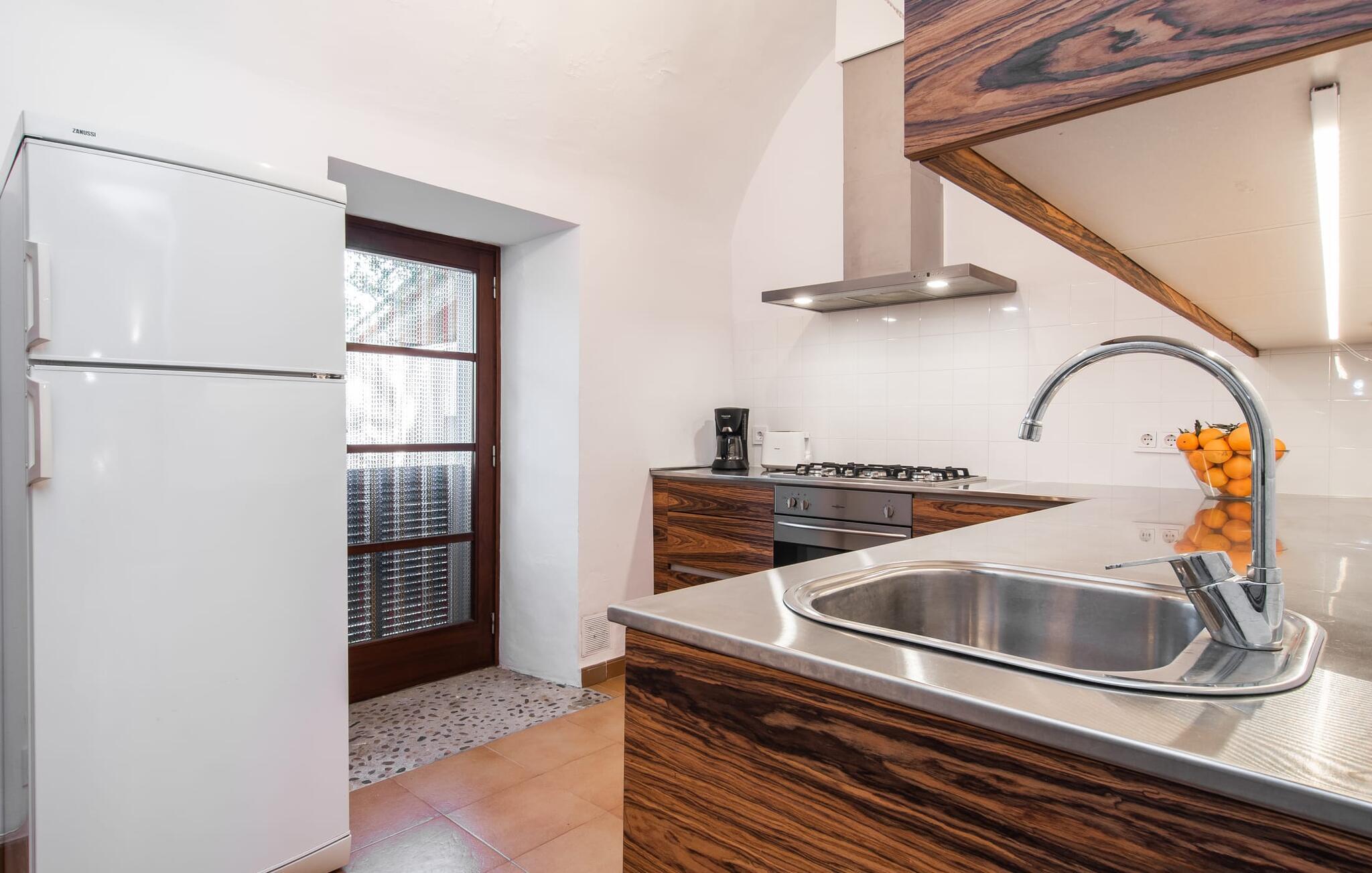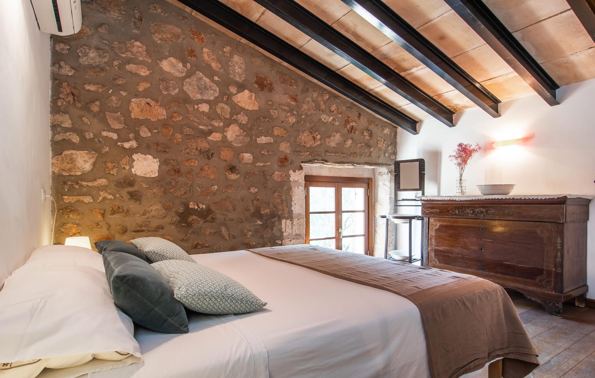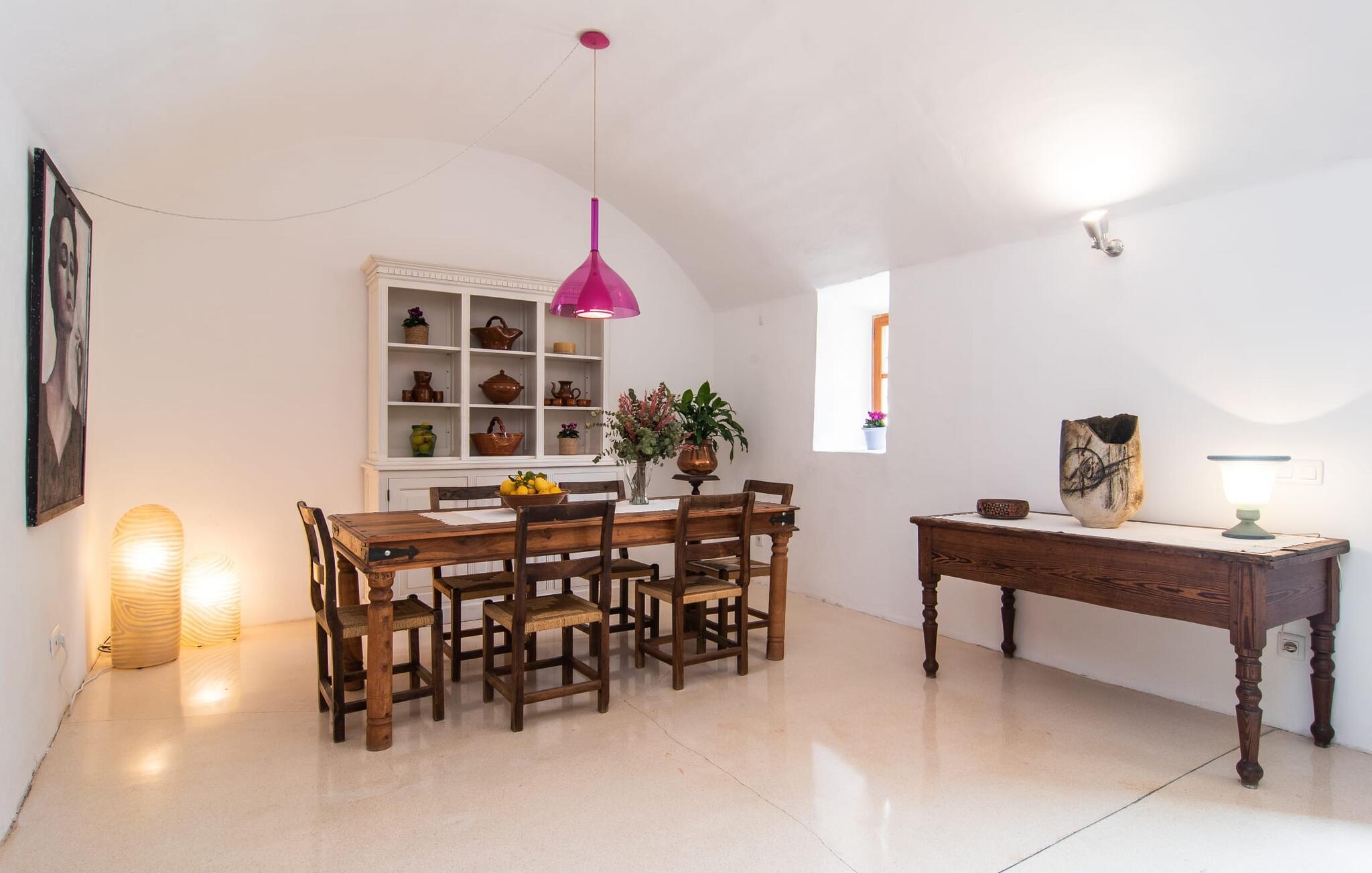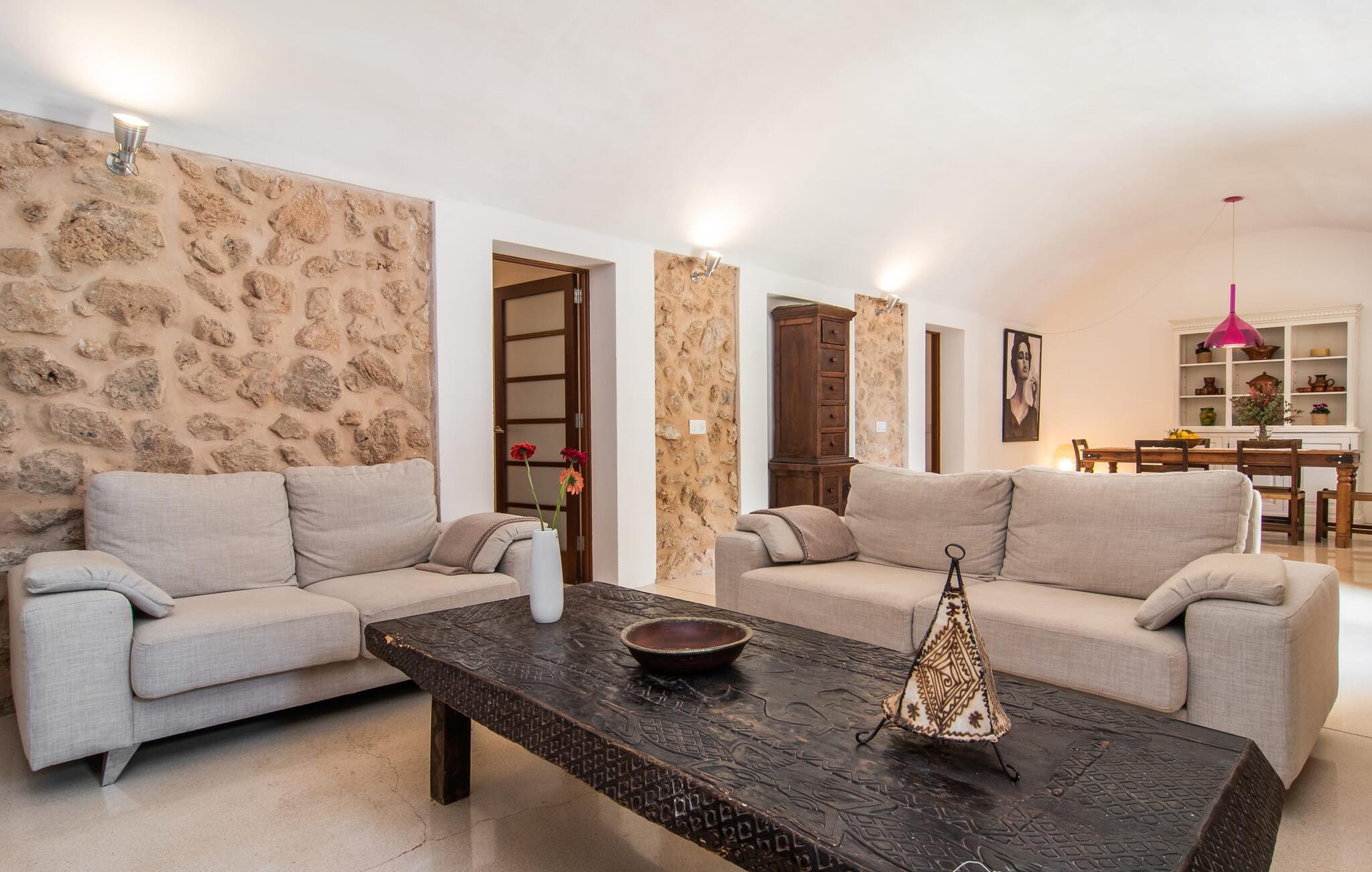 Hvordan forestiller I jer jeres ideelle ferie? Fred og ro? Natur og behageligt klima? Maksimal frihed og individuel rejse? Sport og kultur? Ingen masseturisme, men typisk autenticitet? Romantisk idyl og alligevel tæt på byen? Hvis ja, så vil vi med glæde byde jer og jeres familie velkommen til den ideelle villa "Alfaber". Den gamle, rustikke bygning blev omhyggeligt renoveret af ejerne, med ydermure lavet af stenbrud nænsomt bevaret. Her bor I i et dobbelthus, bevarer jeres privatliv og nyder jeres egen have og pool. Beskyttet af talrige værdige oliventræer og palmer snor sig frodige blomstrende planter rundt om muren. I dette smukke landskab finder I mange attraktive siddepladser med delikate jernborde og stole i træernes naturlige skygge. Følg solen, når den bevæger sig hen over himlen, og find et solrigt eller skyggefuldt sted, der passer bedst til tidspunktet på dagen. Mens I allerede forvarmer grillen, kan børnene stadig svømme i jeres ret store 14 meter store swimmingpool. Når maden er klar, hopper børnene hurtigt ud i udendørsbruseren, og aftensmaden kan serveres. Når I er færdig, er det måske det rigtige tidspunkt for en fodboldturnering sammen. Når de yngre gæster allerede er i seng, kan I nyde den dyrebare tid for to i landlig fred og ro med et glas god mallorcansk rødvin. Og når jeres aften langsomt slutter, så træd ind i det overraskende moderne interiør i den smukke villa. Et smukt åbent område med hvælvet loft og det fritlagte murværk afslører alderen på det totalrenoverede hus. Hvælvingen er malet lys hvid, og det funktionelle område forbinder opholds- og spiseafdelingen. Opholdsstuen har pejs, moderne fladskærms-tv og lyse sofaer. På den anden side af rummet er en spisestue med møbler i vintage-stil. En typisk spansk gyngestol og en topmoderne designerlampe understreger det overordnede vellykkede samspil mellem modernitet og tradition, som kan mærkes i hvert hjørne af huset. For eksempel i det fuldt udstyrede køkken, som samtidig er reduceret til det væsentlige. Dette hjem kræver ikke et køkken af høj kvalitet for at give jer den funktionalitet, I har brug for til en afslappende ferie. Det enkelt indrettede køkken byder på opvaskemaskine, stort køle-fryseskab, gaskomfur, kaffemaskine og meget mere. En lille passage fører til det store soveværelse i maisonette-stil. I det uformelle nederste område er der to enkeltsenge til børn. En metaltrappe med trætrin fører til galleriet, hvor der er et mastersoveområde med en king-size seng og et smukt skriveområde. Også her vil I blive overrasket over den spændende kombination af moderne og antikke elementer med et lidt alternativt præg. Takket være den åbne sovefløj er huset ideelt til en familie på fire, men også attraktivt for et par, der ikke ønsker at blive begrænset af pladsen. Apropos tiltrækningskraft: Det er essensen af denne region omkring den charmerende lille by Sant Llorenc - idylliske landskaber og meget god infrastruktur er karakteristiske træk ved den nordøstlige del af øen. I en by kun 1 km væk kan I gøre jeres daglige indkøb i supermarkederne, købe friskbagt varer fra bageriet og afslutte denne morgenudflugt med en "hurtig" Café Cortado i en af de caféer, der er populære blandt de lokale. Denne lille by ligger cirka halvvejs mellem Manacor og Artà - begge landsbyer er omkring 10 km væk. I den maleriske by Artà er der et smukt marked om tirsdagen, hvor I kan købe mallorcanske specialiteter og friske produkter til jeres grillaften eller bare nyde senere i det hyggelige opholdsområde efter jeres individuelle valg i denne smukke villa. Udover familievenlige bademuligheder byder de smukke lokale strande også på talrige vandsportsaktiviteter, som udover muligheden for cykel- og vandreture også kunne appellere til jer som sportsentusiast eller par. Valget er op til jer - og I træffer et godt valg, fordi I har booket villaen "Alfaber". Den fortryllende villa "Alfaber" er den perfekte destination for en familie med to børn, der drømmer om en afslappende ferie i et typisk mallorcansk landsted med en meget stor pool og en uberørt have. Denne moderne villa har en rolig beliggenhed nær boligområdet Sant Llorenc, hvor I finder forskellige indkøbsmuligheder samt caféer og restauranter. Der er smukke sandstrande, herunder Cala Bona eller Costa de los Pinos, omkring 10 km væk.