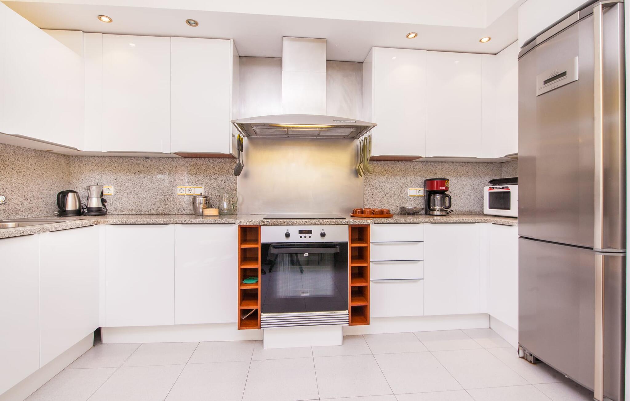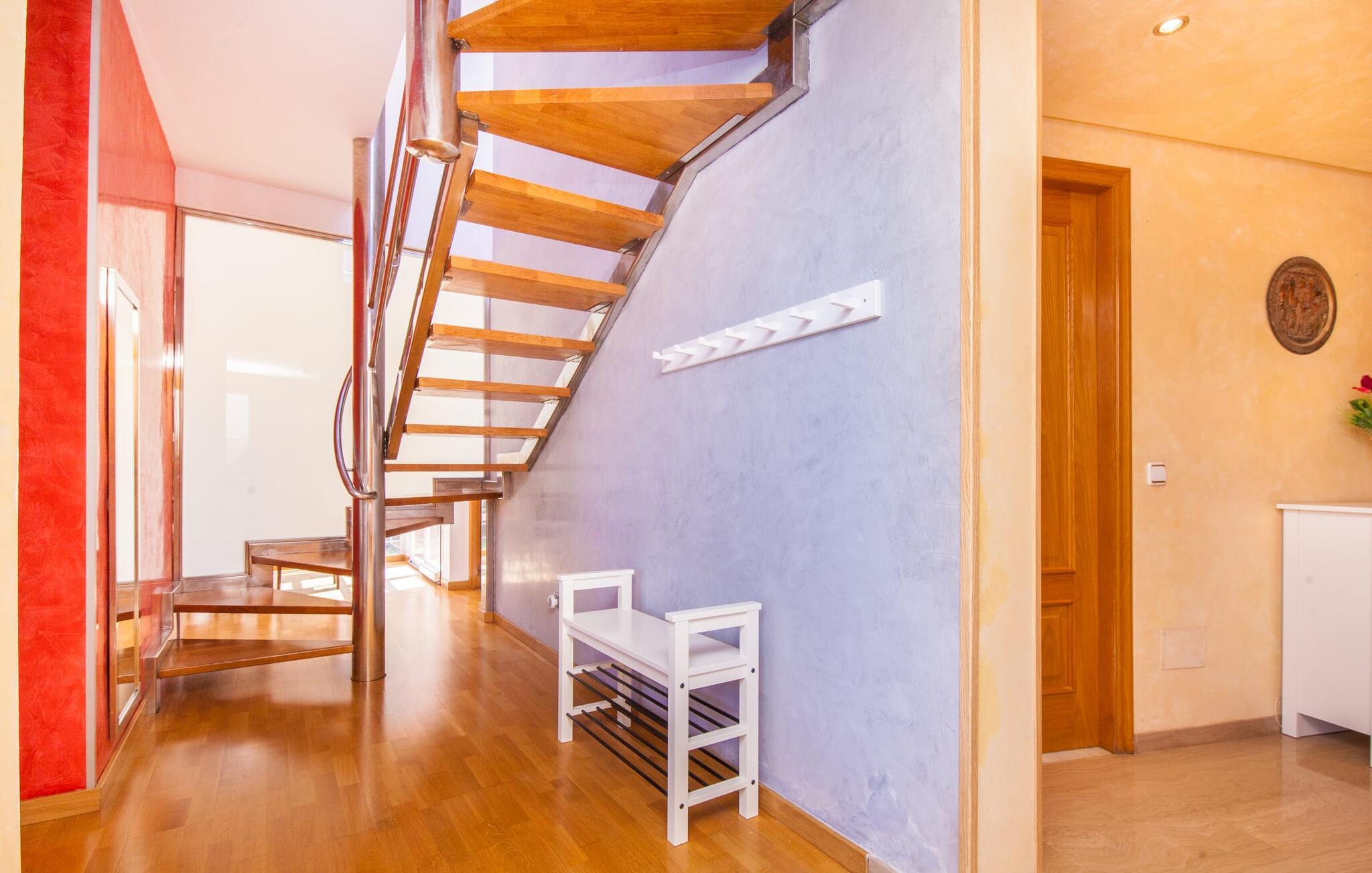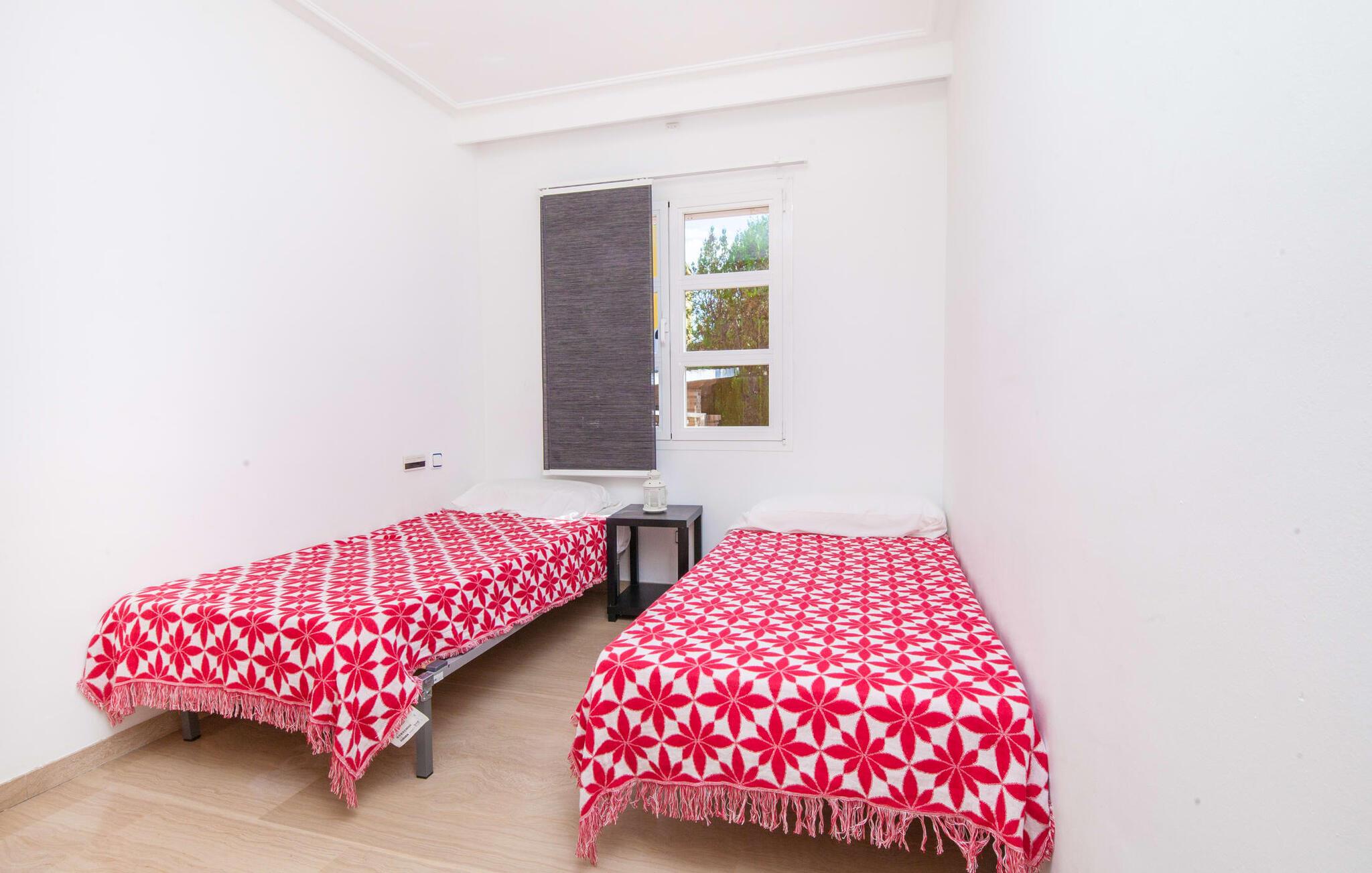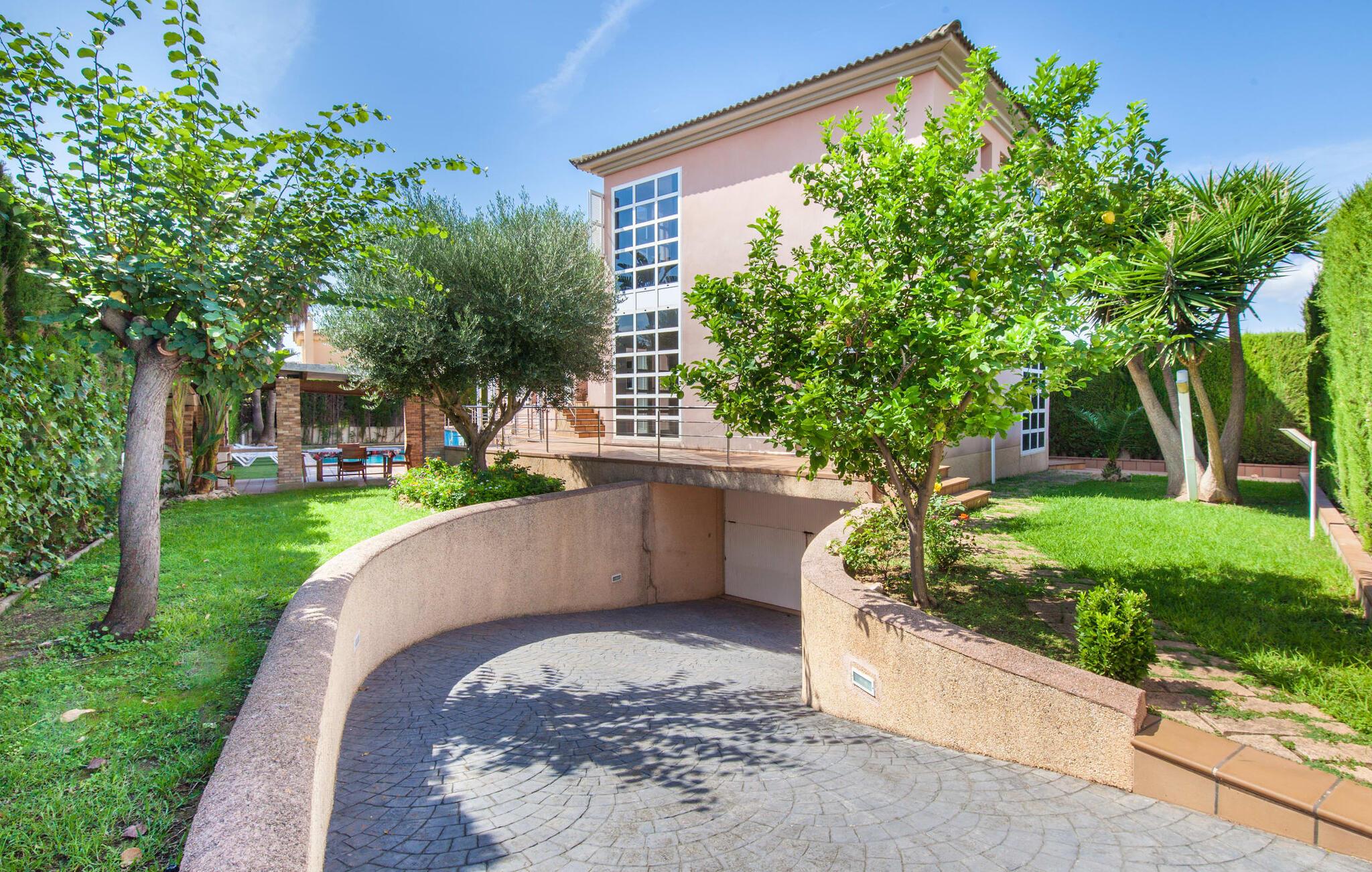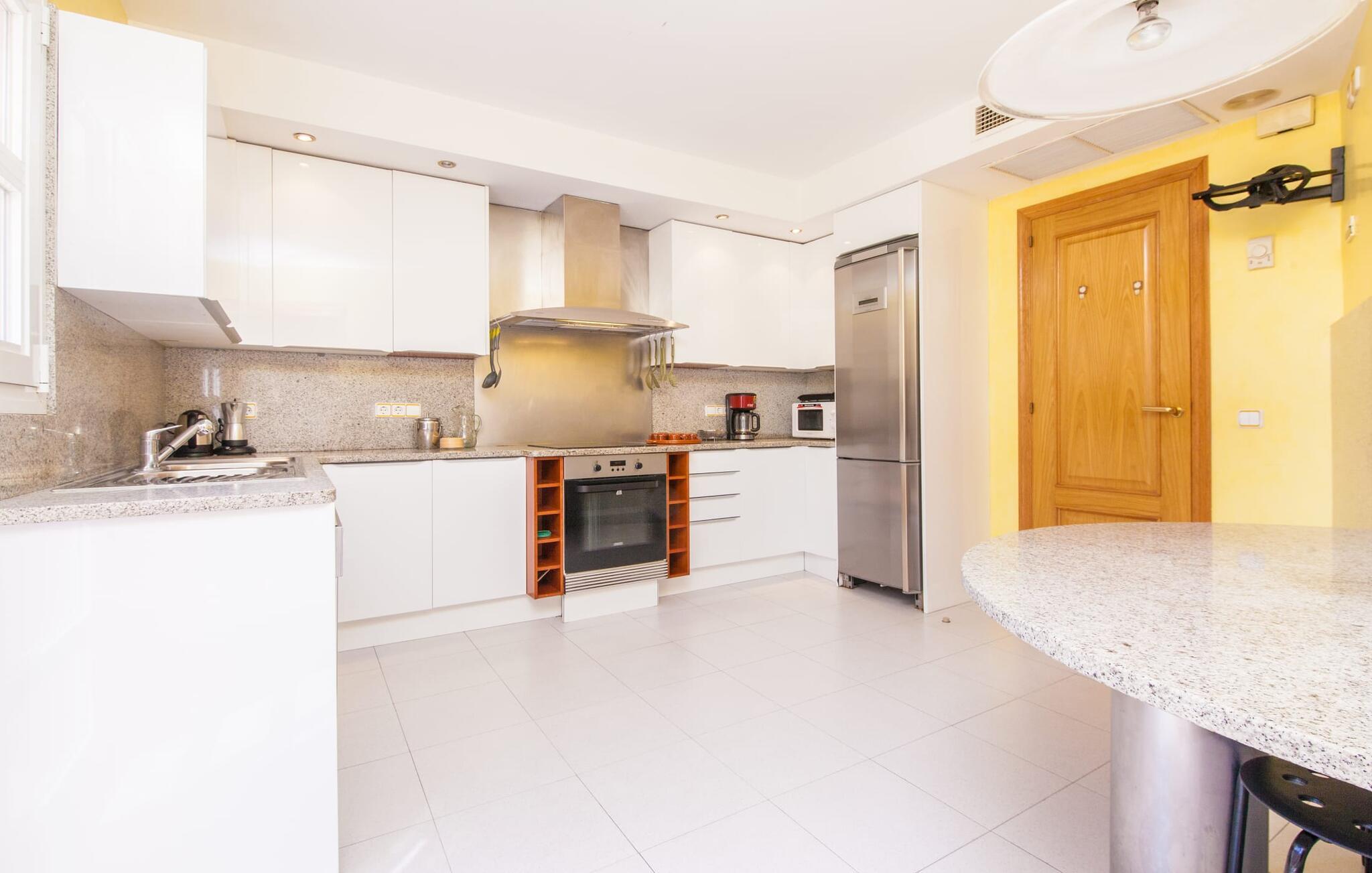 Alfabia tilbyder det perfekte tilflugtssted efter en lang gåtur gennem Palmas travle gader. En høj hæk, der garanterer privatliv, en stor pool med etageret terrasse omgivet af velplejet kunstgræs - det handler om afslapning. Lige ved siden af poolen venter en hyggelig, overdækket terrasse på, at I kan puste lidt liv i den. Mens I stadig er i humør til en forfriskende svømmetur i udendørsbruseren, kan andre sultne besøgende få travlt med at tænde op i grillen. Frisk fisk og vin – hvad mere har I brug for? Og hvis I stadig vil have mere underholdning, kan I prøve et spil dart om aftenen. Over poolen er villaen vært for endnu en tagterrasse med vidunderlig udsigt over de omkringliggende tage og bjerge i det fjerne. En lille disk, smarte kunstrattanmøbler, masser af plads og en fantastisk udsigt - dette er klart det perfekte sted til et udendørs møde. En asfalteret indkørsel fører direkte til villaen, og der er masser af parkeringspladser på gaden foran huset. I kan tilbringe hyggelige timer i flok i villaens åbne stue/spisestue. På den ene side en sofa, på den anden et spisebord med en sofagruppe; Kort sagt: et udvalg af sæder gør det nemt at tilbringe tid sammen. Individuelle farveaccenter, diskret dekoration og store vinduer skaber en behagelig atmosfære i dette hyggelige rum. Vil I undgå solen eller se jeres yndlingsserie, bliver I passet godt på foran fladskærms-tv'et eller den kunstige pejs. I det næste værelse køkkenet: fuldt udstyret, lyst og frem for alt med et stort køleskab til drinks, morgenmad osv. Indretningen af soveværelserne kunne være et rigtigt knastpunkt i dette hus. Hvem vil holde deres nerver og få deluxe værelse på første sal? Walk-in closets, fladskærms-tv og eget badeværelse med udgang til tagterrassen – det er vigtigt, at den heldige vinder ikke glemmer at forlade sit værelse i ny og næ. I alt har huset fire soveværelser med dobbeltsenge (herunder tre dobbeltværelser), et enkelt soveværelse og tre badeværelser. "Alfabia", nordøst for Palma, er et godt udgangspunkt for adskillige ferieaktiviteter: sightseeing, prøve tapas i havnen, shoppe souvenirs, tilbringe dage på stranden. Kreative mennesker kan besøge Sound Museum i Marratxí eller Mallorcas største kunsthåndværksudstilling, Feria del Fang, en gang om året om foråret. På grund af den centrale beliggenhed i byen kan der af og til høres trafikstøj. Men takket være den gode infrastruktur er det nemt at nå andre dele af øen. Hvad med en dagsvandring i Tramuntana-bjergene, for eksempel? Familier besøger ofte Aqualand i El Arenal eller de utrolige strande i nærheden. Ciudad Jardin ligger kun 8 km væk, og andre smukke bugter er ikke meget længere væk. Den moderne villa "Alfabia" ligger godt 7 km nordøst for Palma de Mallorca, i det populære område Pont d'Inca Nou i Marratxí kommune. Øens hovedstad ligger kun 7 km væk, og den nærmeste metrostation ligger kun få minutters gang væk. Palma Lufthavn kan nås på ingen tid, og den smukke strandby Ciudad Jardin ligger kun 8 km væk i bil.