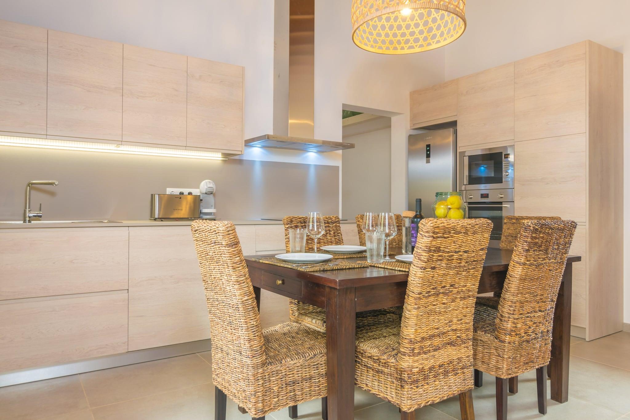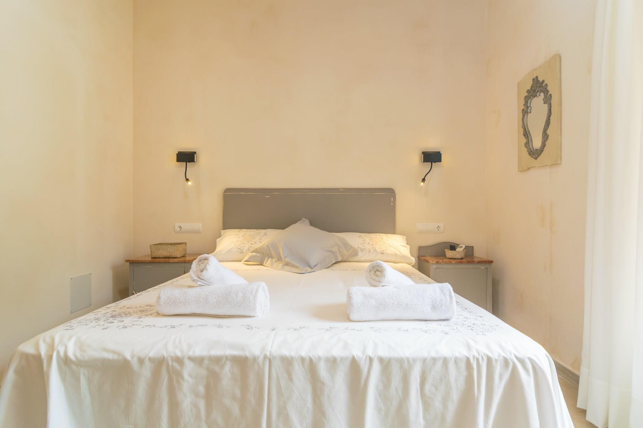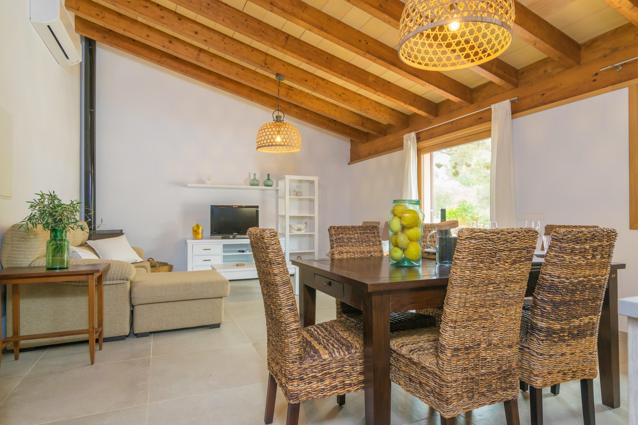Udendørs afslapning venter Start dine morgener omgivet af landskabsudsigt på den møblerede terrasse, hvor en privat 6x3m pool inviterer dig til at køle af under middelhavssolen. Fire liggestole giver plads til dovne eftermiddage, mens den skyggefulde terrasse er perfekt til en al fresco morgenmad eller en grillmiddag under stjernerne. Uanset om du svømmer, solbader eller nyder stille øjeblikke med en bog, bringer dette udendørsområde komfort og ro sammen. Varm og moderne livsstil Træd indenfor for at finde en indbydende åben planløsning, der blander stuen, spisepladsen og fuldt udstyret køkken med induktionskogeplader. Slap af på sofaen med satellit-tv og aircondition, eller lav et frisk måltid til at nyde ved poolen. De to soveværelser med dobbeltsenge har begge aircondition, loftsventilatorer og adgang til terrasse, hvilket sikrer afslappende nætter. Et badeværelse med bruser og et vaskerum med vaskemaskine, strygejern og bræt tilføjer praktisk til længere ophold. Familier er også godt indkvarteret med en barneseng og høj stol forudsat. Central Island bekvemmelighed Denne villa ligger kun 4,6 km fra Algaida og placerer dig tæt på autentiske mallorcanske restauranter og vigtige butikker, mens den stadig tilbyder hurtig adgang til kysten. Tilbring dagen på Ca'n Pastilla-stranden (16 km), udforsk uberørte bugter såsom Es Trenc, eller tag tet på Golf Son Gual i nærheden. Palma er inden for rækkevidde for kulturelle udflugter og forskellige spisesteder.