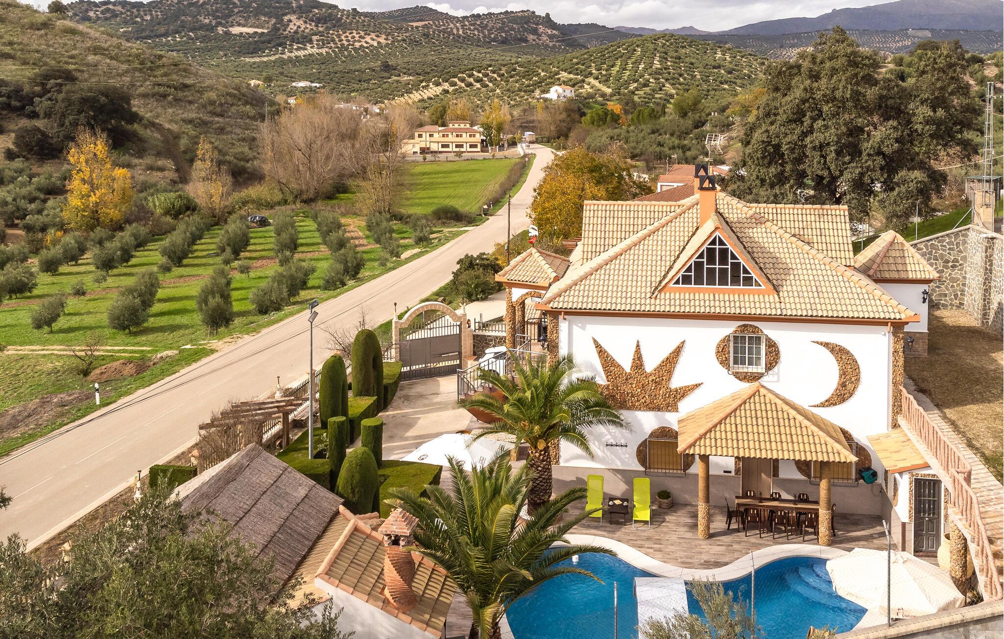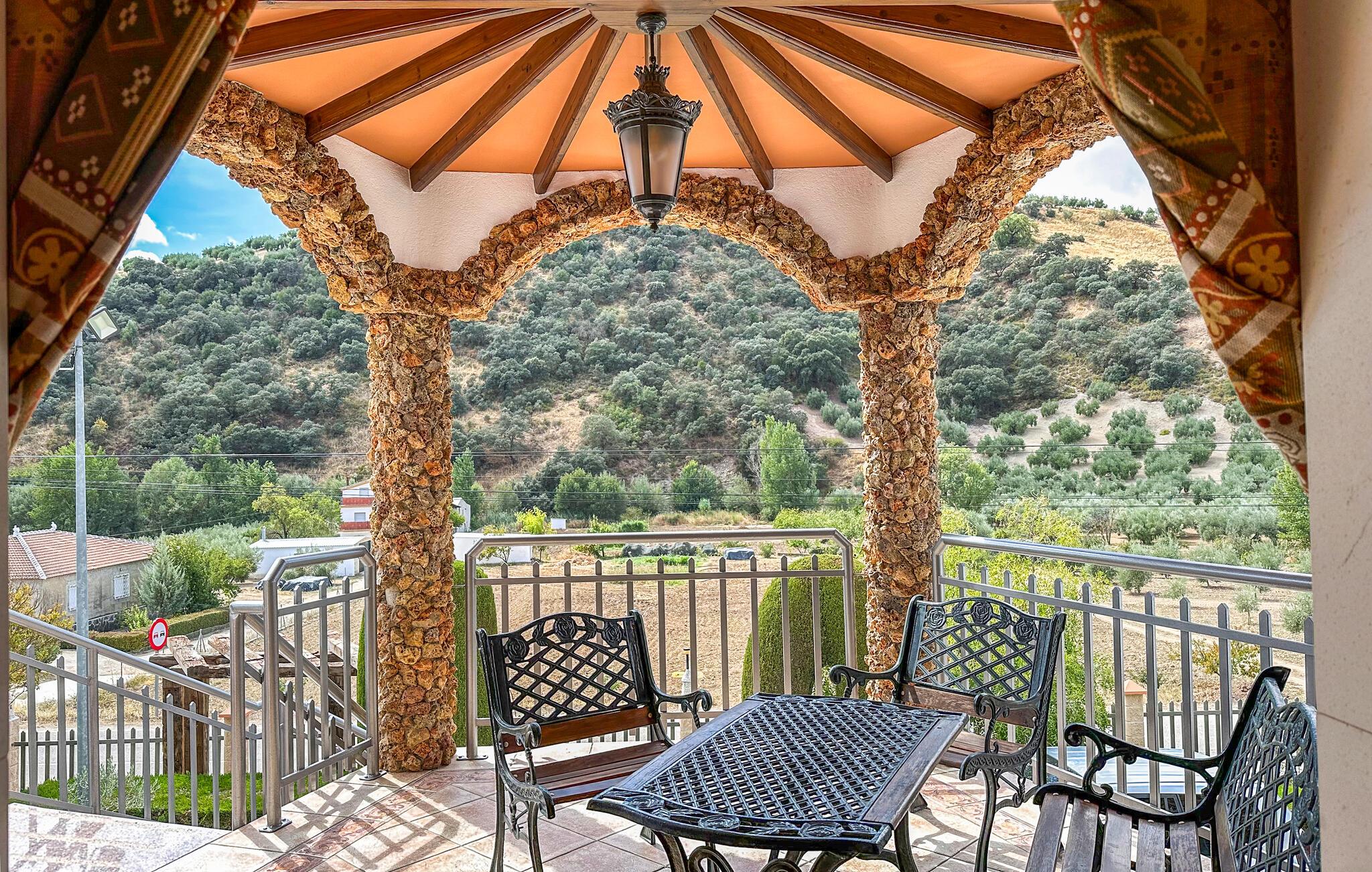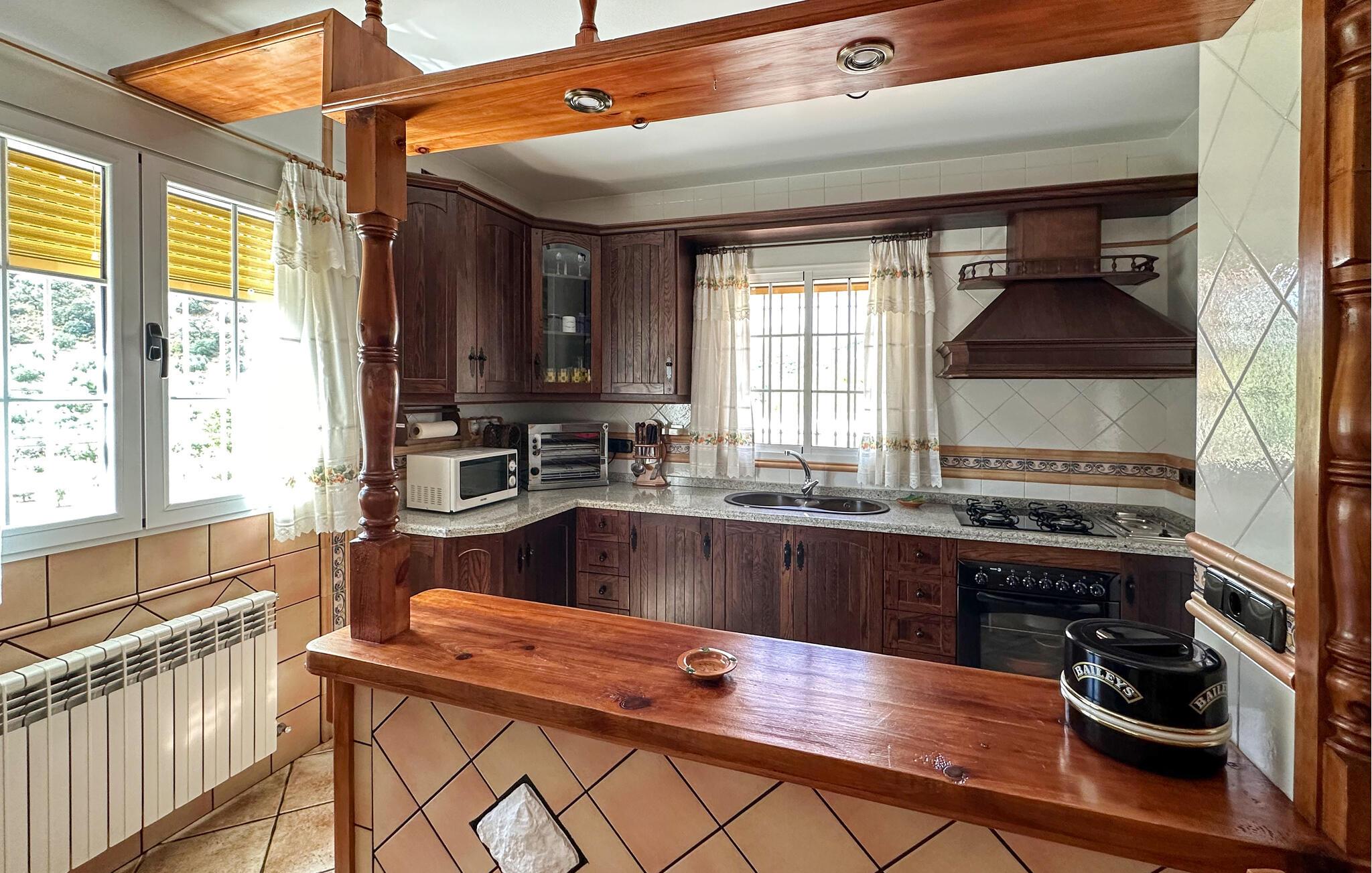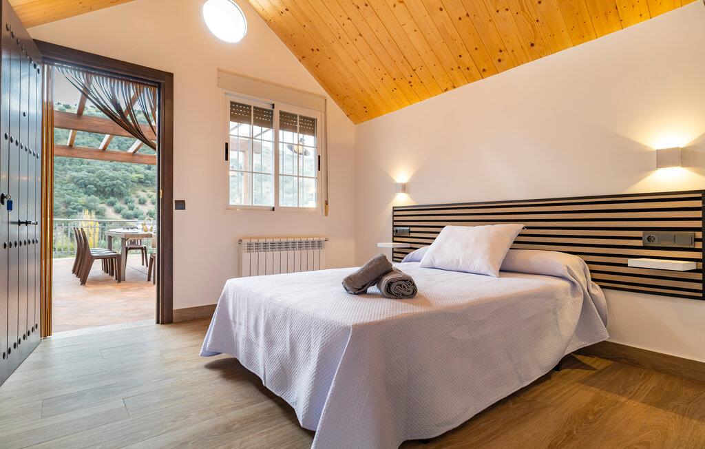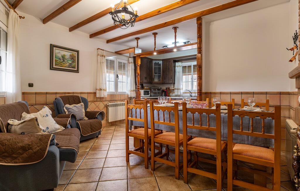 Begynd dagen i jeres feriehus nær Algarinejo med morgenmad på den overdækkede terrasse, mens I nyder udsigten over de omkringliggende bakker og olivenlunde. Det fuldt udstyrede køkken giver jer alt, hvad I behøver for at tilberede lækre måltider, som I kan nyde sammen ved det indbydende spisebord. Den rummelige opholdsstue med træbjælkeloft og hyggelig sofa er perfekt til afslappede stunder, hvad enten det er med en god bog eller et spil brætspil.