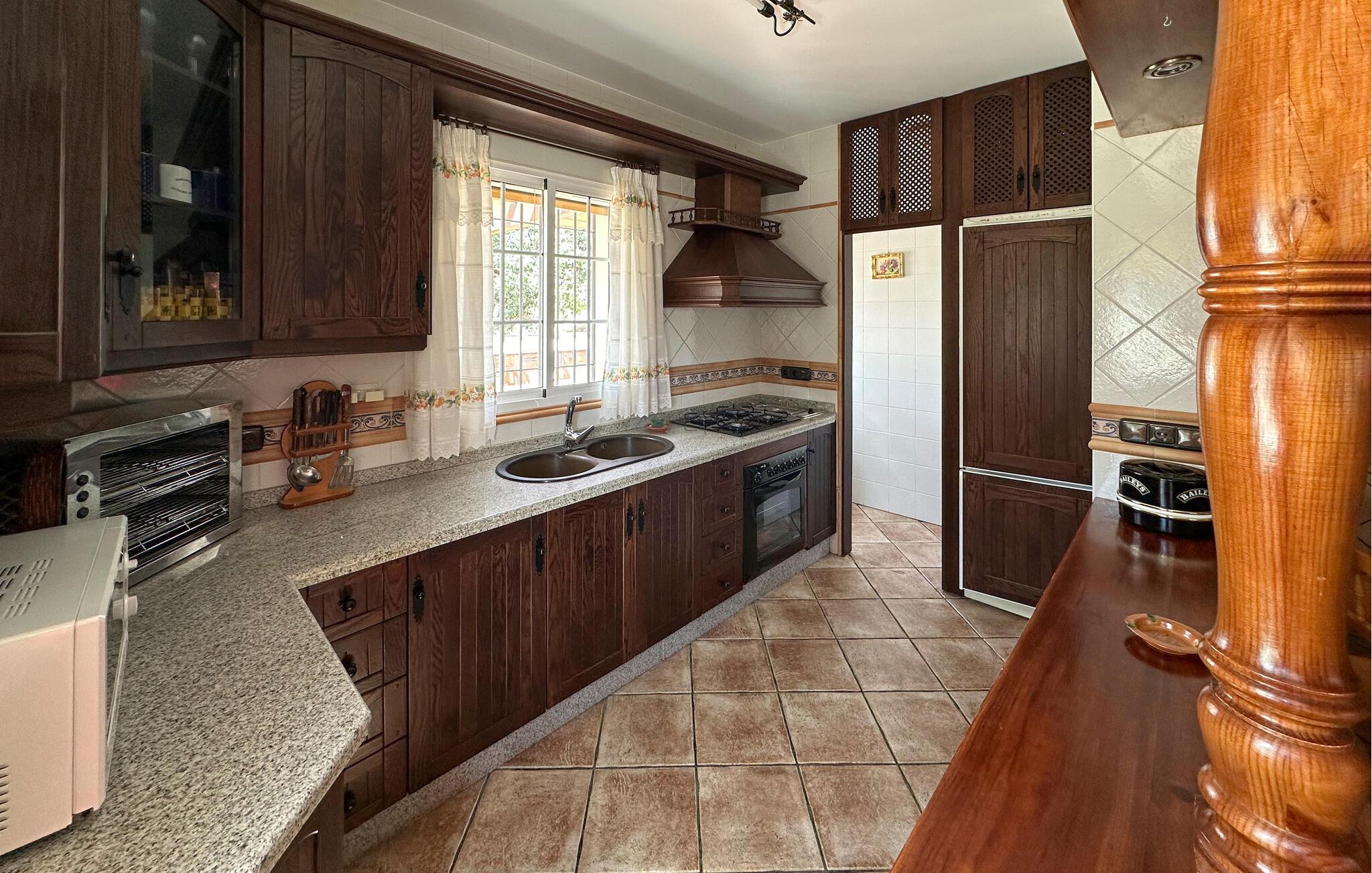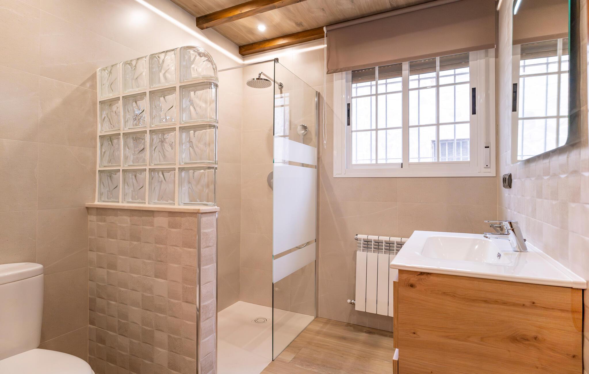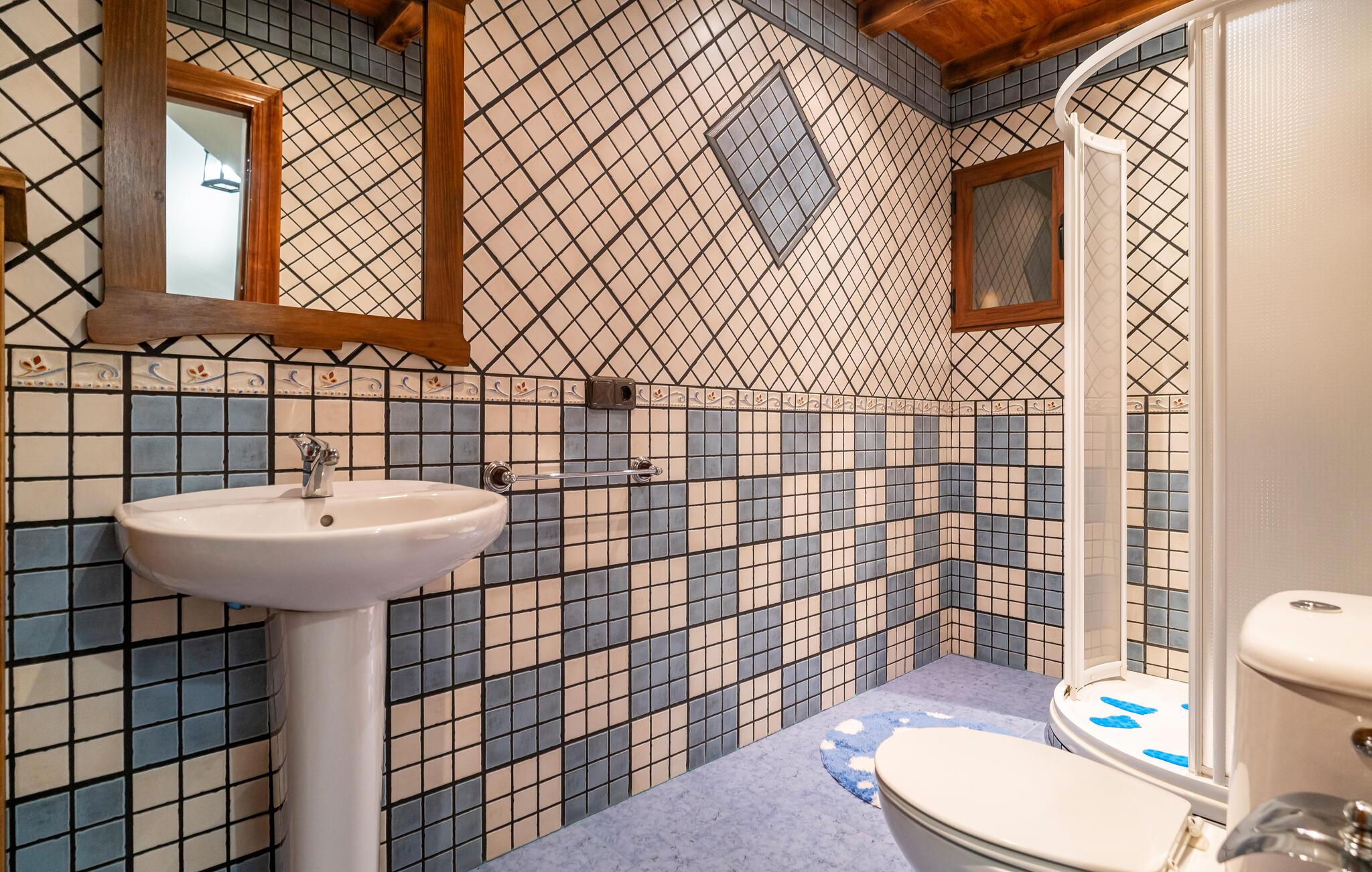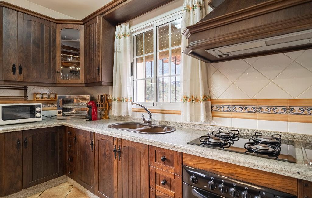 Begynd dagen i jeres feriehus nær Algarinejo med morgenmad på den overdækkede terrasse, mens I nyder udsigten over de omkringliggende bakker og olivenlunde. Det fuldt udstyrede køkken giver jer alt, hvad I behøver for at tilberede lækre måltider, som I kan nyde sammen ved det indbydende spisebord. Den rummelige opholdsstue med træbjælkeloft og hyggelig sofa er perfekt til afslappede stunder, hvad enten det er med en god bog eller et spil brætspil.