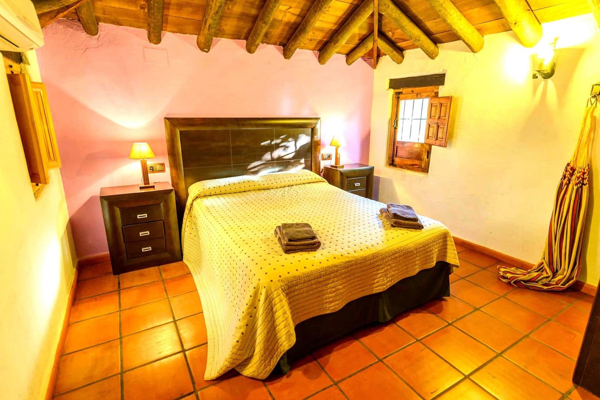 Denne landlige bondegård ligger på bredden af en fiskefyldt flod, beliggende i et frodigt, grønt område. For over et århundrede siden fungerede det som kro for rejsende langs "Via pecuária a Priego de Loja" til Algarinejo. Oprindeligt kendt som "La Ventilla", er gården en unik cortijo, kendetegnet ved dens tykke stenvægge og rummelige interiører. I modsætning til typiske cortijos bevarer denne ejendom sin historiske charme, mens den tilbyder moderne bekvemmeligheder. Under restaureringen blev der opdaget en hule inde i klippen, hvor de første beboere af gården engang boede. I dag blander ejendommen traditionelle funktioner med moderne bekvemmeligheder og tilbyder en ekstraordinær oplevelse. Interiøret er en levende blanding af farver, der afspejler fortiden og samtidig giver et hyggeligt tilflugtssted. De tykke mure, kombineret med de beroligende lyde af rindende vand, skaber en fredelig atmosfære perfekt til afslapning. Benyt lejligheden til at udforske væggene, hvor du kan finde dyre- og plantefossiler, hvilket bidrager til den historiske tiltrækning ved denne unikke bondegård. Uanset om du søger ro eller en forbindelse til fortiden, tilbyder dette landlige tilflugtssted en dybt fordybende oplevelse i rige naturlige omgivelser.