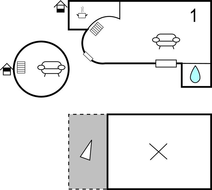 Opholdsstue - 1 Soveplads. (Enkeltseng(e)). 2 Sovepladser. (Grand Lit).