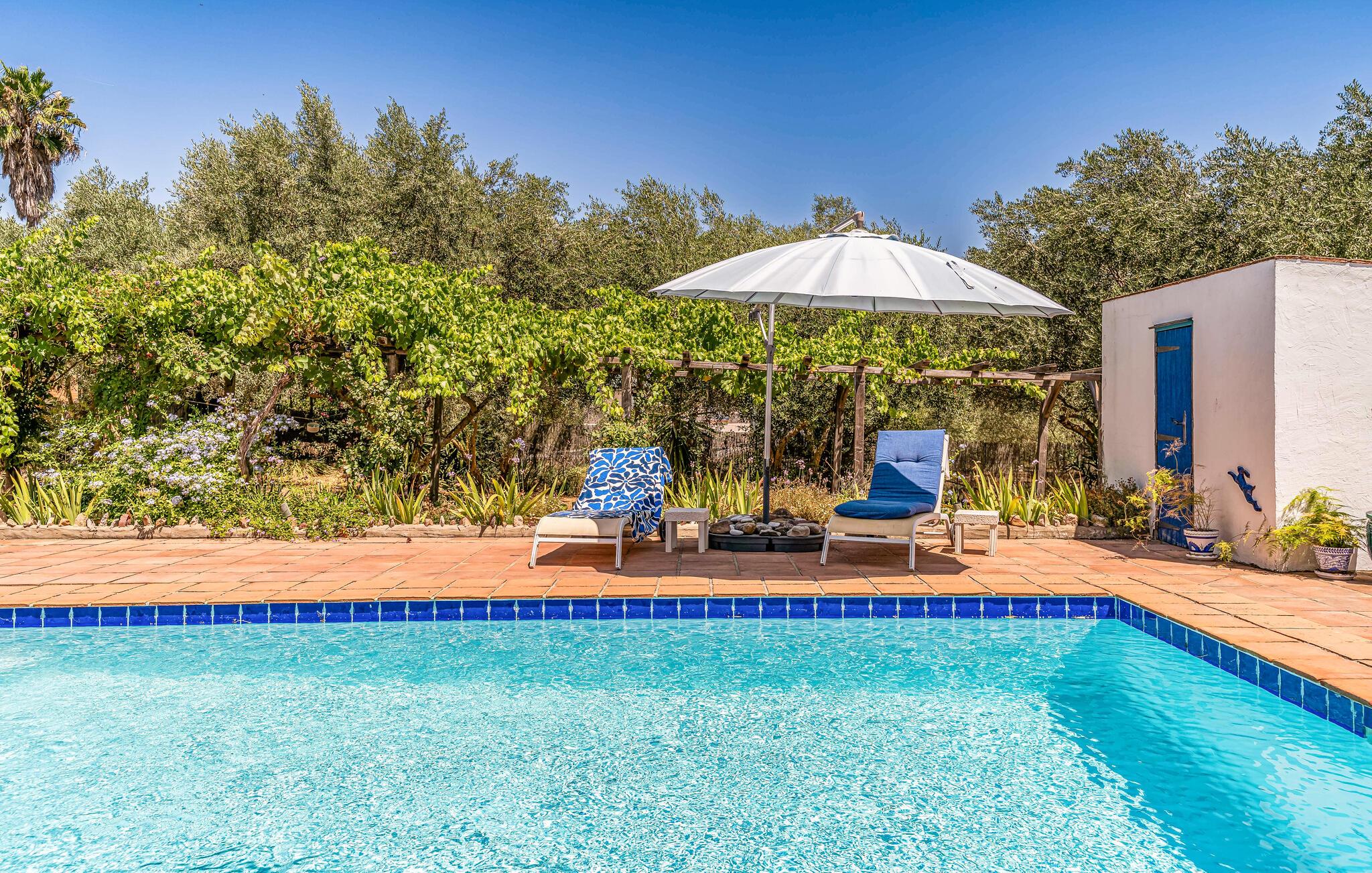 Nyd en betagende udsigt fra dette komfortable feriehus med pool. Dette indbydende hus byder jer velkommen til en fantastisk beliggenhed midt i malerisk landskab. I værelserne, med smukke klinkegulve og synlige loftsbjælker, og møbleret i moderne landlig stil, kan I virkelig nyde jeres tid sammen. Vågn op til udsigt over landskabet og glæd jer til hyggelige aftener ved pejsen. Tilbring dejlige timer på terrassen, solbad, læs i skyggen og forfrisk jer i poolen. Nyd lune sommeraftener med kolde drikke udendørs mod en magisk baggrund. Tag en slentretur gennem den hvide landsby, nyd duften af appelsinblomster, og nyd friskbagt kage på en af de traditionelle caféer. Bestig de omkringliggende bjerge på en guidet vandretur eller udforsk området på cykel; den panoramaudsigt over olivenlunde og kalkstensklipper vil forbløffe jer.
