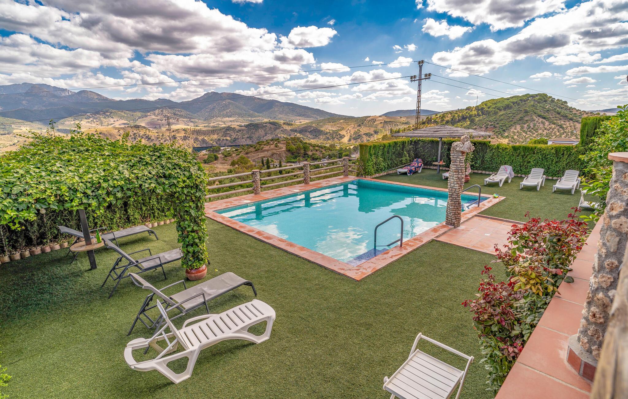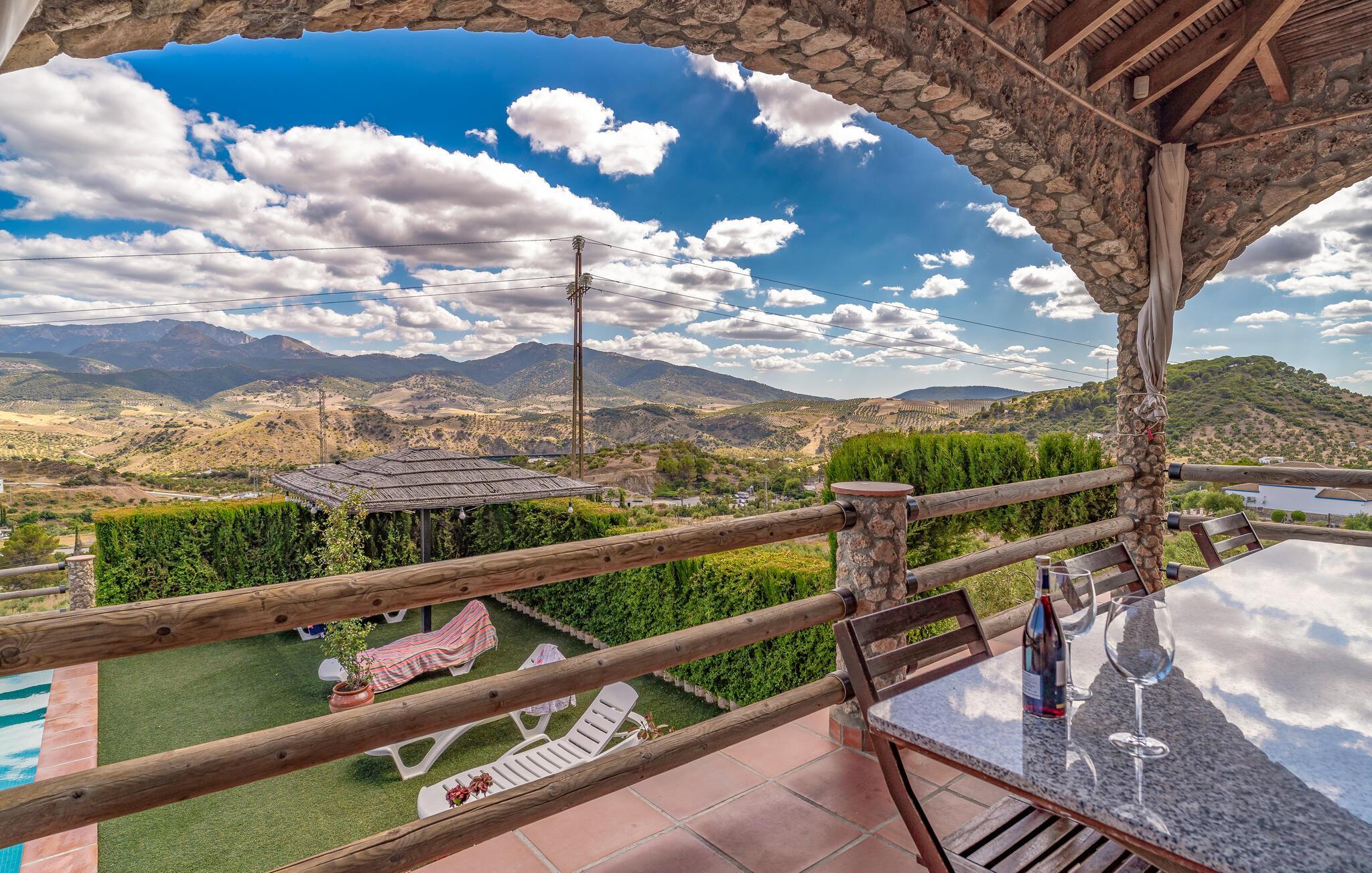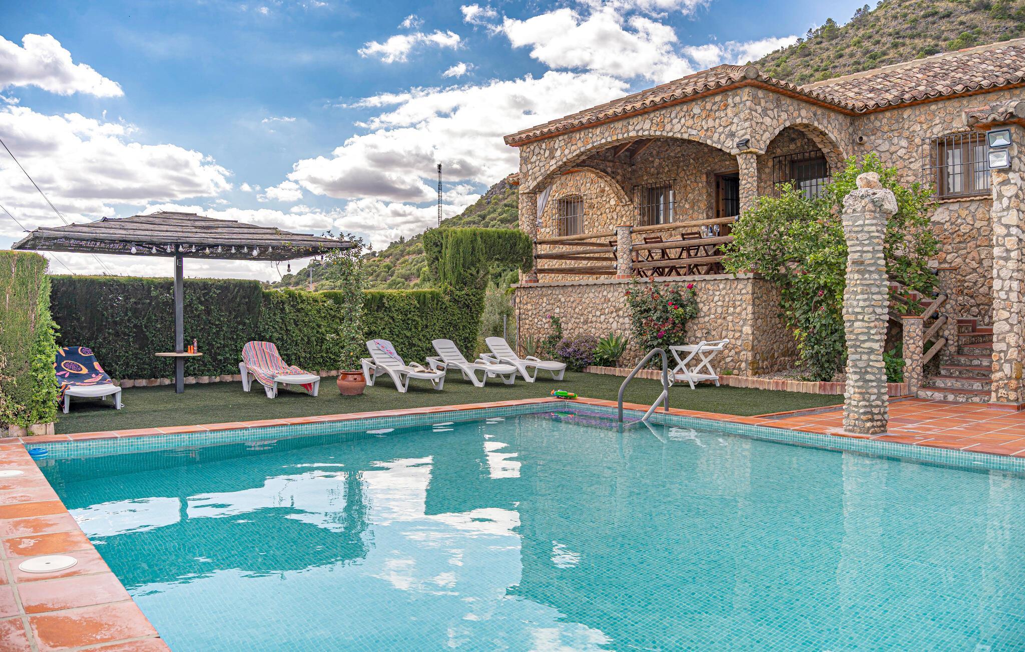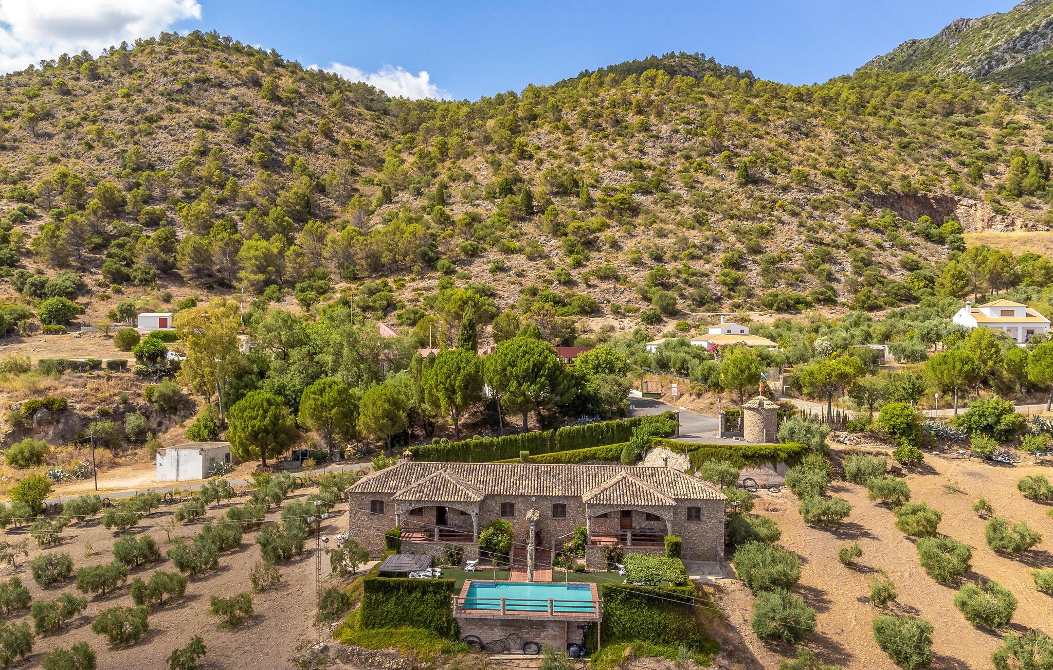 Dette traditionelle og store stenhus er omgivet af det bjergrige landskab i det centrale Andalusien og har en pool og udsigt.