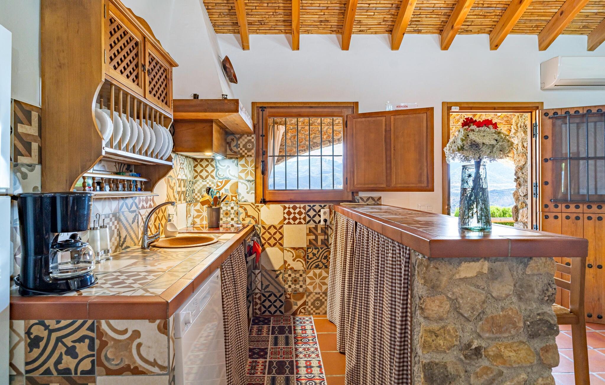 En unik ferie midt i den andalusiske natur venter jer i dette charmerende stenhus. Huset er indrettet med traditionelle detaljer og giver jer to separate boligenheder - optimal til vennefamilier, der rejser sammen, men ønsker at bevare deres privatliv. Interiøret har en hyggelig, rustik atmosfære, der lægger op til at nyde livet og have det rart. Nyd afslappende stunder på de to overdækkede terrasser eller ved poolen, som giver jer en betagende udsigt over det omkringliggende landskab.