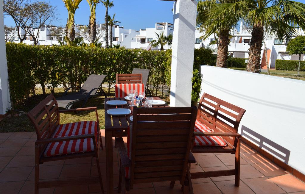 Denne smukke og hyggelige lejlighed, med fælles pool, ligger i stueetagen i Condado de Alhama-komplekset i Murcia.