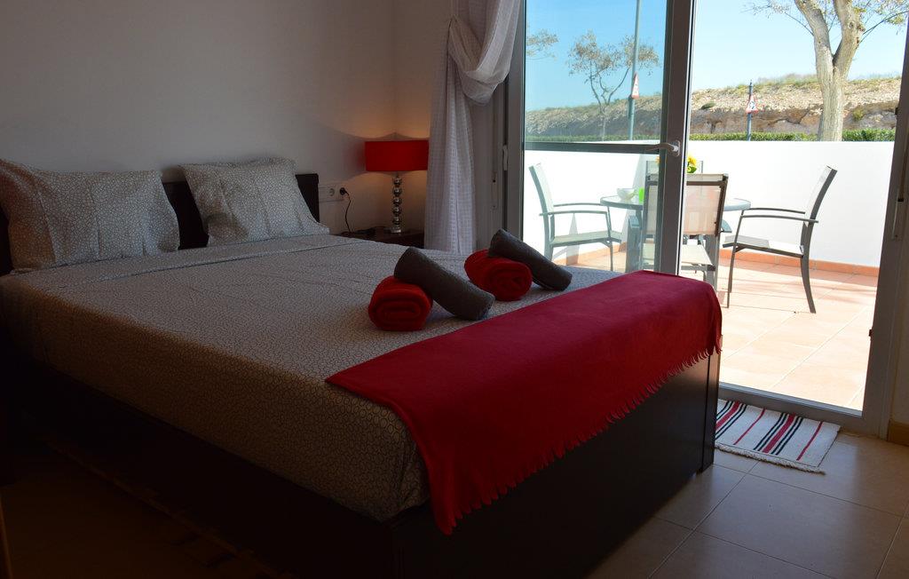 Lejligheden har plads til 6 personer. Der er 3 soveværelser og 1 badeværelse. Fra lejligheden har I udsigt over den fælles pool. Der er en lille have foran huset, hvor I kan grille og slappe af på liggestole. En hæk beskytter privatlivets fred.