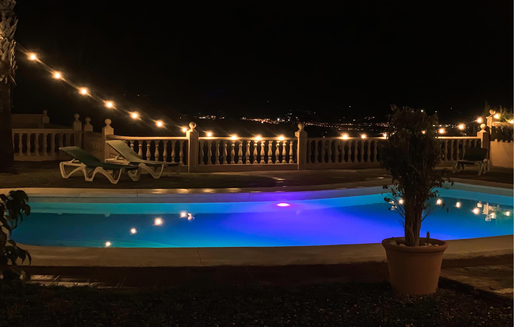 Tilbage i jeres feriehus kan I nyde den stemningsfulde atmosfære ved den oplyste pool og afslutte aftenen under åben himmel. Eller brug de herskabelige indendørsrum til at finde fuldstændig ro om aftenen.