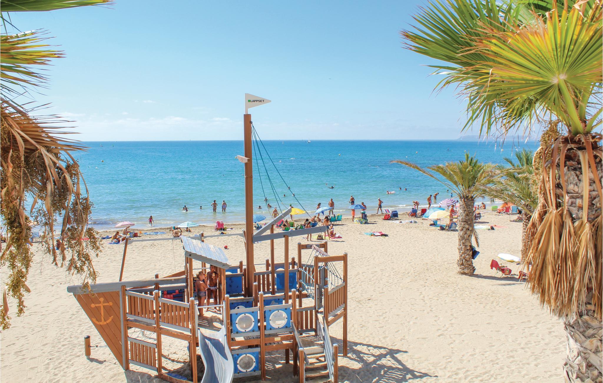 Denne hyggelige ferielejlighed er dejligt lys og ligger bare 150 m fra strande i Albufereta de Alicante og er ideel til en lille familie eller nogle venner. Den ligger i en boligblok med egen indgang, og rummer et stort og veludstyret køkken, to soveværelser, det ene med tre enkeltsenge er oplagt til børnene, et badeværelse en stor stue og en overdækket terrasse, hvor I kan nyde de første solstråler sammen med morgenmaden. I bor bare tre minutter fra sporvognen, så her behøver I ikke bil. Der er kun fem minutters gåtur til lbuferetas strand, med krystalklart vand, og 340 solskinsdage om året. AT-460561-A.