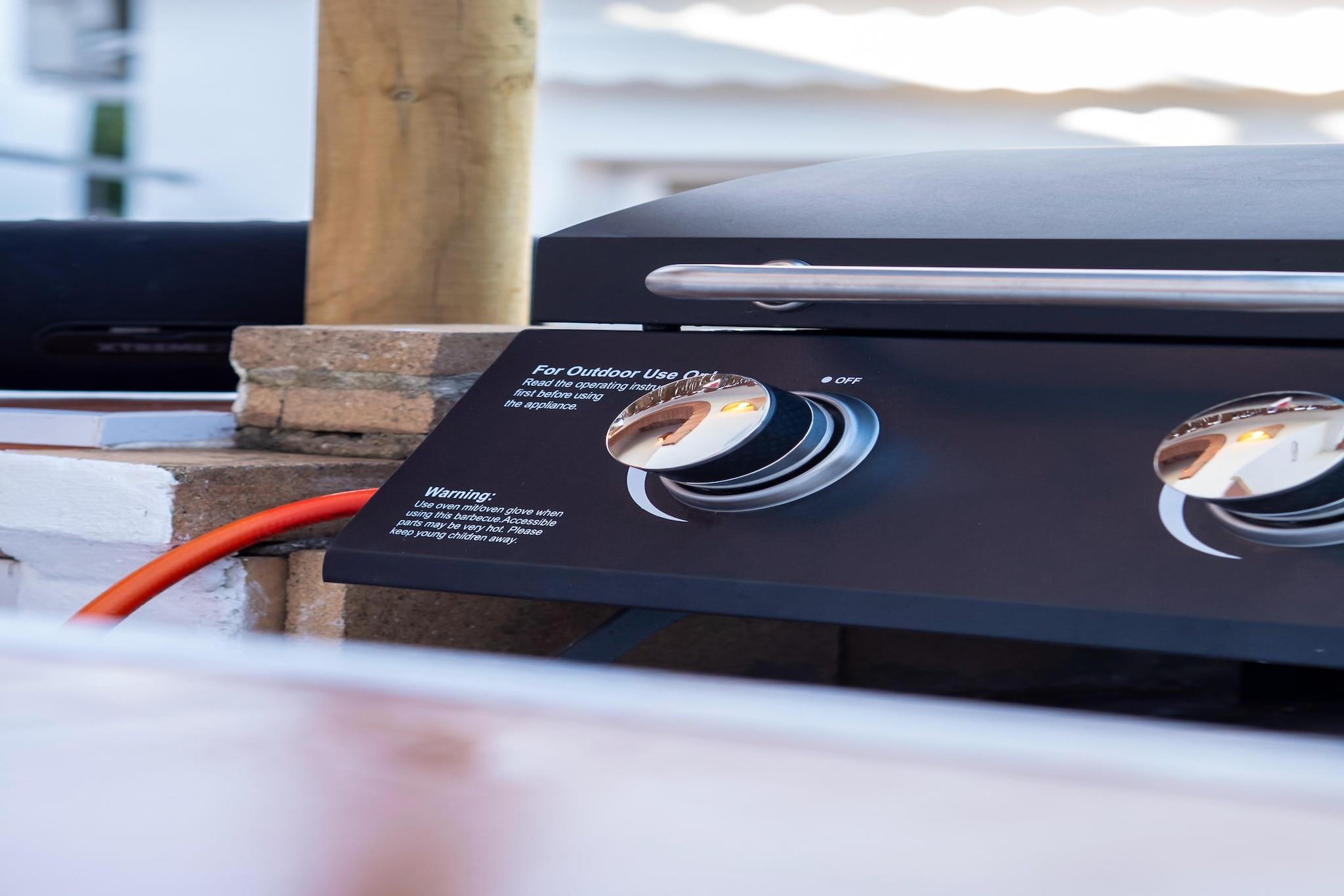 Stueetage: (Køkken(brødrister, kaffemaskine, ovn, mikrobølgeovn, køle-fryseskab, elektriske kogeplader), stue / spisestue(Fjernsyn, spisebord, sofahjørne), soveværelse(dobbeltseng), soveværelse(dobbeltseng), soveværelse(køjeseng eller 2 enkeltsenge), badeværelse(bruser, håndvask), badeværelse(bruser, håndvask, toilet), spisebord) udekøkken, bar, bruser, klimaanlæg, terrasse, swimmingpool(privat)