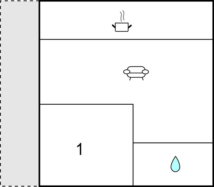 Spisestue 15m2 - 2 Sovepladser. (Sofa, madras eller lignende).