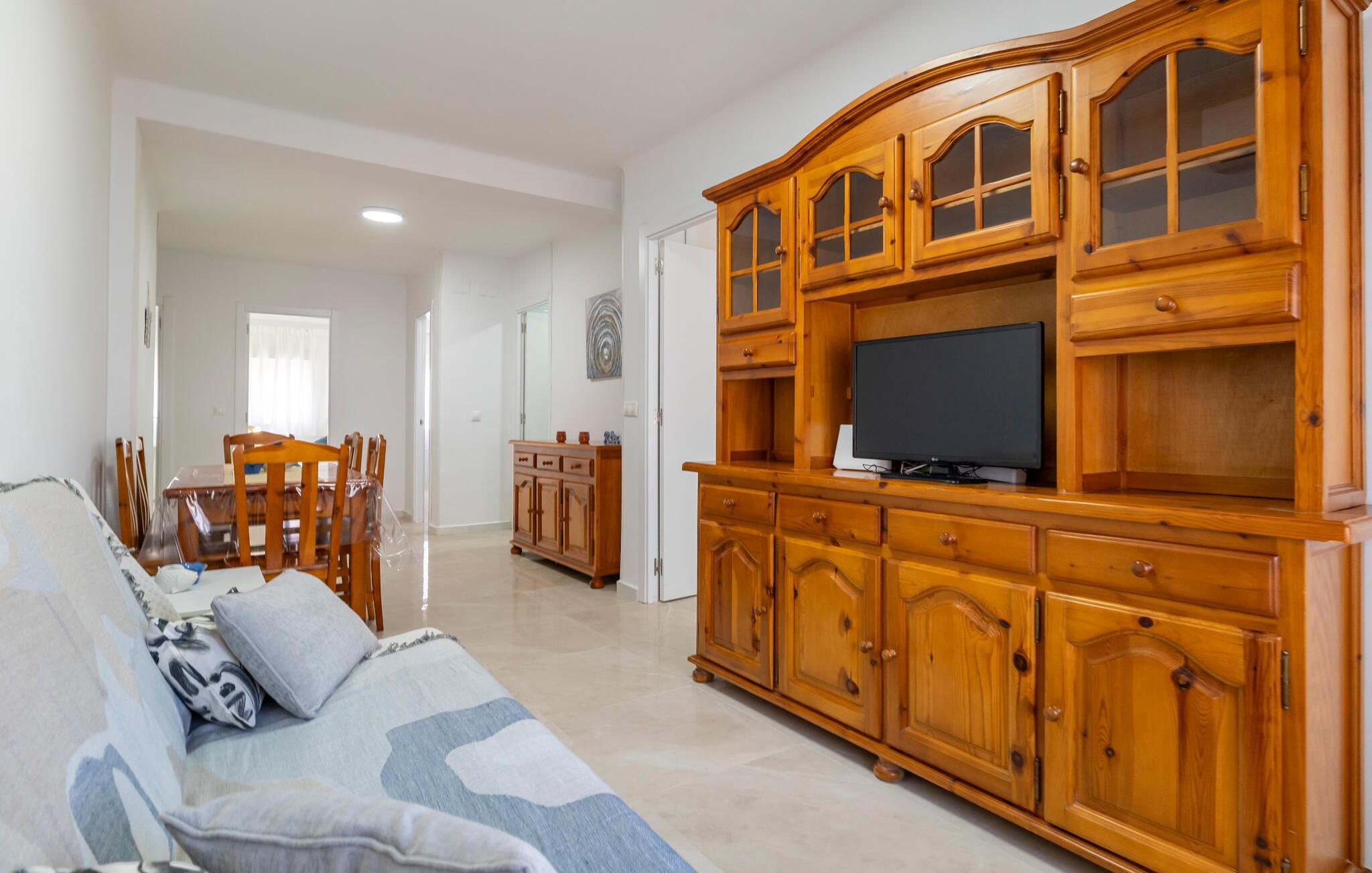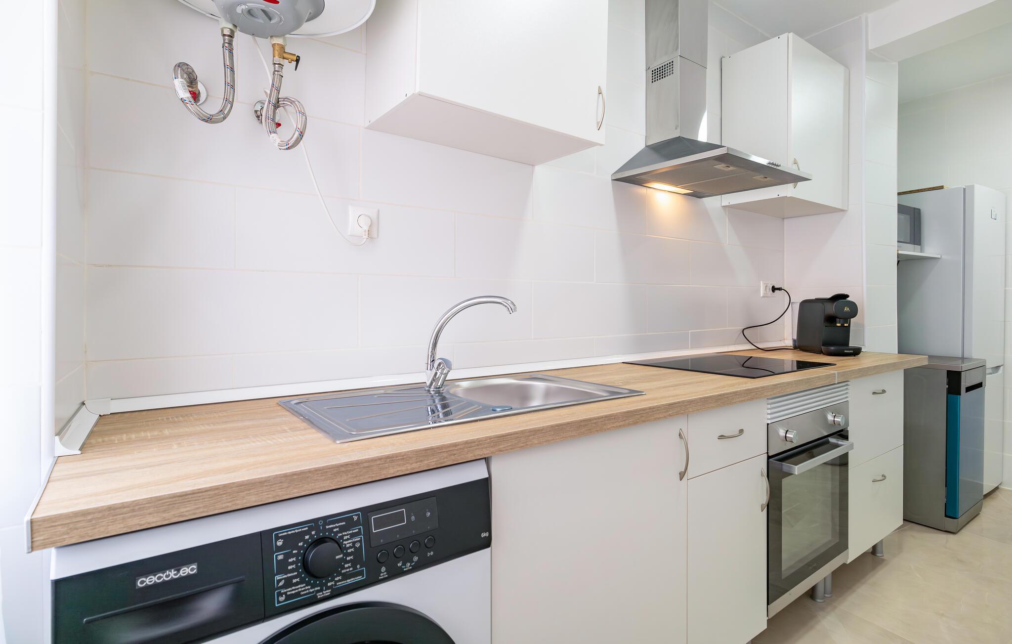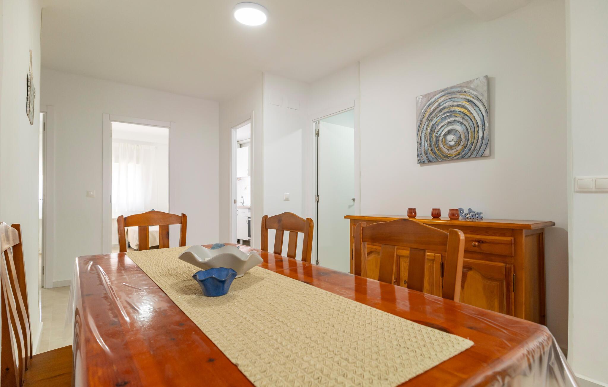 Jeres komfortable lejlighed tilbyder jer en fantastisk ramme for en ferie, hvor I kan nyde både strandfornøjelser lige uden for døren samt opleve kultur og gode spisesteder. Den lyse indretning gør lejligheden til jeres rolige oase efter nogle oplevelsesrige feriedage. Planlæg jeres dagsprogram ved morgenbordet, og nyd frisk frugt og grønt, som I har købt i de omkringliggende butikker eller på et spændende marked.