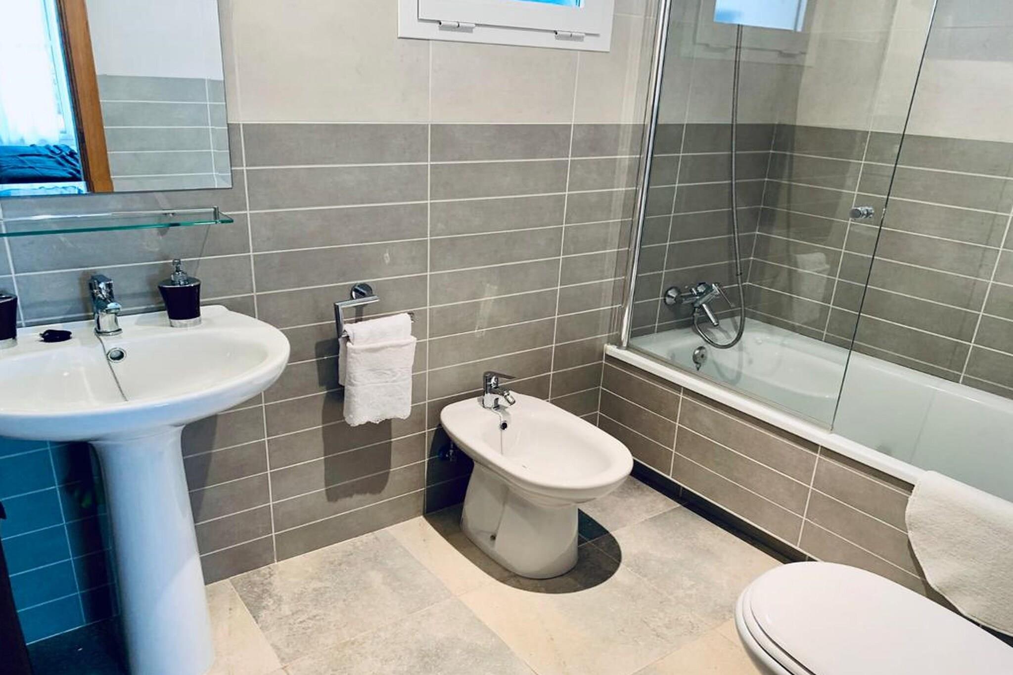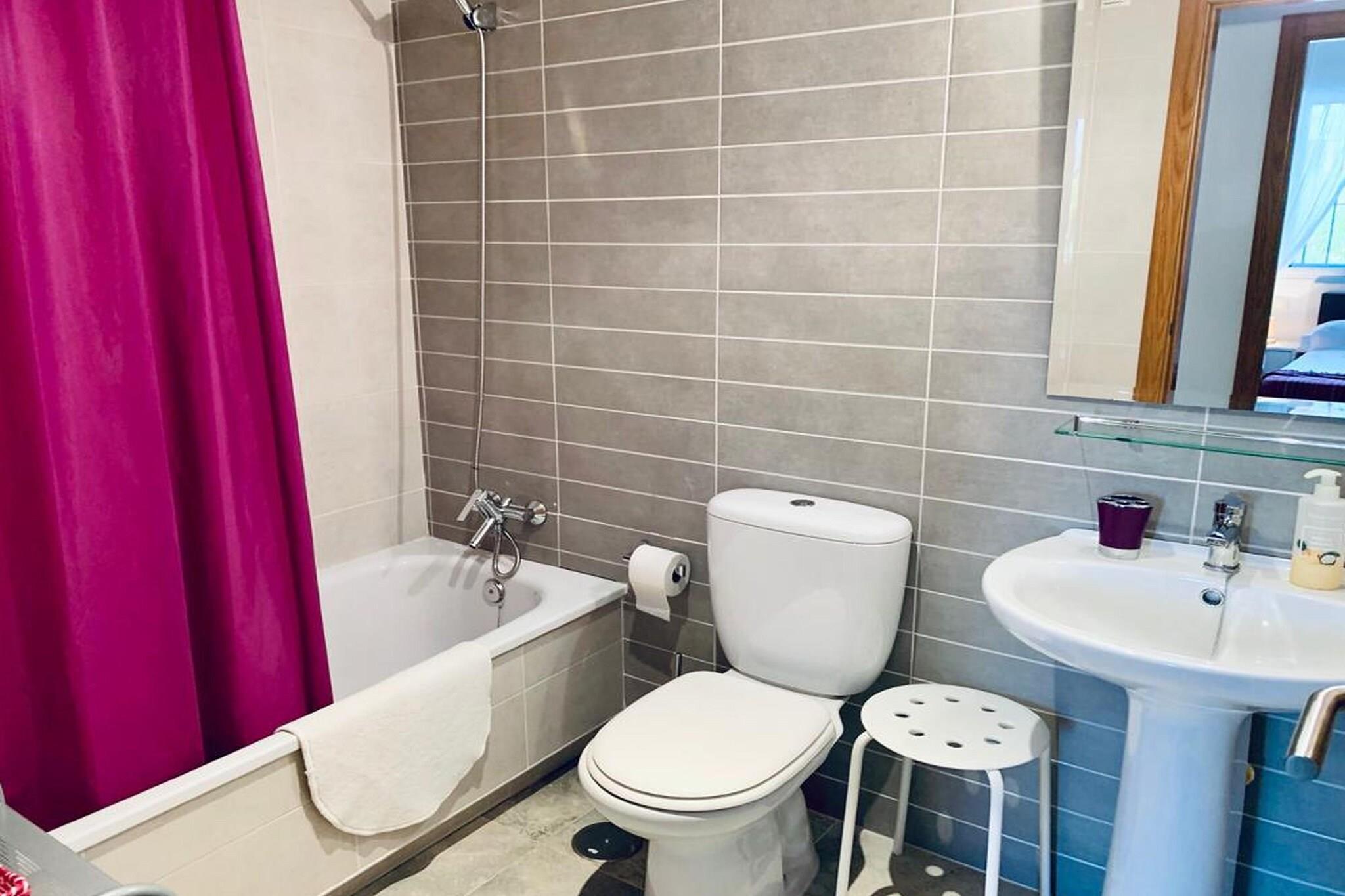 Stueetage: (Indgang , Stue(Fjernsyn, spisebord, sofahjørne), Køkken(kogeplade, elkedel, brødrister, komfur, emhætte, kaffemaskine, ovn, mikrobølgeovn, køle-fryseskab, vaskemaskine, Saftpresser, Stavblender), soveværelse(enkeltseng, enkeltseng), Soveværelse med badeværelse(halvandenmandsseng, badekar, håndvask, bidet, pissoir), badeværelse(badekar, håndvask, bidet, pissoir), vaskerum ) fællesrum(parking lot(public), legeredskaber, kravlegård), veranda(balkon eller terrasse, liggestole), swimmingpool(deles med andre gæster), swimmingpool(deles med andre gæster)
