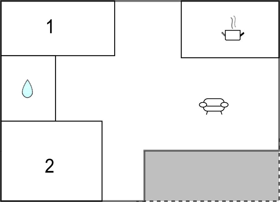 Soveværelse 12m2 (nr. 1) - 1 Soveplads. (Enkeltseng(e)). 2 Sovepladser. (Etageseng(e)).
