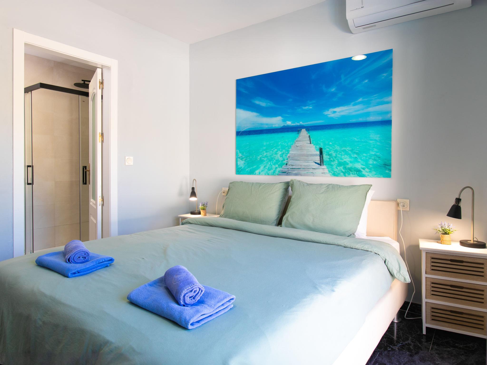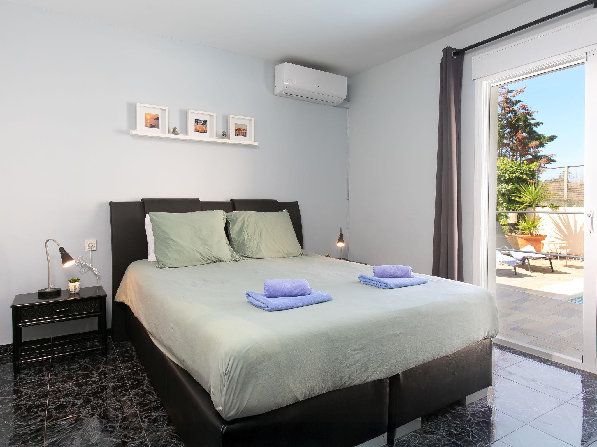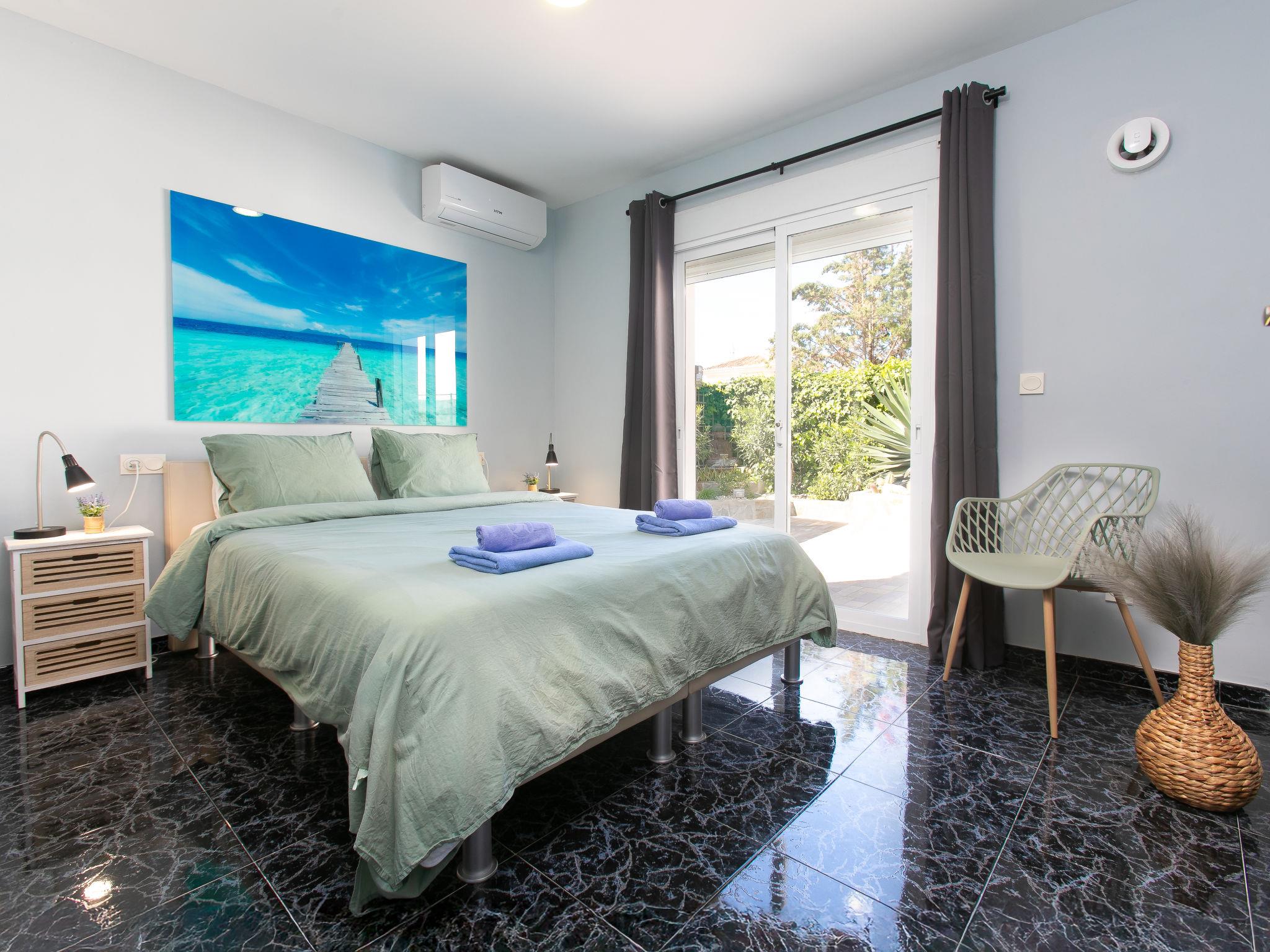 "Bugambilla", 5-room villa 72 m2. Bright, comfortable and beautiful furnishings: living/dining room with digital TV, air conditioning and forced-air heating. Exit to the terrace, to the swimming pool. 1 room with 1 french bed (160 cm, length 200 cm), shower/WC, air conditioning and forced-air heating. Exit to the terrace, to the swimming pool. 1 room with 1 french bed (160 cm, length 200 cm), shower/WC, air conditioning and forced-air heating. Exit to the terrace, to the swimming pool. Living/dining room with air conditioning and forced-air heating. Exit to the terrace. 1 large room with 1 french bed (180 cm, length 200 cm), shower/WC, air conditioning and forced-air heating. Exit to the terrace. Kitchen (oven, dishwasher, 4 ceramic glass hob hotplates, toaster, kettle, microwave, freezer, electric coffee machine). Patio. Deck chairs. Facilities: washing machine, safe, iron, hair dryer. Internet (WiFi, free). VFT/GR/10064 // Reg. Nr.: ESHFTU0000180160003077720020000000000000VFT/GR/100649