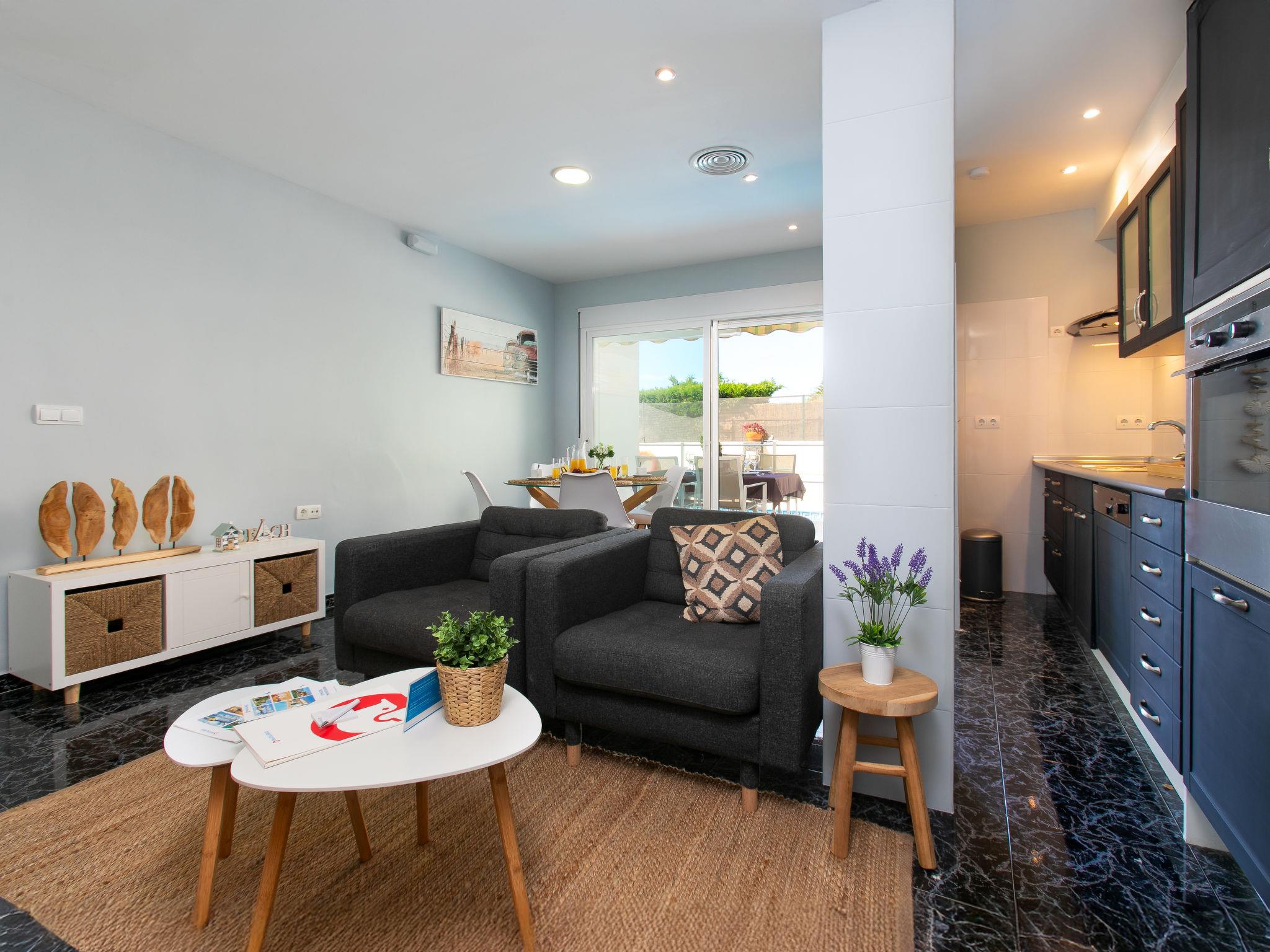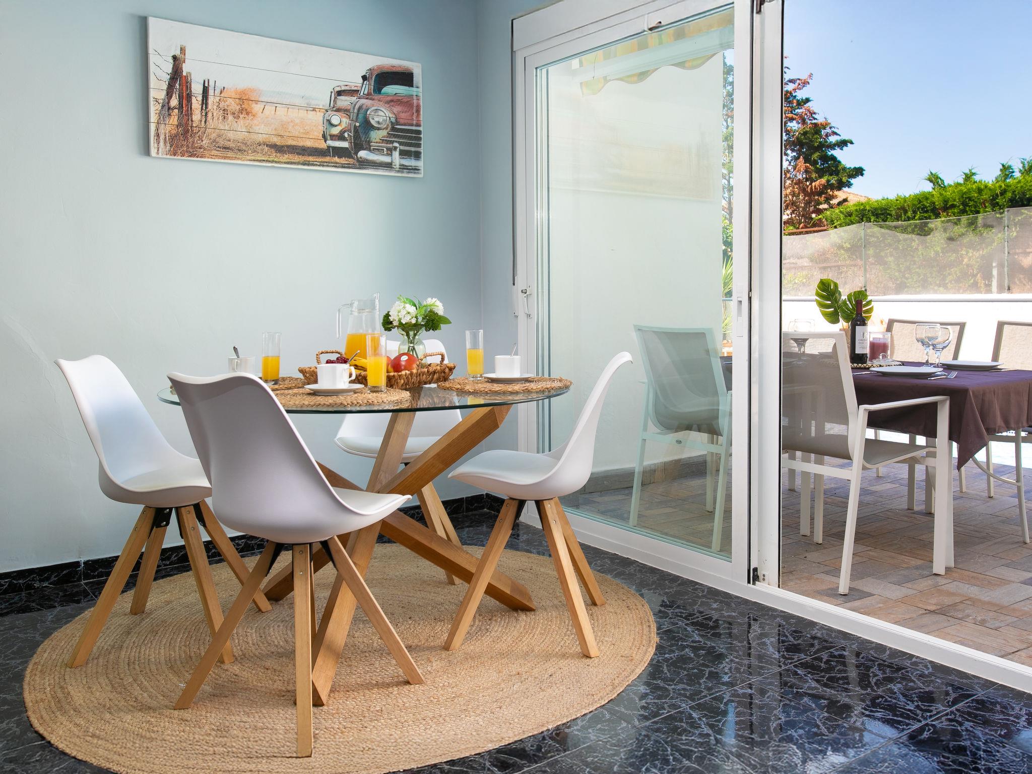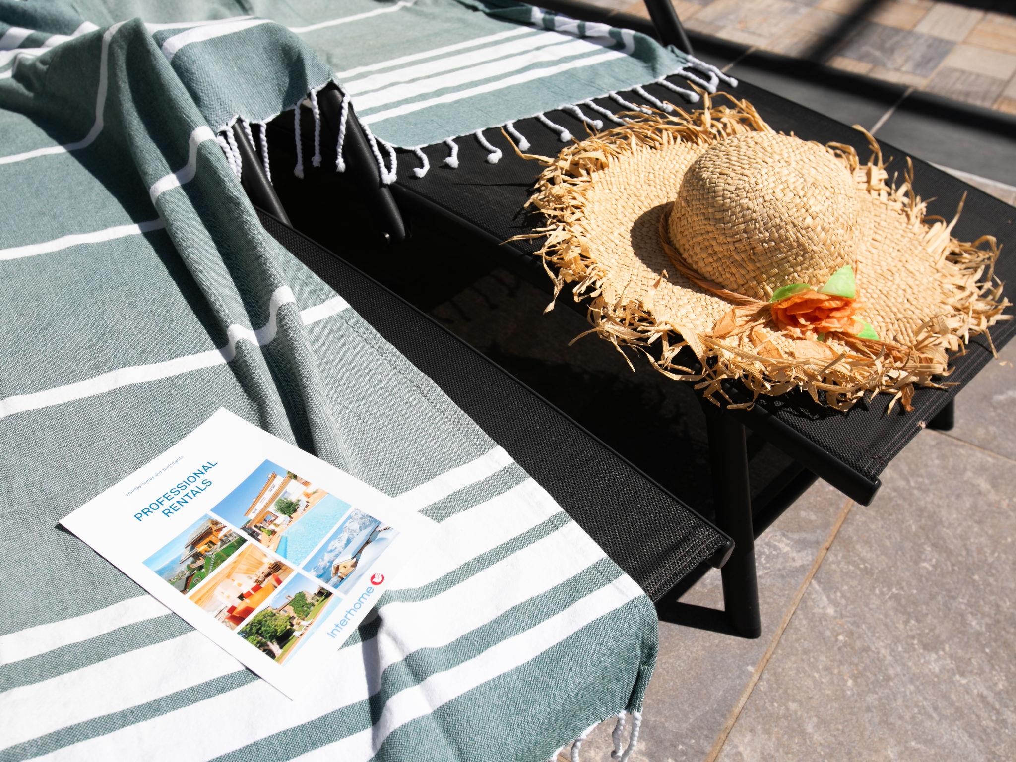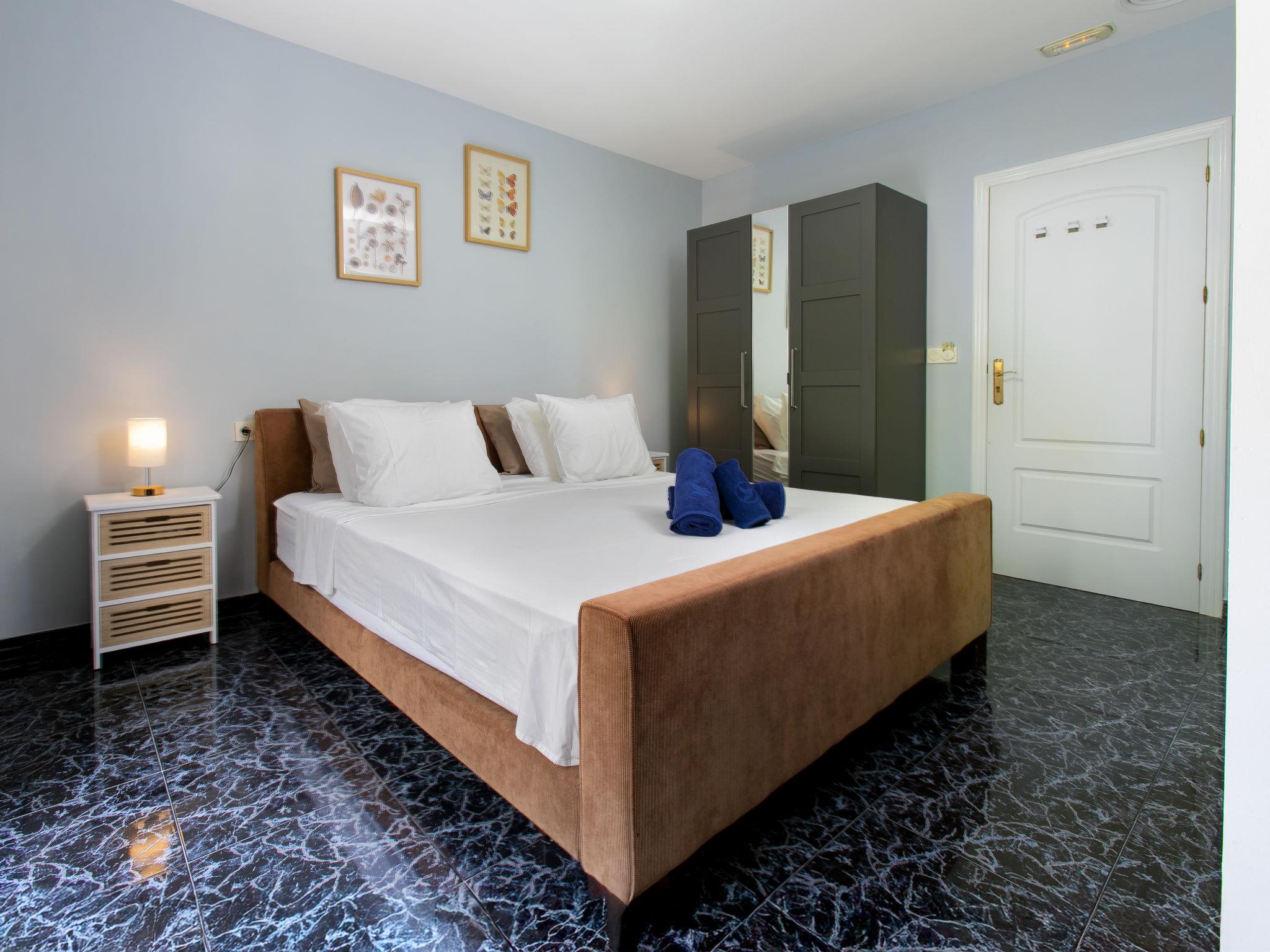 "Bugambilla", 5-room villa 72 m2. Bright, comfortable and beautiful furnishings: living/dining room with digital TV, air conditioning and forced-air heating. Exit to the terrace, to the swimming pool. 1 room with 1 french bed (160 cm, length 200 cm), shower/WC, air conditioning and forced-air heating. Exit to the terrace, to the swimming pool. 1 room with 1 french bed (160 cm, length 200 cm), shower/WC, air conditioning and forced-air heating. Exit to the terrace, to the swimming pool. Living/dining room with air conditioning and forced-air heating. Exit to the terrace. 1 large room with 1 french bed (180 cm, length 200 cm), shower/WC, air conditioning and forced-air heating. Exit to the terrace. Kitchen (oven, dishwasher, 4 ceramic glass hob hotplates, toaster, kettle, microwave, freezer, electric coffee machine). Patio. Deck chairs. Facilities: washing machine, safe, iron, hair dryer. Internet (WiFi, free). VFT/GR/10064 // Reg. Nr.: ESHFTU0000180160003077720020000000000000VFT/GR/100649