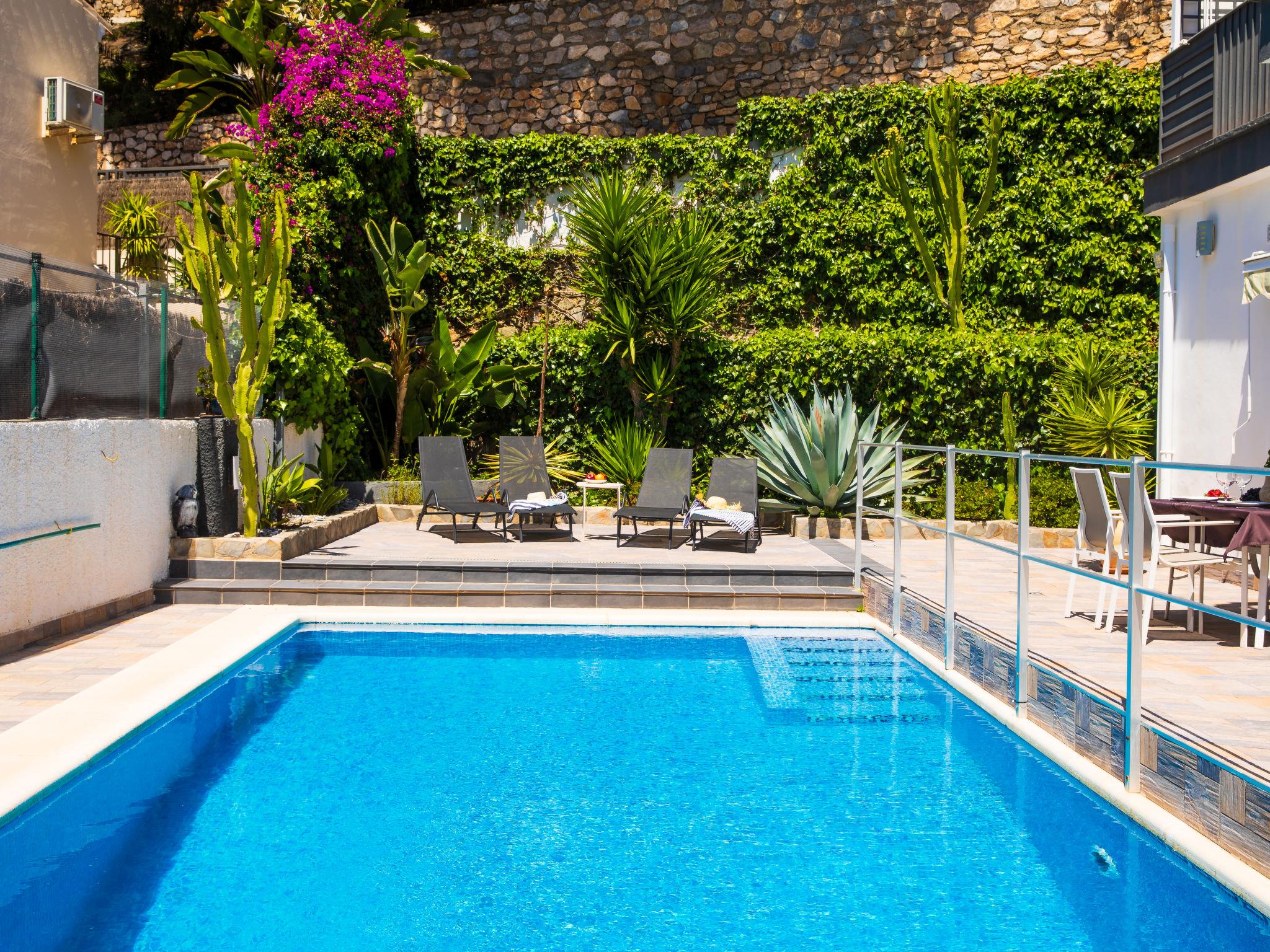 2-family house "Bugambilla". 1 km from the sea, 1 km from the beach. Private: swimming pool angular (8 x 4 m, depth 100 - 175 cm, seasonal availability: 01.Jan. - 31.Dec.). Outdoor shower, parking on the premises. Shop 2 km, shopping centre 18 km, restaurant 1 km, bakery 1.5 km, café 1 km, pedestrian zone 1.5 km, bus stop 1 km, pebble beach "Cotobro" 1 km, diving center 1 km. Sports harbour 7 km, marina 7 km, golf course (18 hole) 12 km. Nearby attractions: Aquatropic 2 km, Castillo de Almuñecar 1.5 km, Acantilados de Maro 17 km, Cuevas de Nerja 17 km, Granada 50 km, La Alhambra 50 km. Well-known ski regions can easily be reached: Sierra Nevada 80 km. Hiking paths: Sierra Tejeda 23 km, Sierra Almijara 23 km, Las Alpujarras 40 km. Please note: car recommended. The owner does not accept any youth groups. Loading and unloading of baggage is possible at the holiday house. The owner lives on the same property.