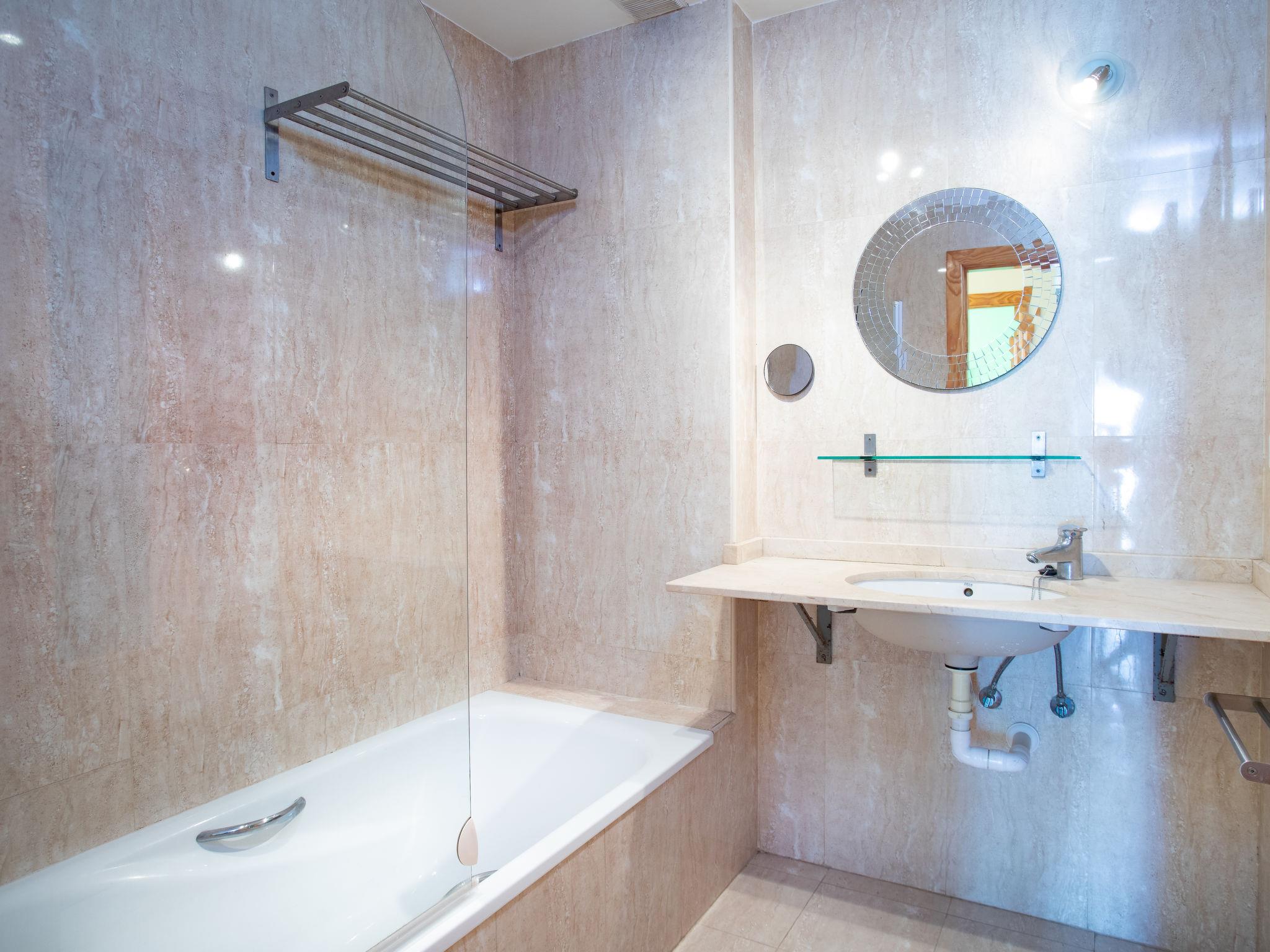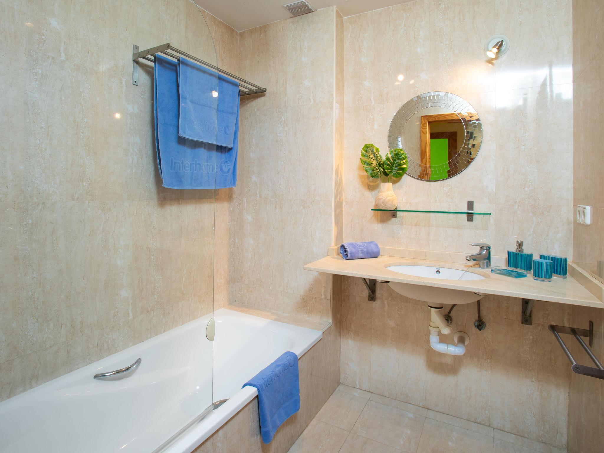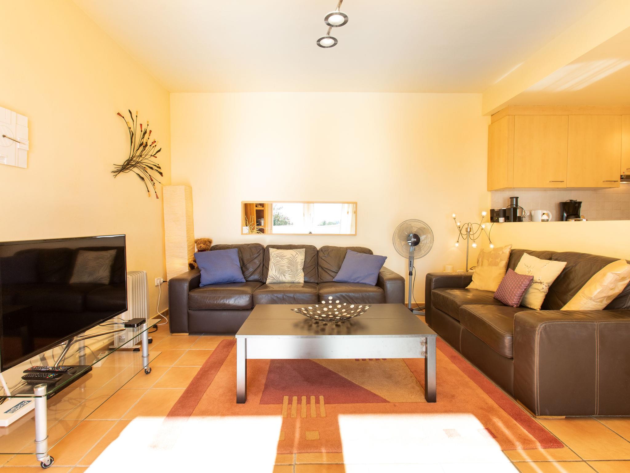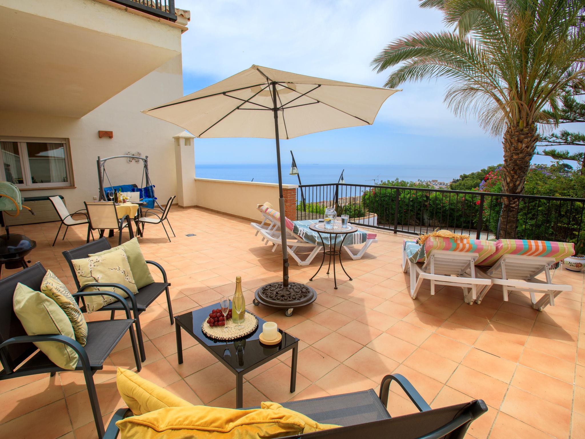 "Belle Vue", 3-room apartment 113 m2 on 1st floor, south facing position. Spacious, practical and comfortable furnishings: living/dining room with digital TV, international TV channels, air conditioning and forced-air heating. Exit to the terrace. 1 room with 2 beds (90 cm, length 200 cm), air conditioning and forced-air heating. 1 room with 1 french bed (160 cm, length 200 cm), air conditioning and forced-air heating. Open kitchen (oven, dishwasher, 4 ceramic glass hob hotplates, toaster, kettle, microwave, freezer). Exit to the terrace. Bath/shower/WC. Large terrace 50 m2. Terrace furniture, barbecue, deck chairs. Panoramic view of the sea and the resort. Facilities: washing machine, iron, children's high chair, baby cot, hair dryer. Internet (WiFi, free). Please note: non-smoking house. VUT/GR/06901 // Reg. Nr.: ESFCTU0000180160005521270000000000000000VUT/GR/069018