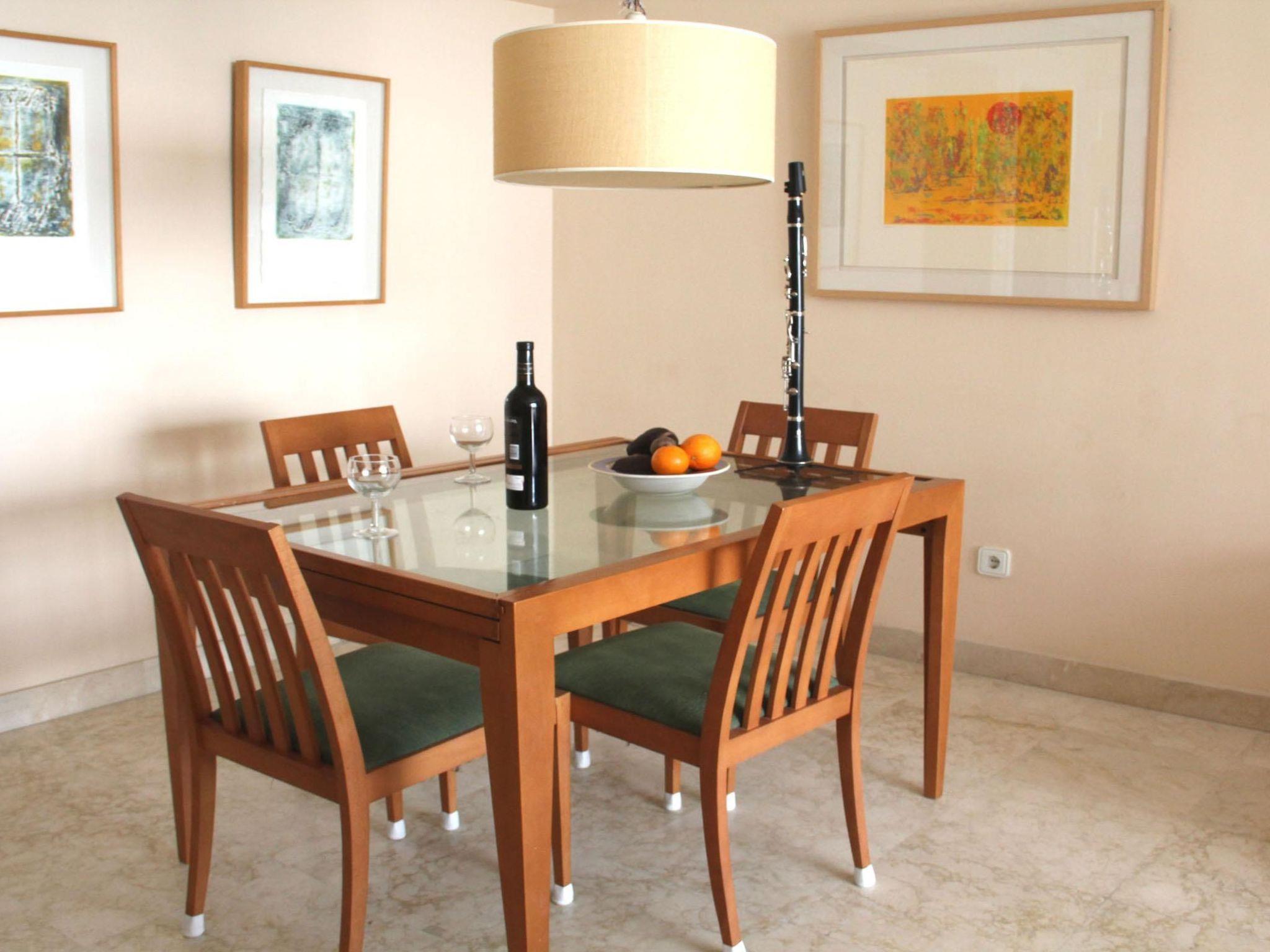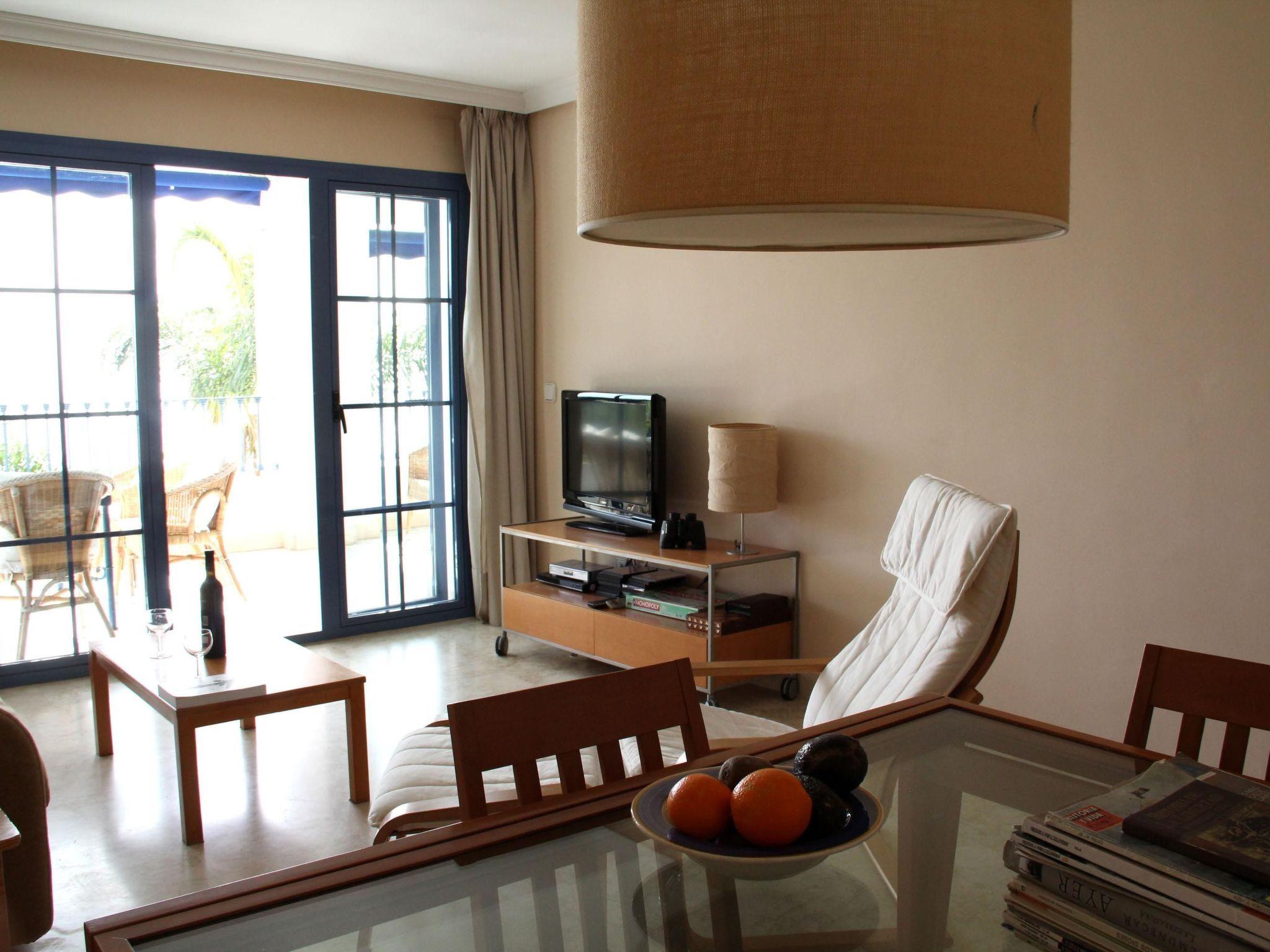 The 85 m2 apartment boasts two bedrooms: one with a double bed (140 cm x 190 cm) with ocean views and one with mountain views and two single beds (90 cm x 200 cm). A 30 m2 living/dining room with a sofa, a flat screen television and a dining nook complete the apartment.