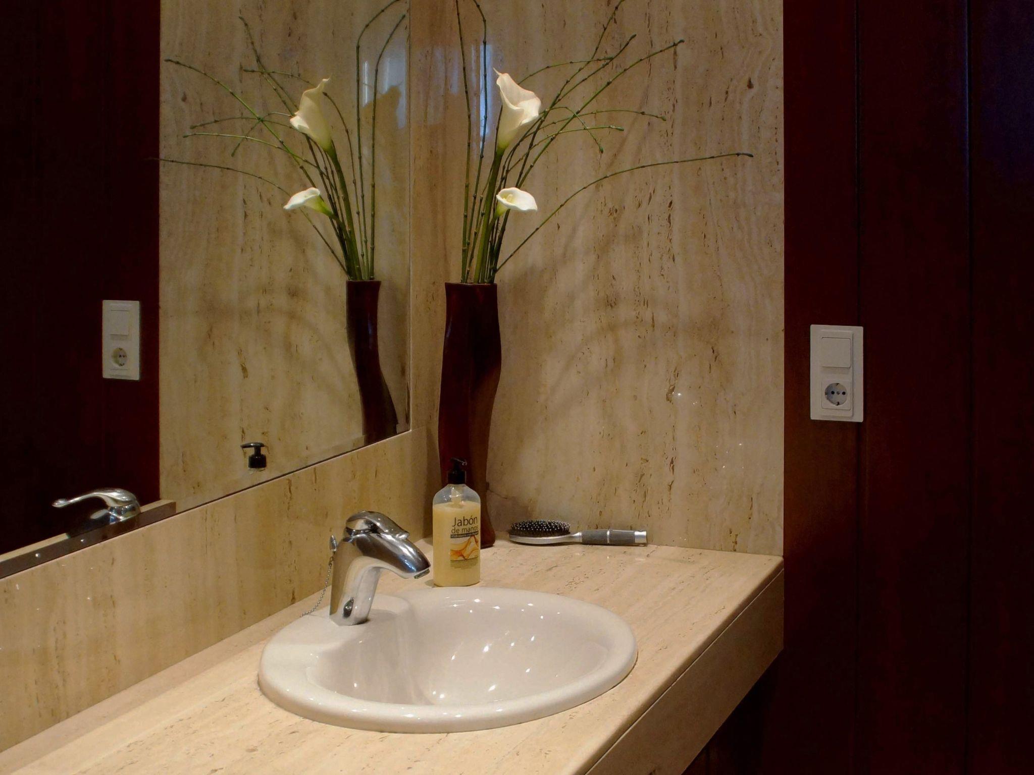 A further shower with toilet and washbasin is located in the outdoor area near the pool.