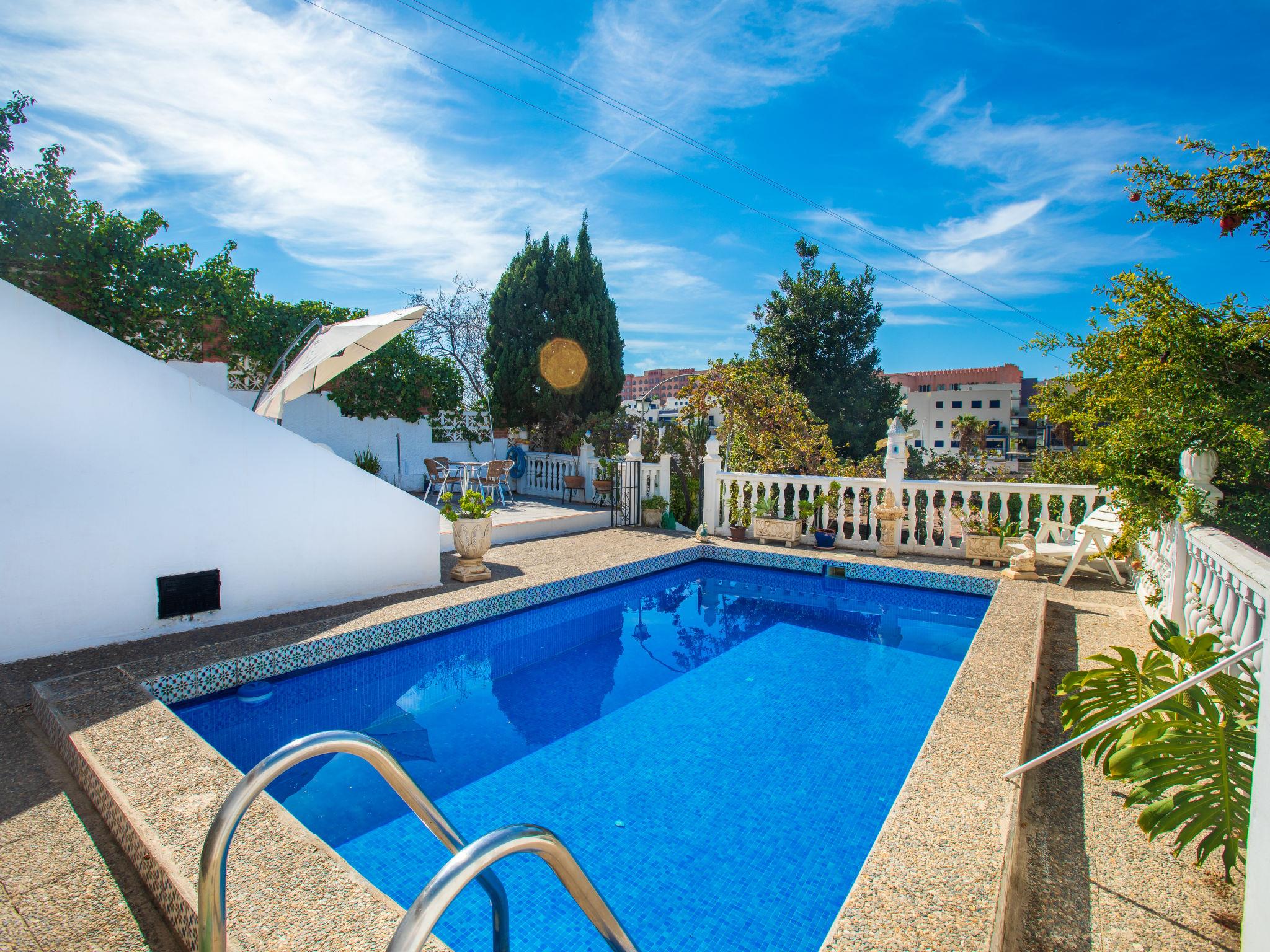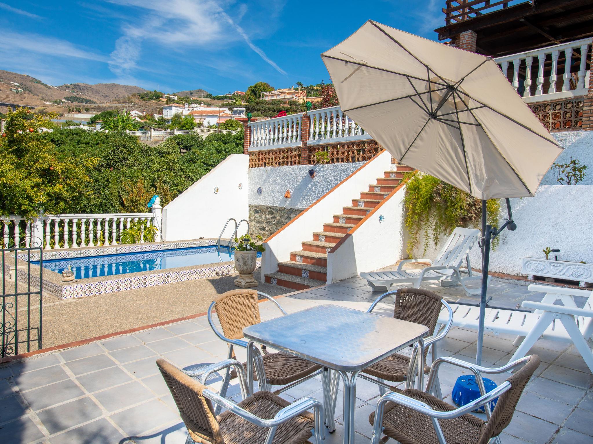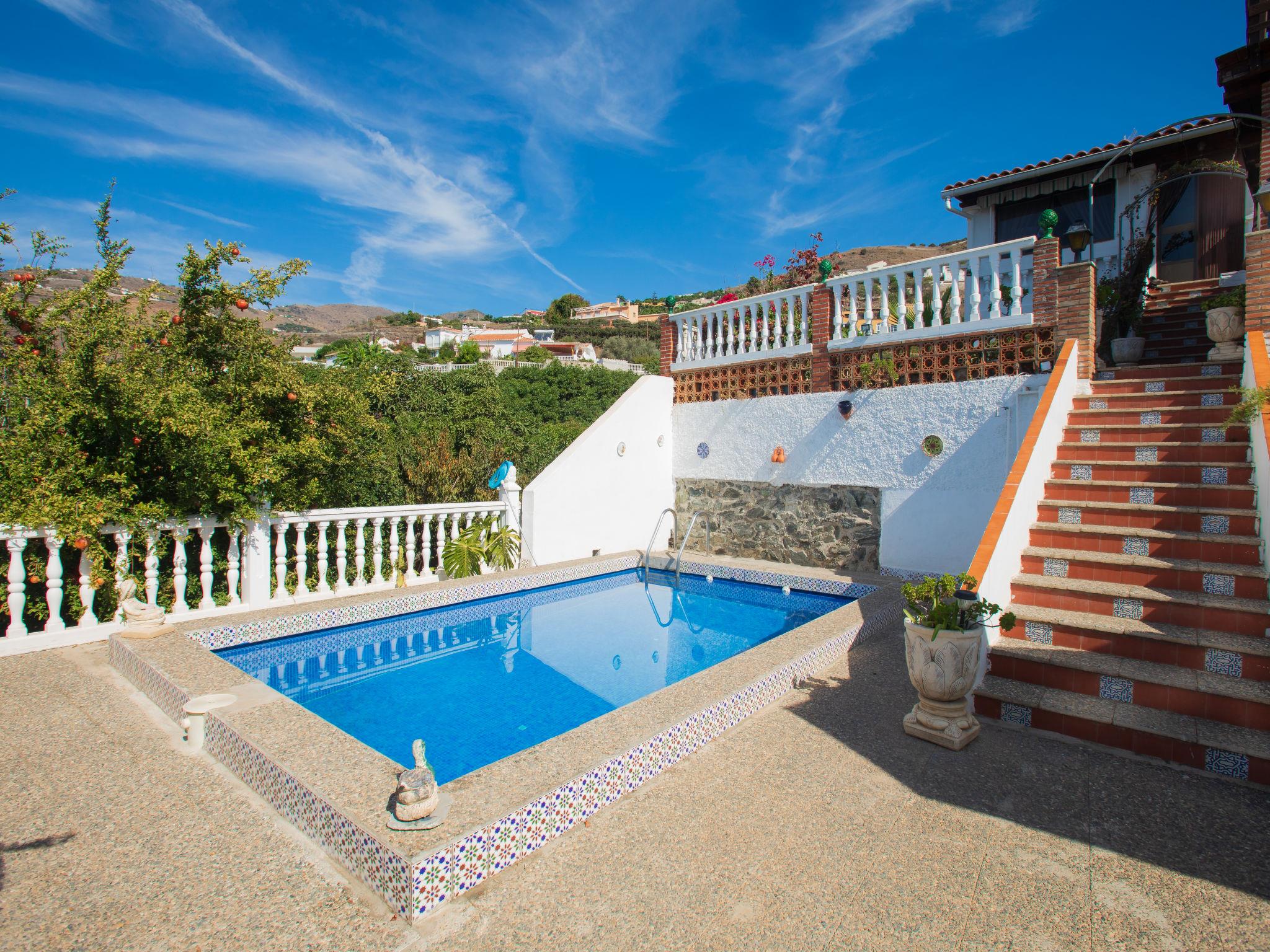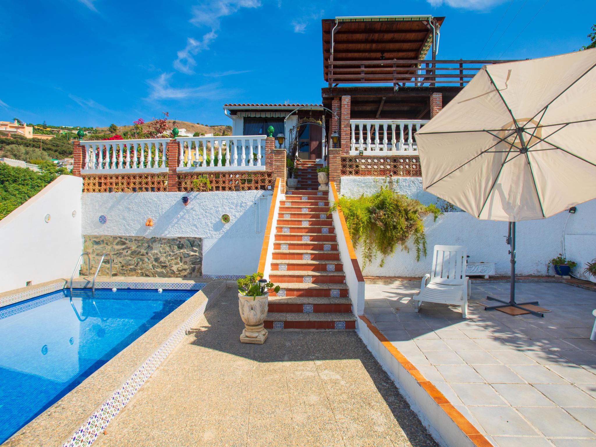 2-family house "Fortuna". In the district of Playa Cabria 4 km from the centre of Almuñécar, 500 m from the sea, on the beach. Private: property 1'000 m2 (fenced), terraced garden with wildlife garden and trees, swimming pool (6 x 3 m, depth 150 - 200 cm, seasonal availability: 01.May. - 31.Oct.). In the house: washing machine. Stepped path (39 steps) to the house. Parking on the premises. Shop 1.3 km, bus stop "Taramay (Ctra de Almería)" 1.5 km, sandy beach "Playa Cabria" 300 m. Nearby attractions: Nerja, Cuevas de Nerja, Frigiliana, Granada, Salobreña, Aquatropic. Well-known ski regions can easily be reached: Sierra Nevada. Hiking paths: Valle de Lecrin, Alpujarras, Sierra Almijara. Please note: car recommended. The owner does not accept any youth groups. The owner lives on the same property.
