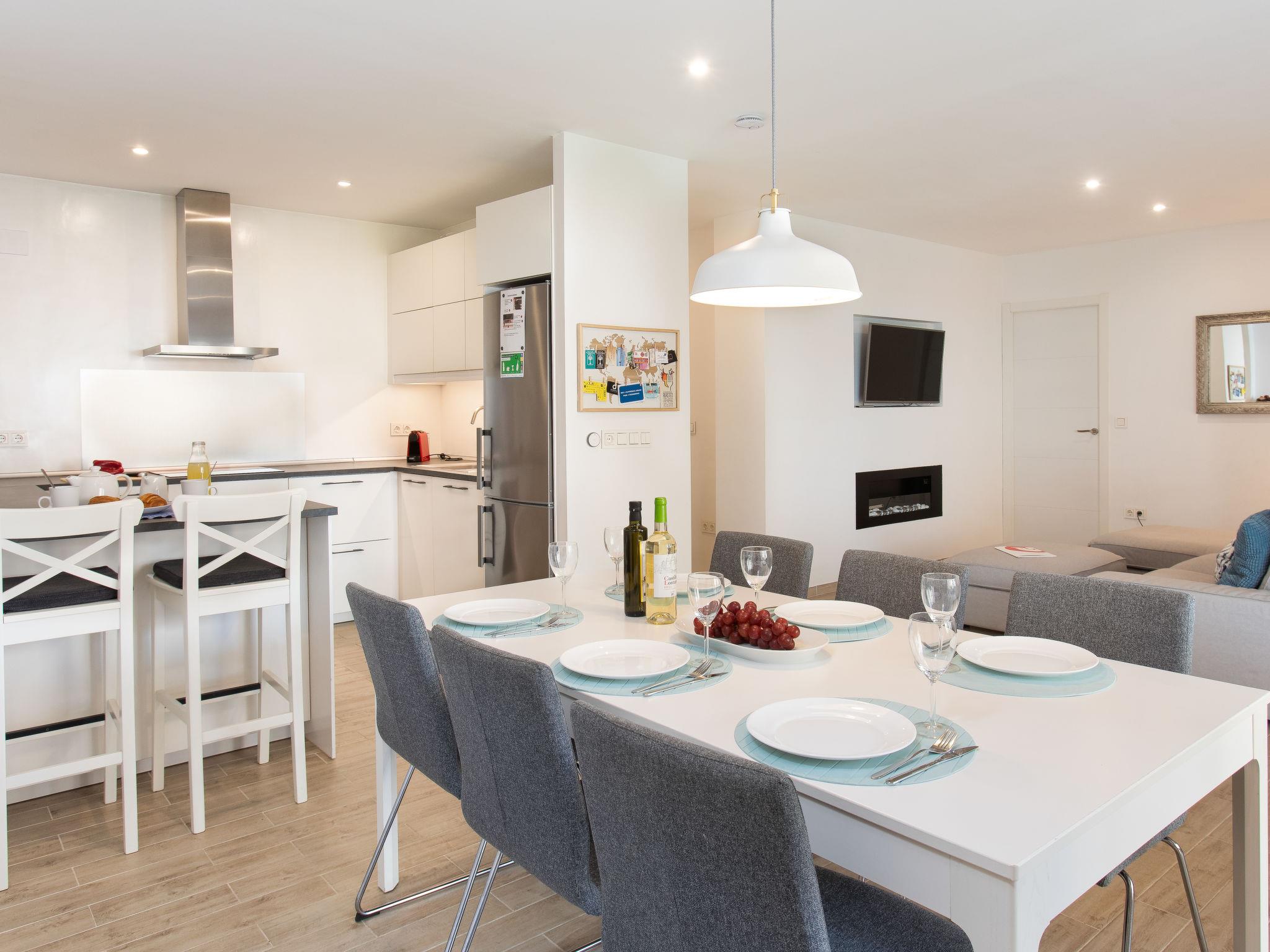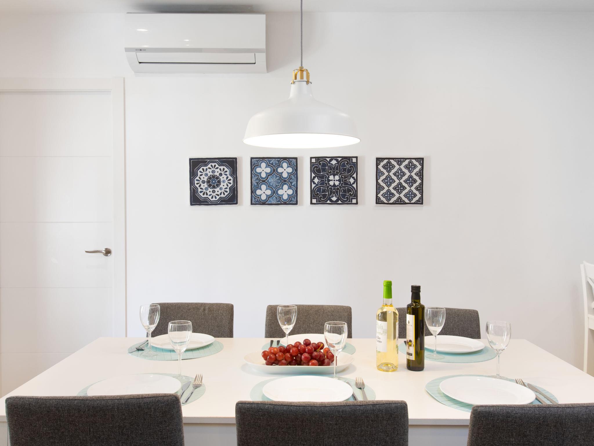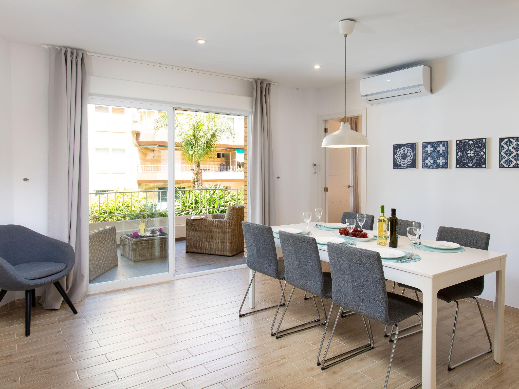 "La Najarra", 4-room apartment 100 m2 on 1st floor. Bright, practical and comfortable furnishings: living/dining room with dining table, TV, air conditioning, forced-air heating and electric shutters. Exit to the terrace. 1 room with 1 french bed (160 cm), shower/WC, double hand-basin, air conditioning and forced-air heating. 1 room with 1 french bed (160 cm, length 200 cm), air conditioning and forced-air heating. 1 room with 1 x 2 bunk beds (90 cm, length 200 cm), air conditioning and forced-air heating. Open kitchen (oven, dishwasher, 3 induction hot plates, toaster, kettle, microwave, freezer, electric coffee machine, Capsules for coffee machine (Nespresso)) with dining table. Exit to the terrace. Shower/WC. Electric heating, floor heating. Large terrace. Terrace furniture. Facilities: washing machine, iron, baby cot for up to 3 year olds, hair dryer. Internet (WiFi, free). Garage space n 1A. Please note: non-smokers only. Smoke alarm, fire extinguisher. There is a tennis court in complex. VFT/GR/041907 // Reg. Nr.: ESFCTU000018016000000000000000097659/VFT/GR/041907