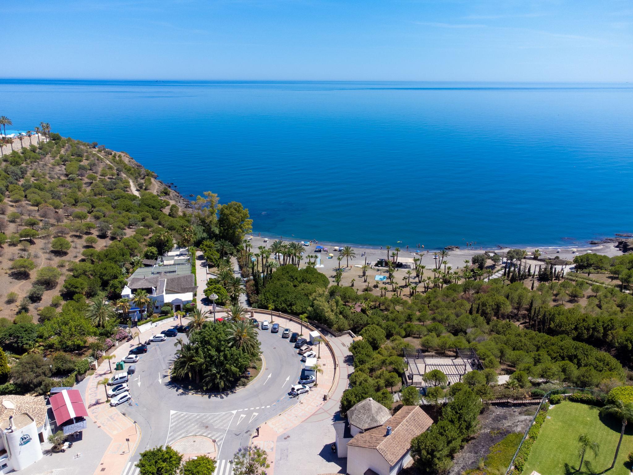 Almuñecar: Beautiful, comfortable apartment block "Mirador Galera Playa". In the district of Taramay, in the resort 5 km from the centre of Almuñecar, in a quiet position in the residential district, 50 m from the sea, 50 m from the beach, west facing position. For shared use: natural garden, lawn for sunbathing, 2 swimming pools (depth 40 - 100 cm, seasonal availability: 17.Jun. - 17.Sep. pool opening hours: 11:30-15:00 and 17:30-21:00). WC in the pool area, shower/WC in the pool area, children's pool. In the house: lift. Roofed, parking space n 50. Shop 1 km, supermarket 800 m, shopping centre 18 km, restaurant, café 50 m, pedestrian zone 1 km, bicycle rental 6.6 km, bus stop 100 m, sandy beach "Calabajio" 50 m. Sports harbour 13.9 km, golf course (18 hole) 15.5 km, surf school 13.9 km, sailing school 16.3 km, tennis 5.3 km, riding stable 12.7 km, walking paths from the house 100 m. Nearby attractions: Frigiliana 100 m, La Herradura, Nerja, Salobreña, Almuñecar, Granada. Well-known ski regions can easily be reached: Sierra Nevada. Hiking paths: Sierra Almijara, Sierra Tejeda, Valle Lecrín. Please note: car recommended. The owner does not accept any youth groups. Loading and unloading of baggage is possible at the holiday house.
